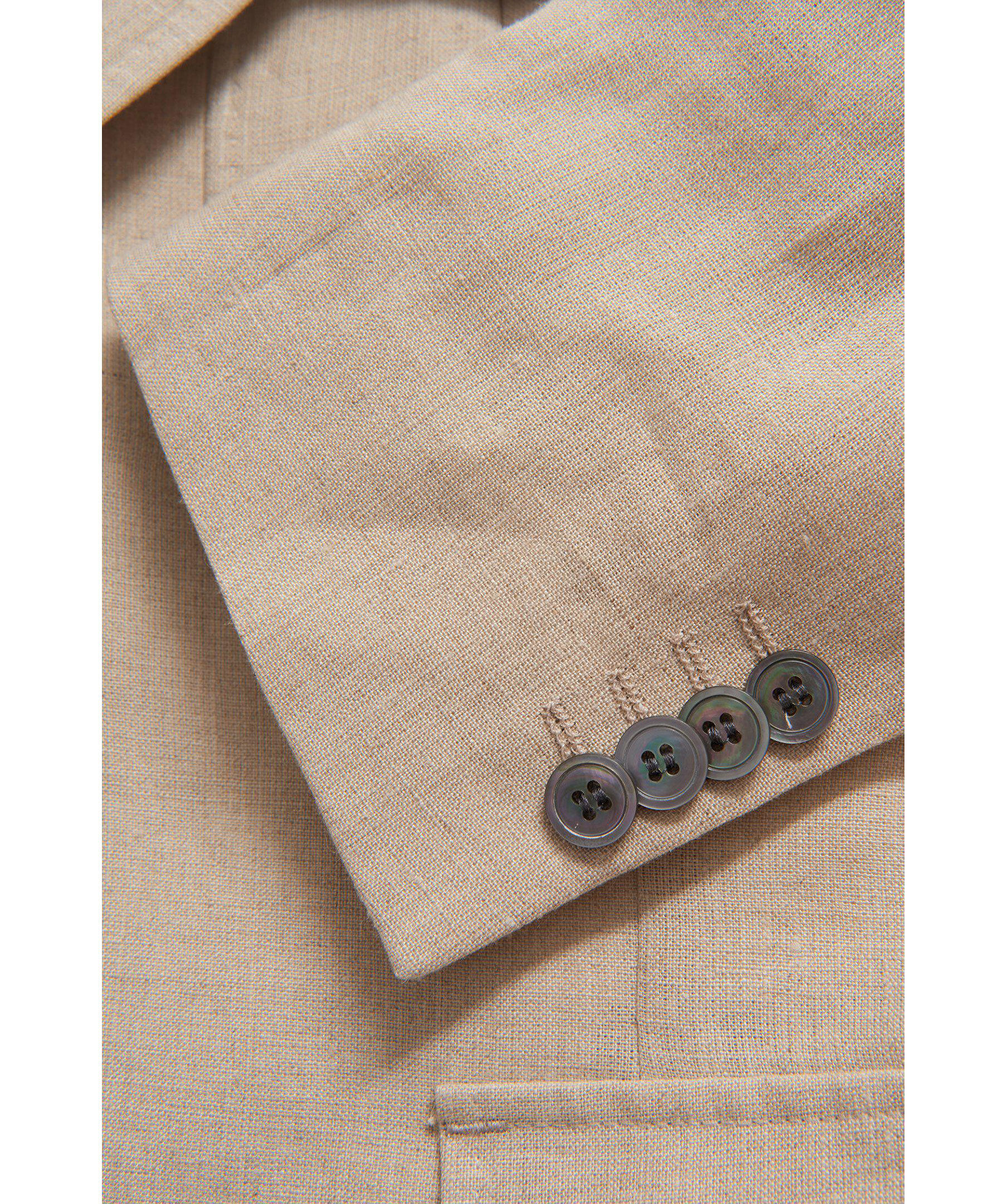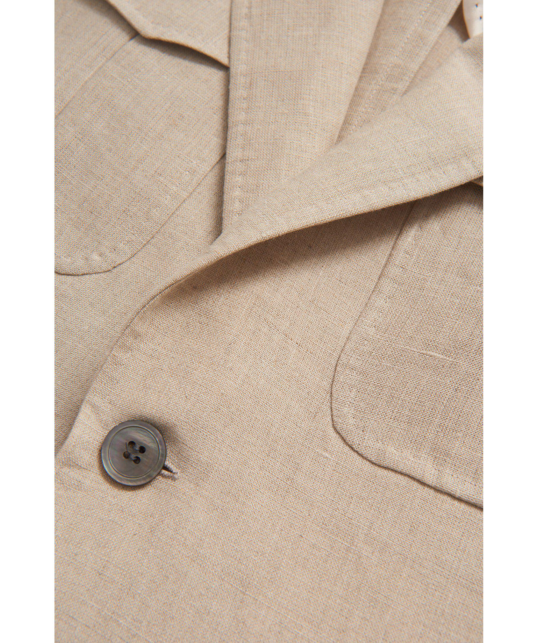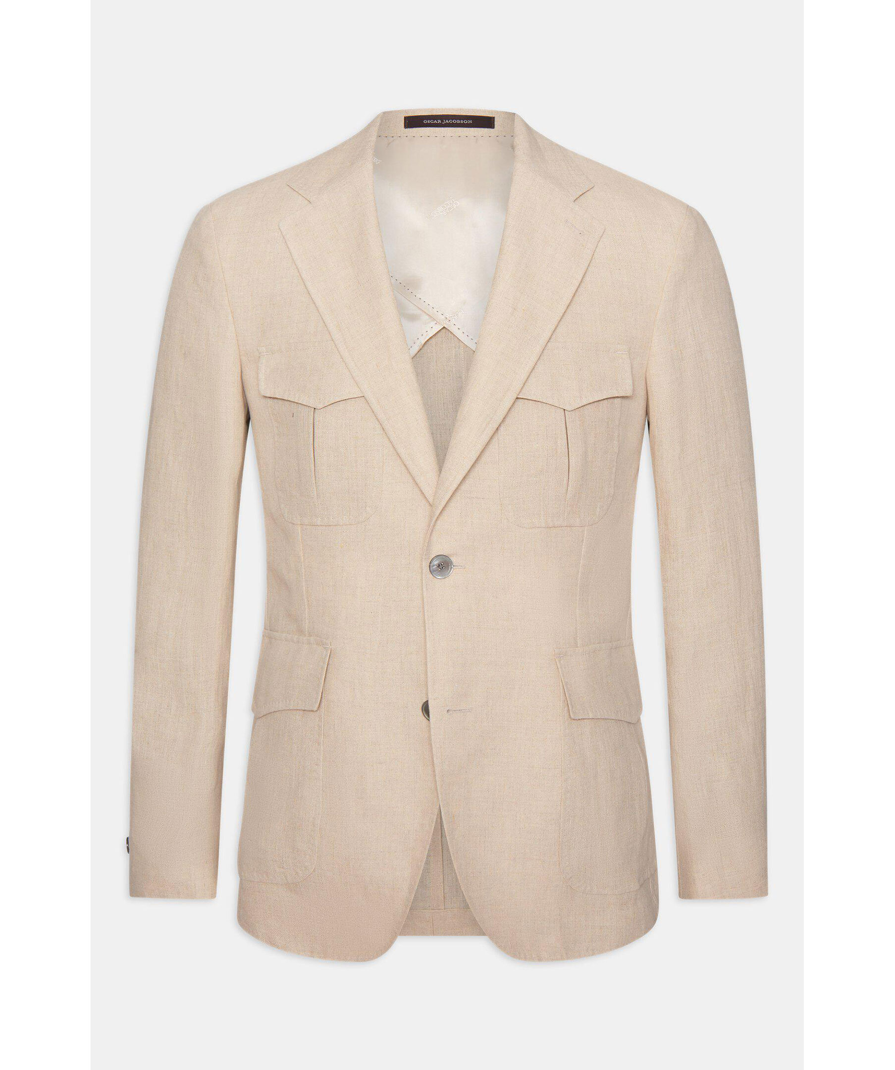 Enkelknäppt kavaj i safarimodell försedd med fyra utanpåliggande fickor. Halvfodrad insida med okunstruerad axel och äkta pärlemorknappar. Tillverkad i ett linnetyg.Kan matchas med följande byxor för komplett kostym:Delon