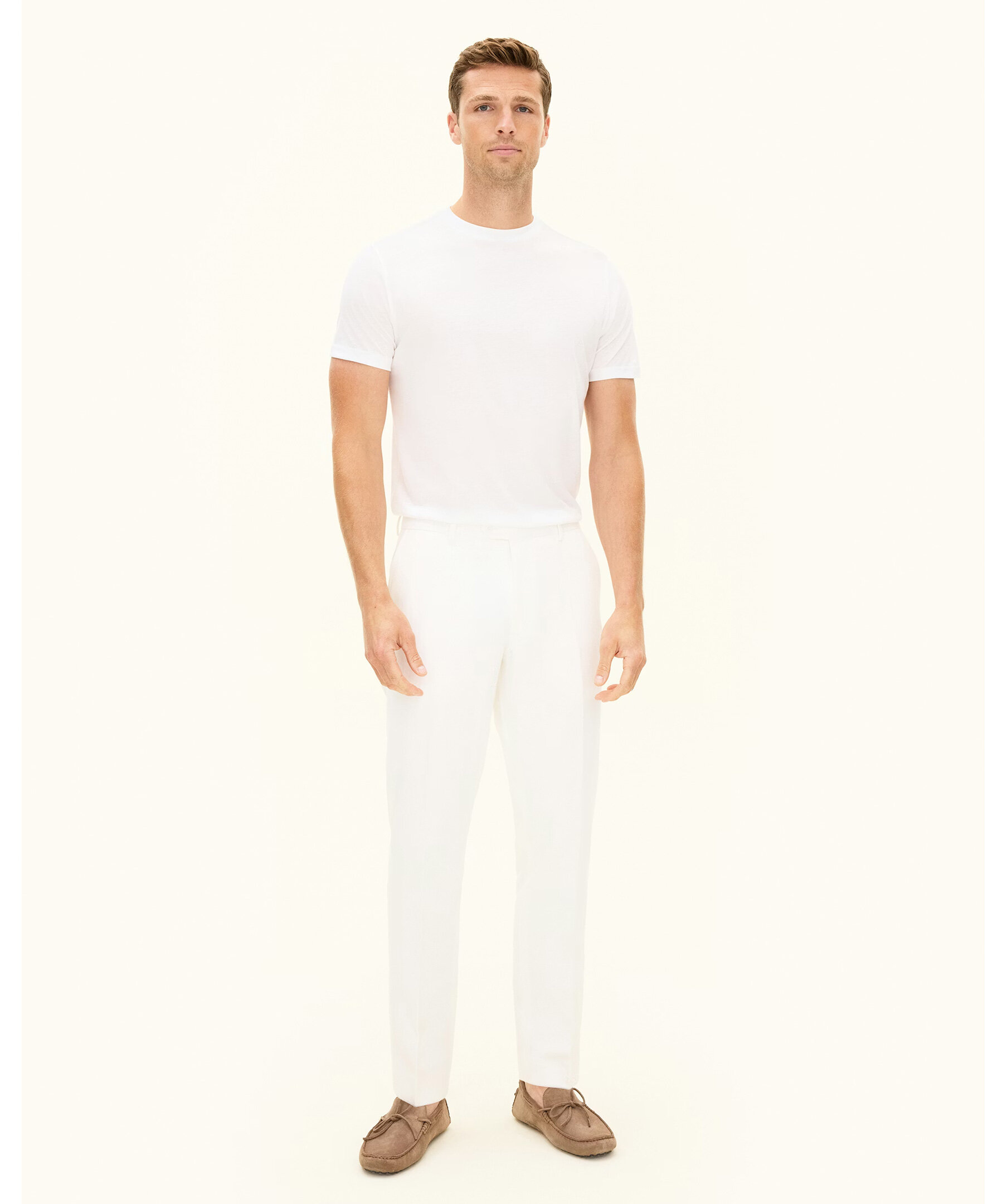 Vit T‑shirt i Tencel‑bomull från Oscar Jacobson. T‑shirten är mjuk och bekväm med rund halsringning och har en subtil lätt glans i tyget som ger en stilren och modern bas – perfekt för både avslappnade vardagsoutfits och lager‑på‑lager‑stil under kavaj. Tyget kombinerar lyocell och bomull för skön komfort och elegant känsla.