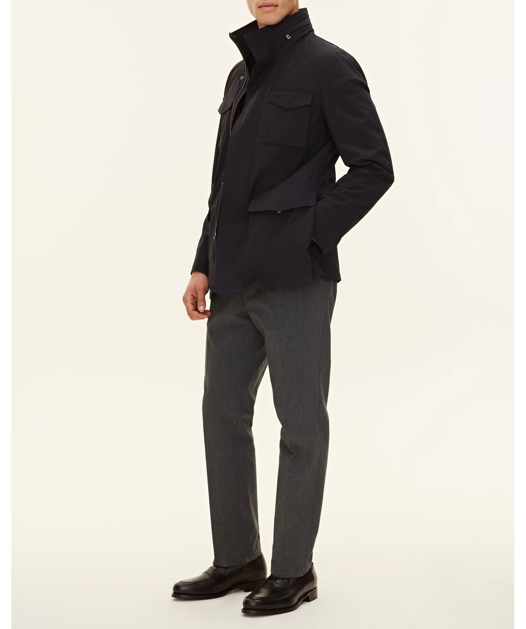 Field jacka från Oscar Jacobson som är en stilren och funktionell version av den klassiska M-65 jackan framtagen för att fungera till kavaj eller en ledigare stickad tröja. Med sex fickor utvändigt och tre innerfickor så har du plats för allt du behöver ha med dig och dessutom möjlighet skydda händerna i tuffa väderlag. Ryggen är utformad med action back för att ge dig ytterligare rörlighet i plagget och midjan är markerad med anpassningsbara dragskor för en personlig passform.