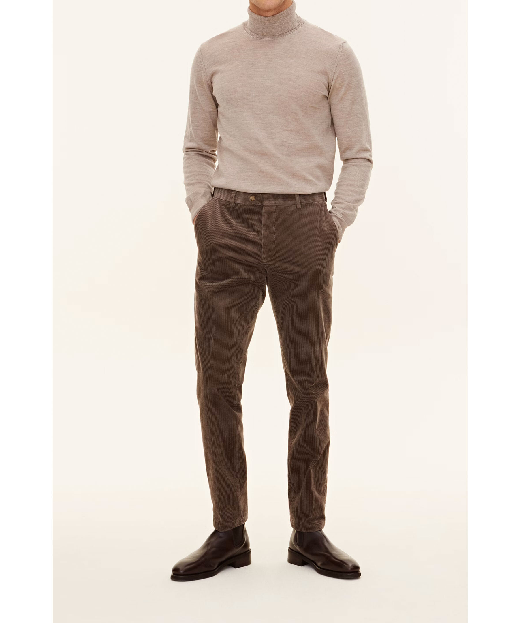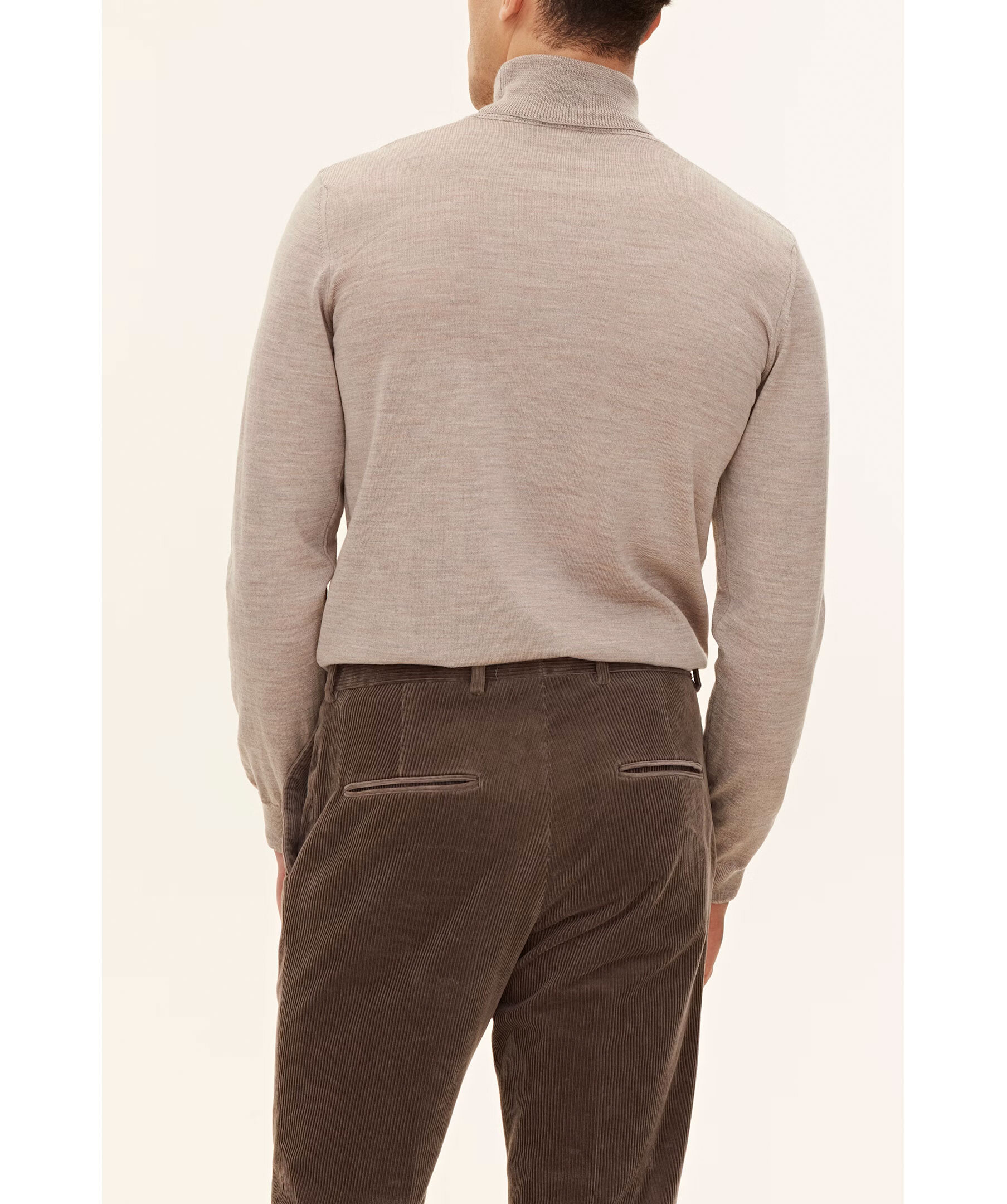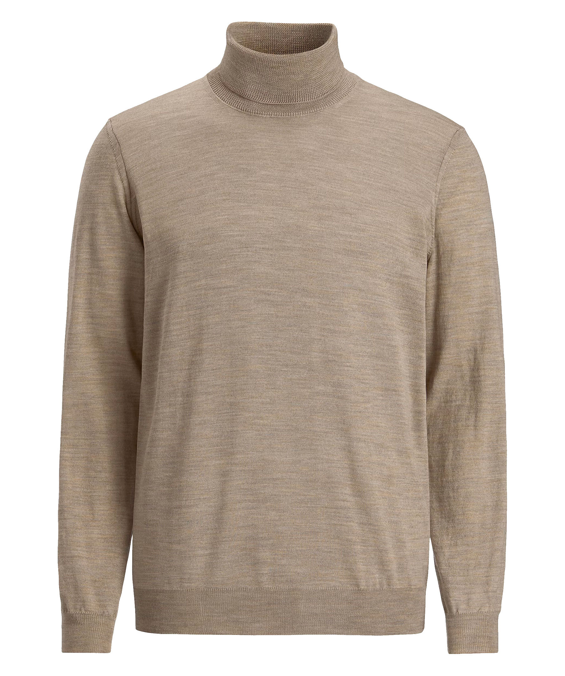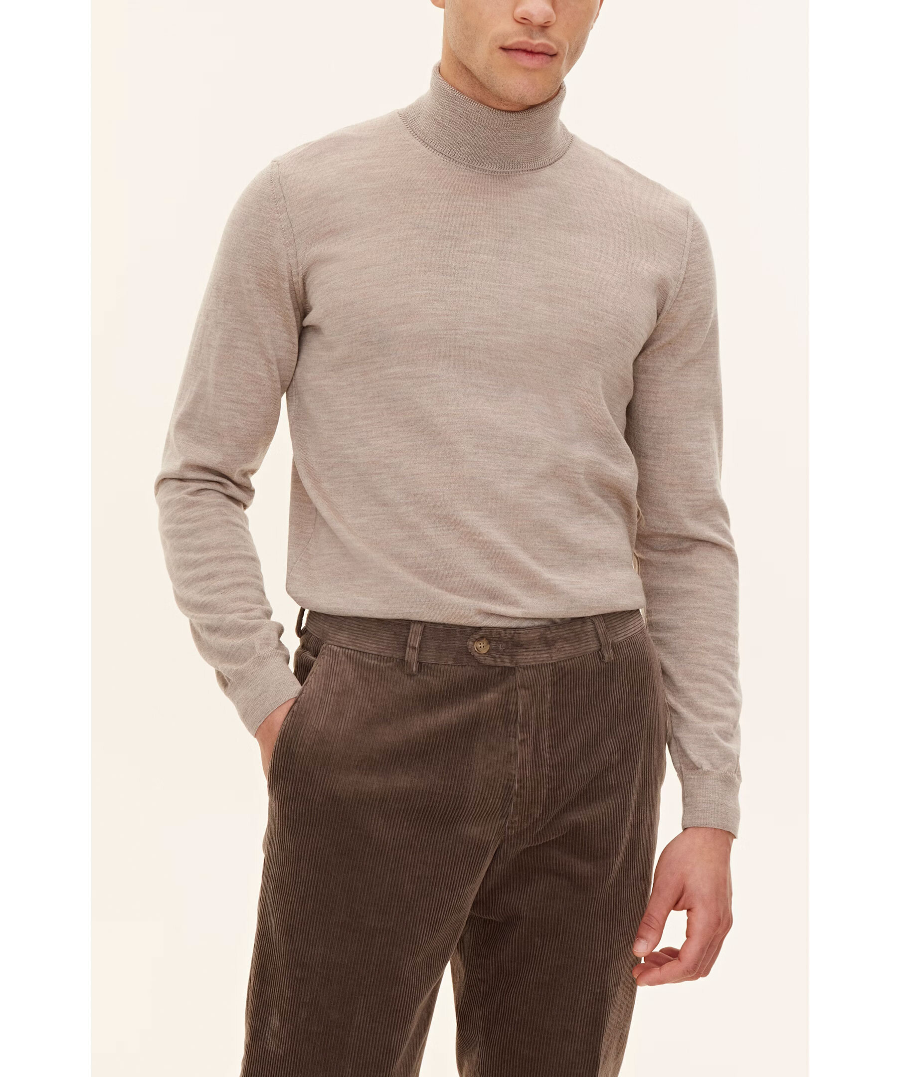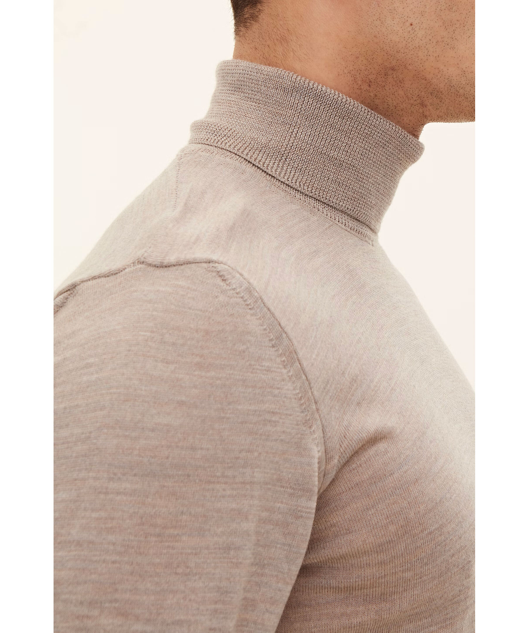 Beige polotröja från Oscar Jacobson. Tillverkad i fin merinoull. Ribbstickade muddar.