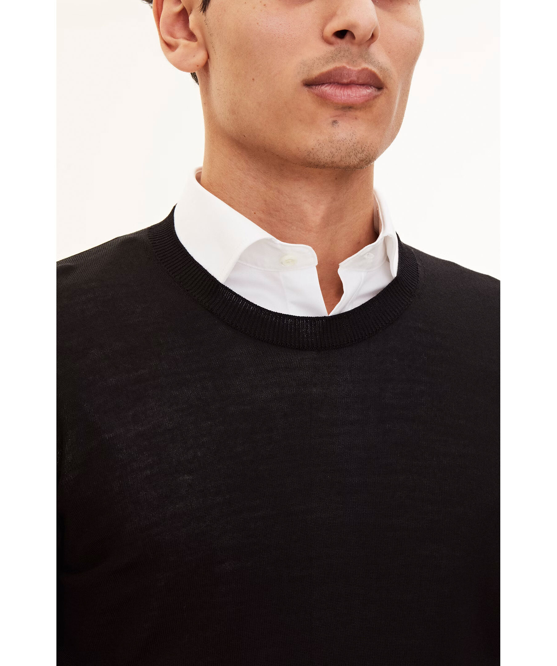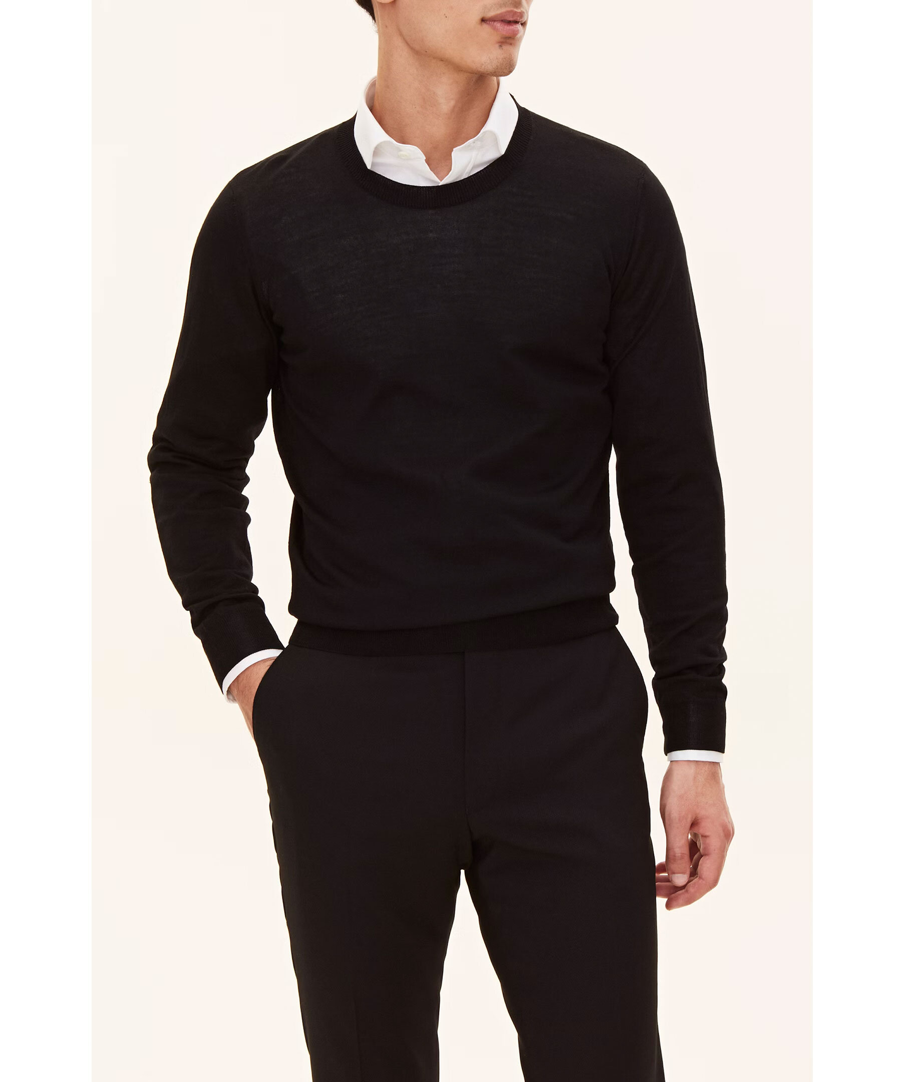 Svart pullover från Oscar Jacobson. Normal passform och gjord i 100% merioull.