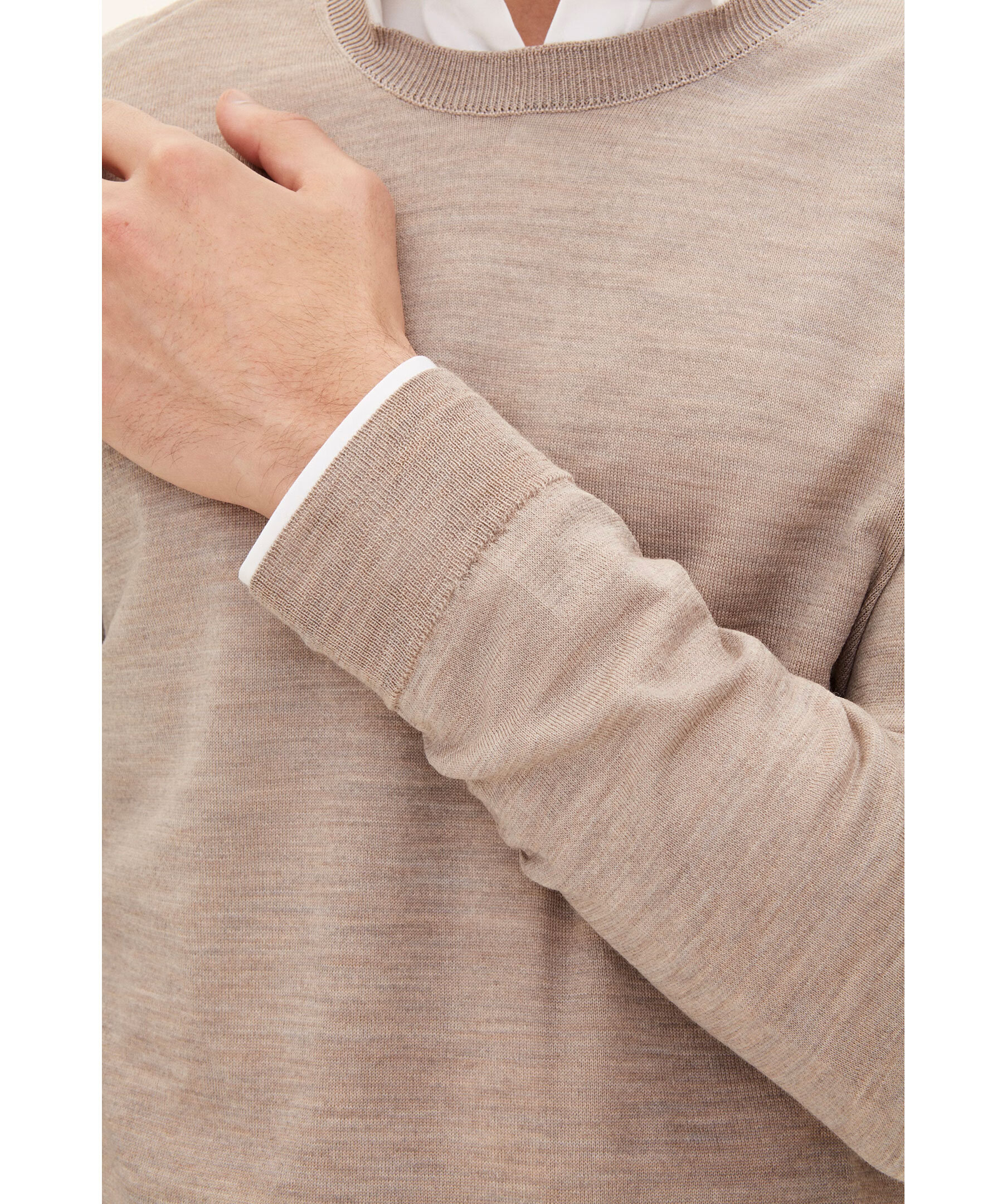 Beige pullover från Oscar Jacobson. Normal passform och gjord i 100% merioull.