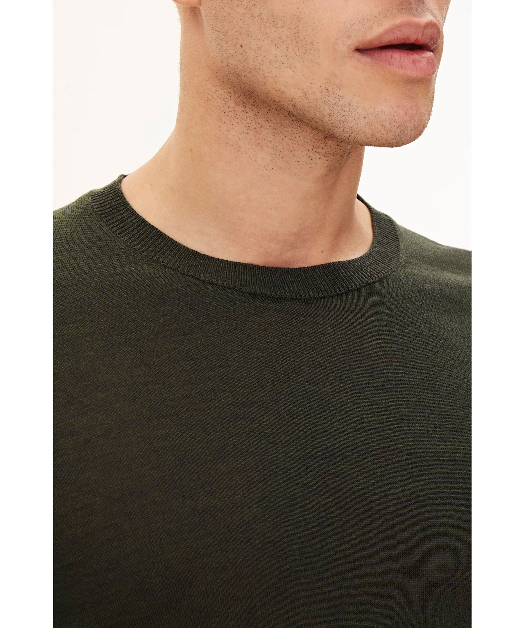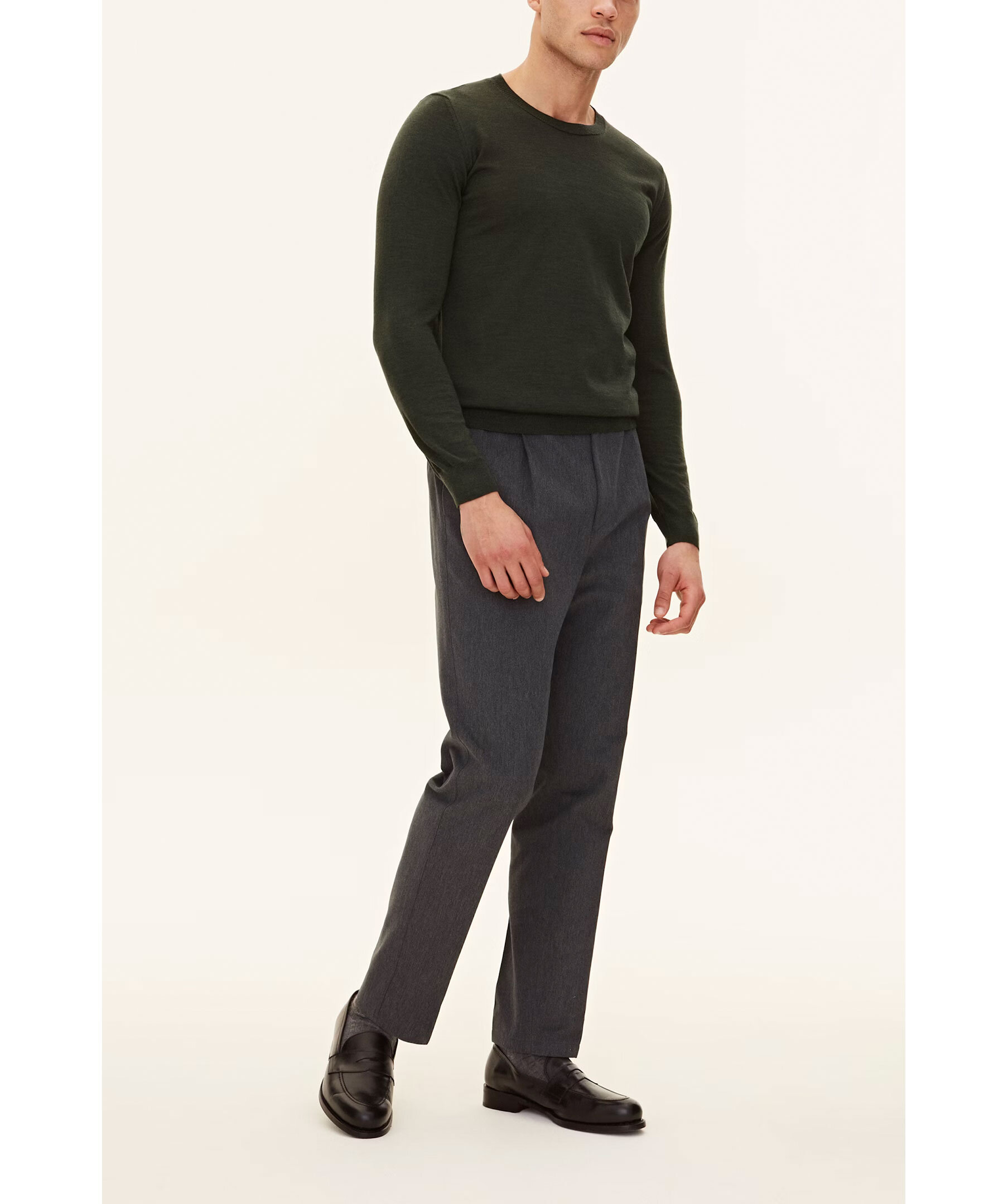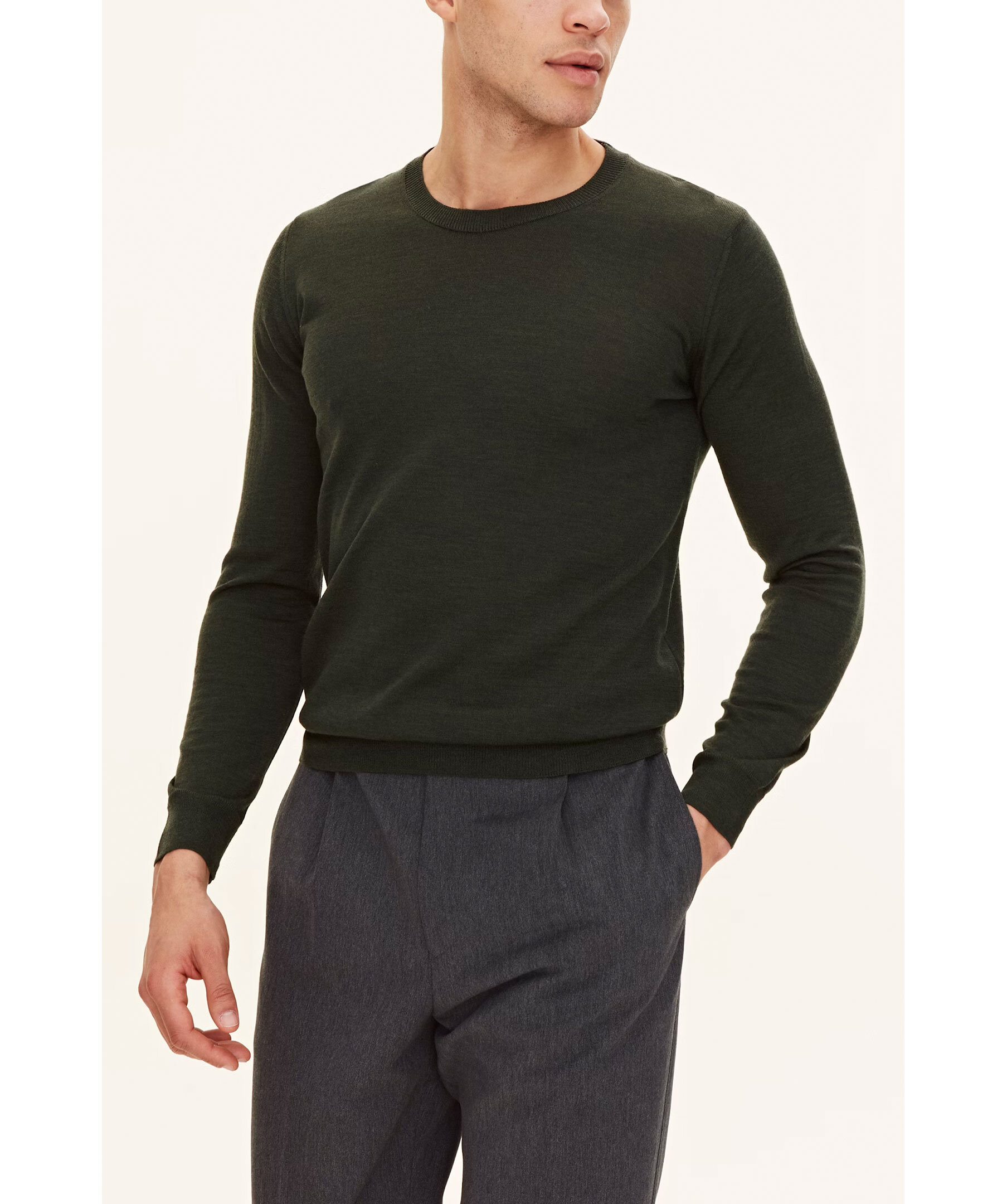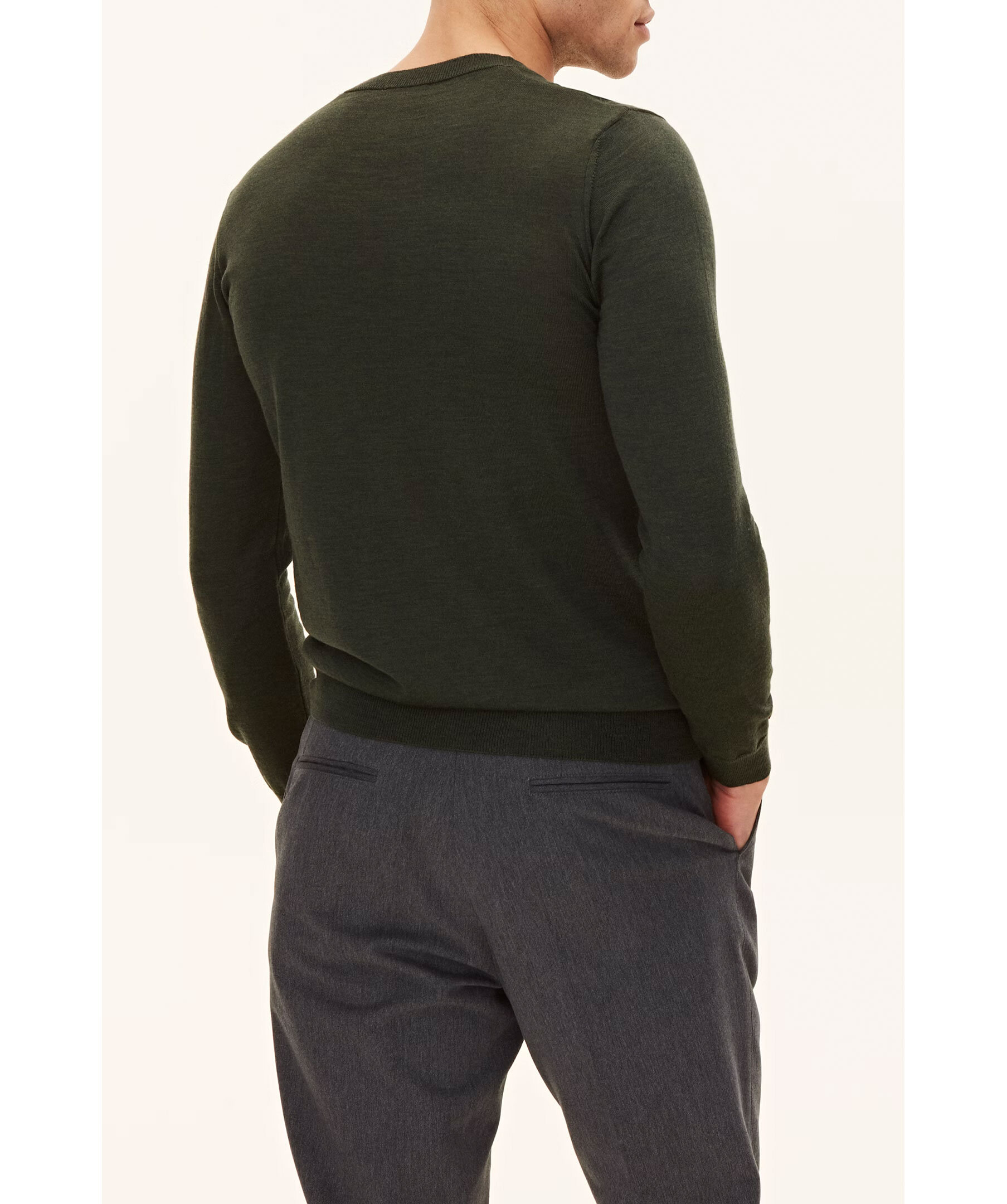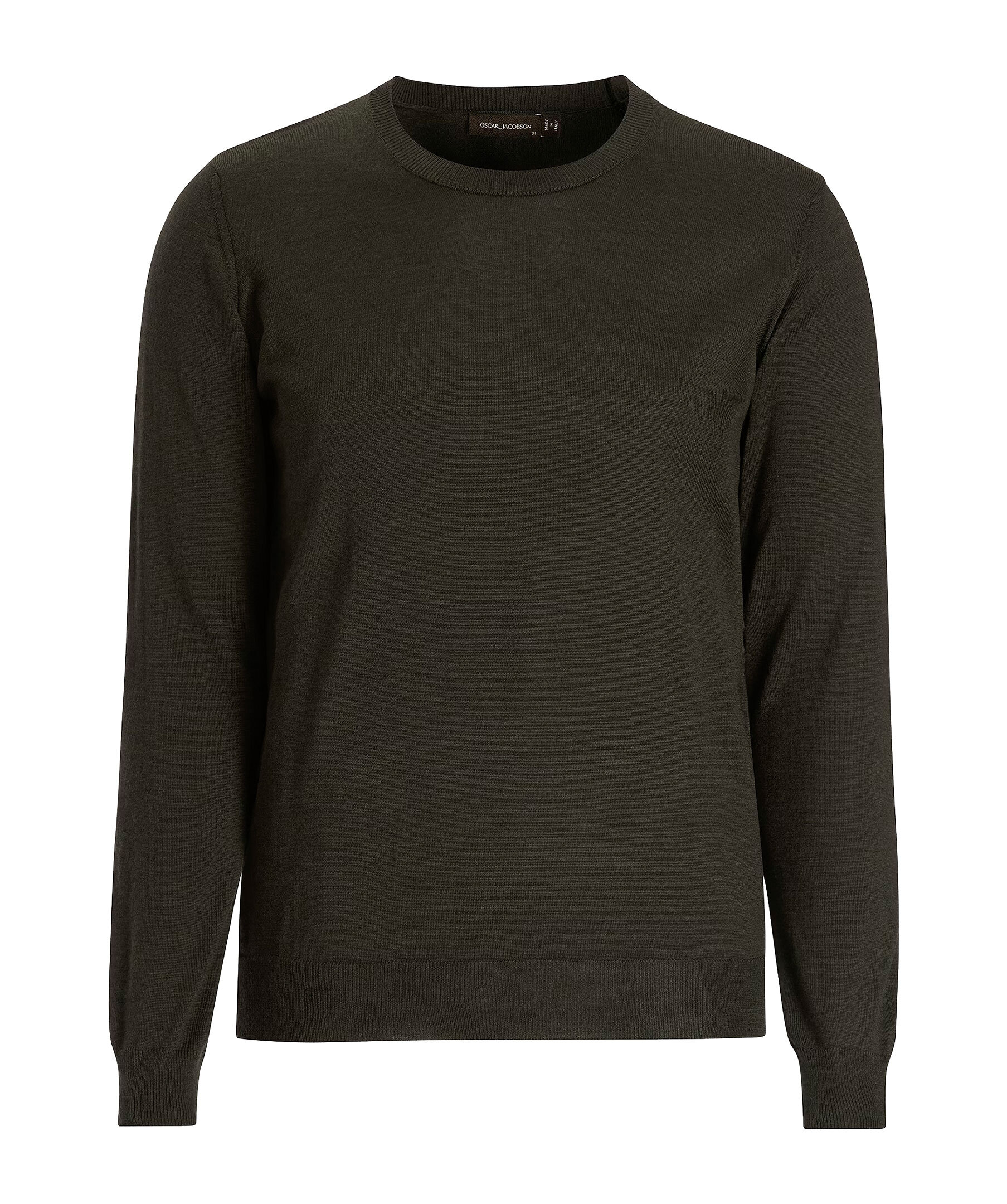 Mörkgrön pullover från Oscar Jacobson. Normal passform och gjord i 100% merioull.