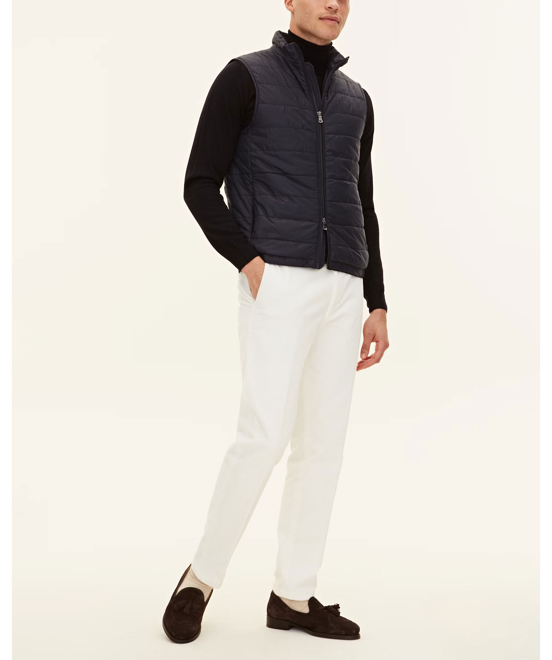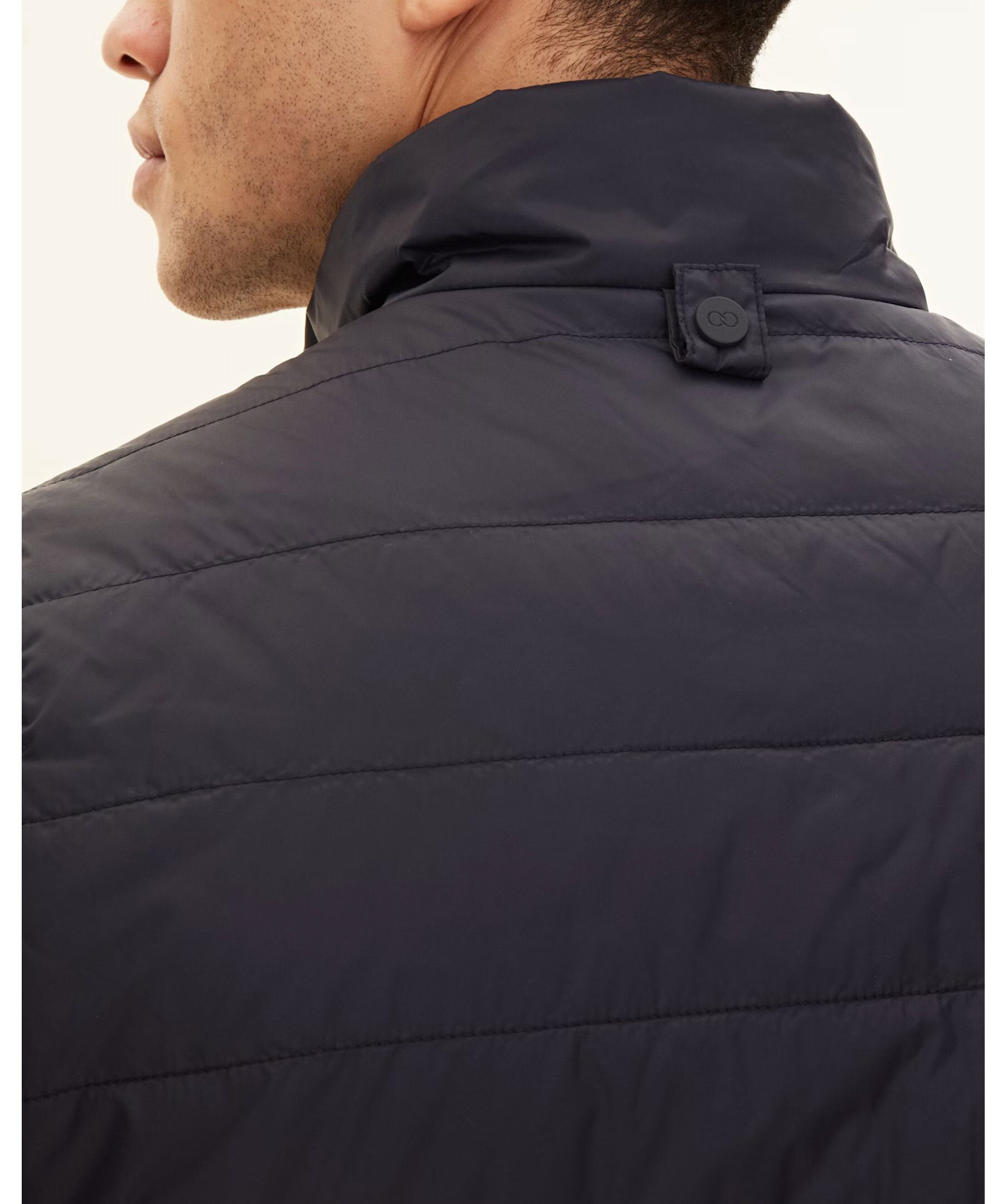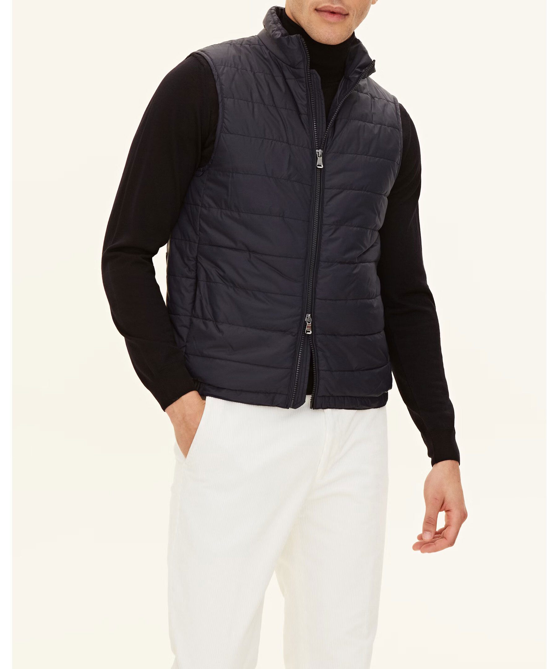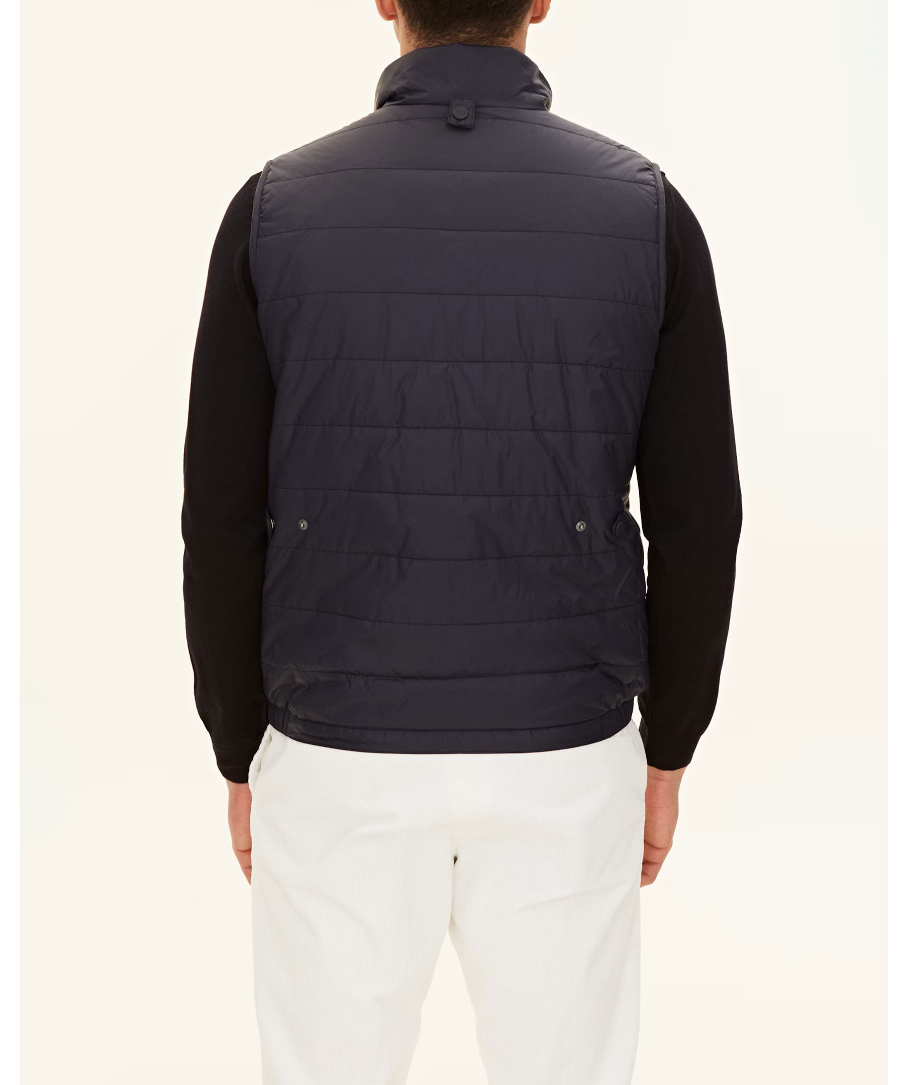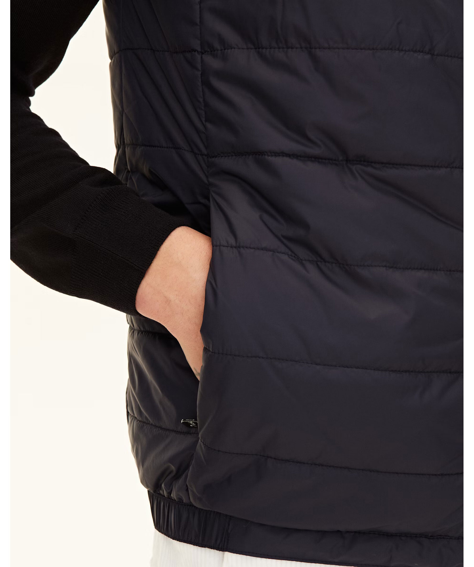 Lätt vadderad väst från Oscar Jacobson i vattenavvisande nylon, designad för maximal mångsidighet och komfort. Med växtbaserad Sorona-vaddering, slitstarkt ripstop-foder och smarta detaljer som fleecefodrade fickor erbjuder den ett stilrent och funktionellt skydd under kyliga dagar.