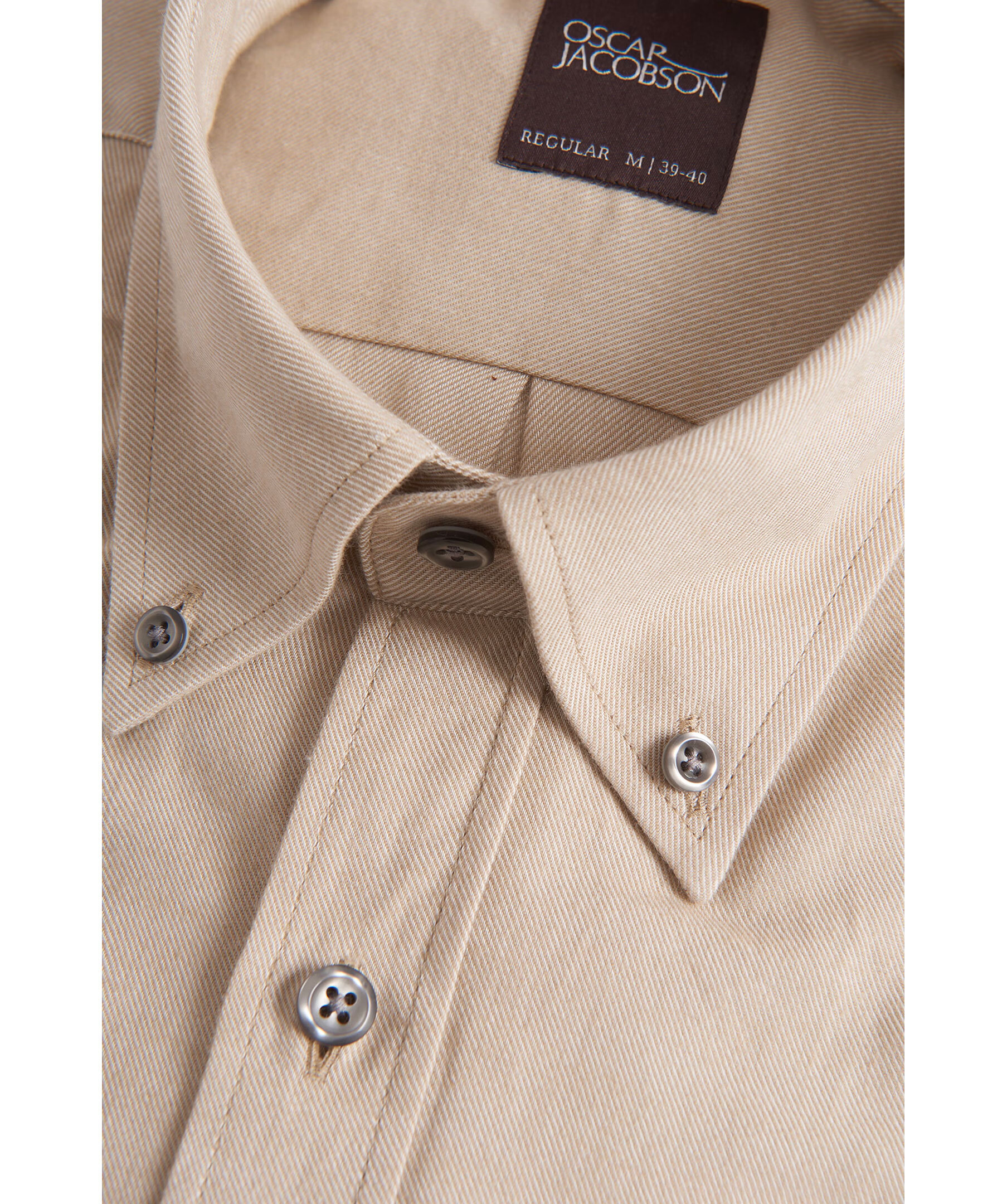 Beige flanellskjorta från Oscar Jacobson. Normal passform och gjord i 100% bomull. Button-down krage.