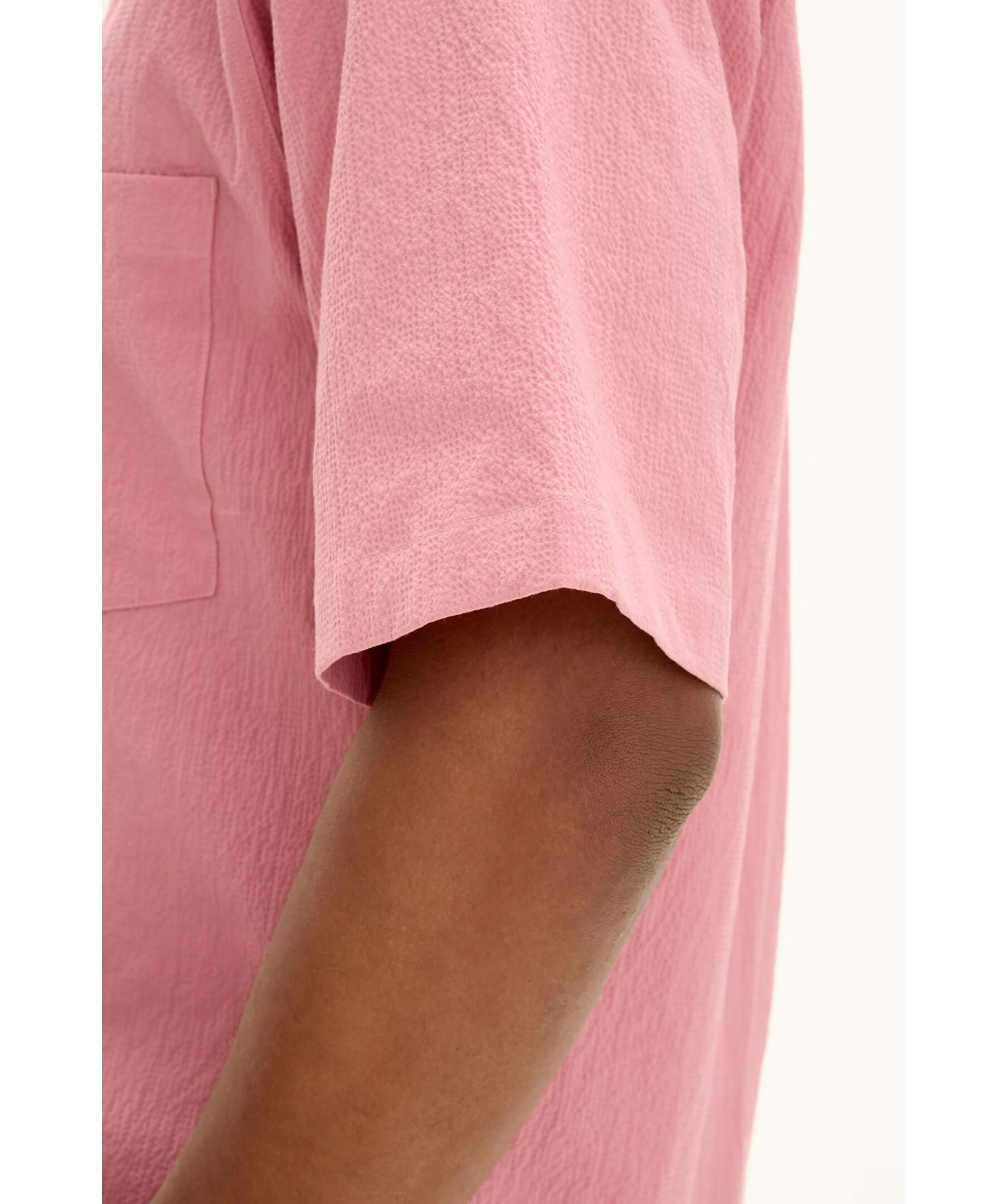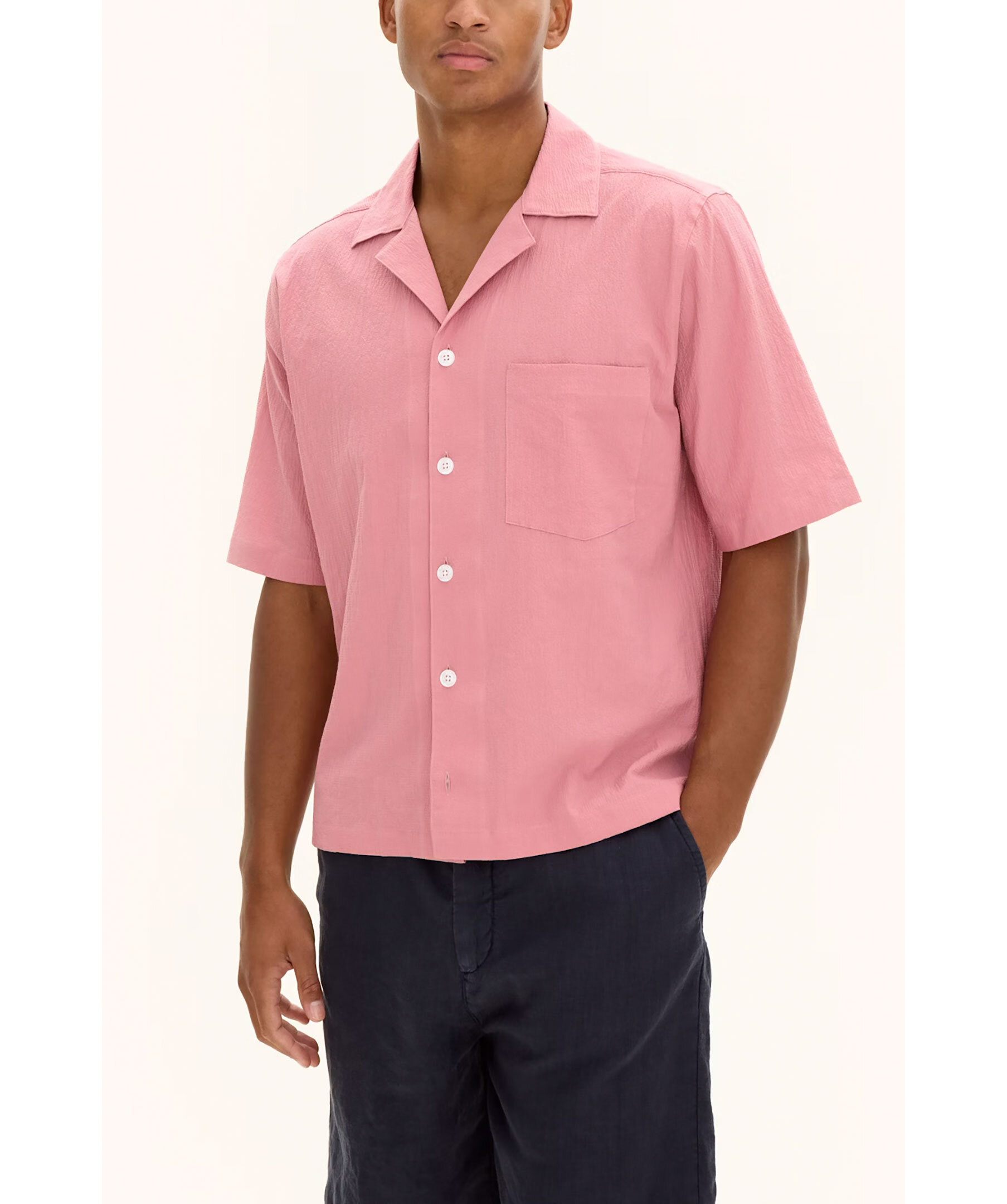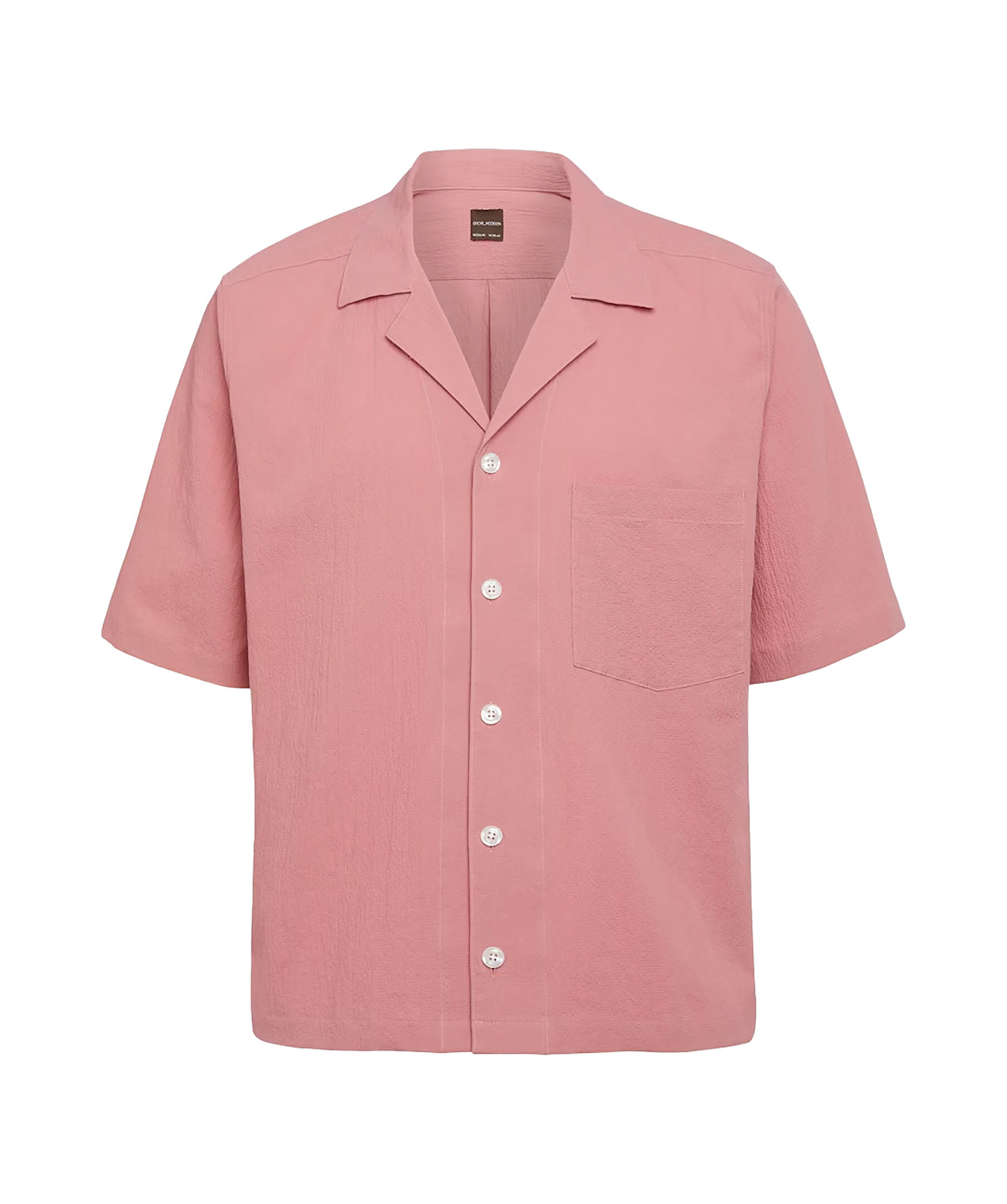Rosa, kortärmad skjorta från Oscar Jacobson. Skjortan har en bowlingkrage, en bröstficka samt seersucker struktur. Tillverkad i en bomullsblandning.