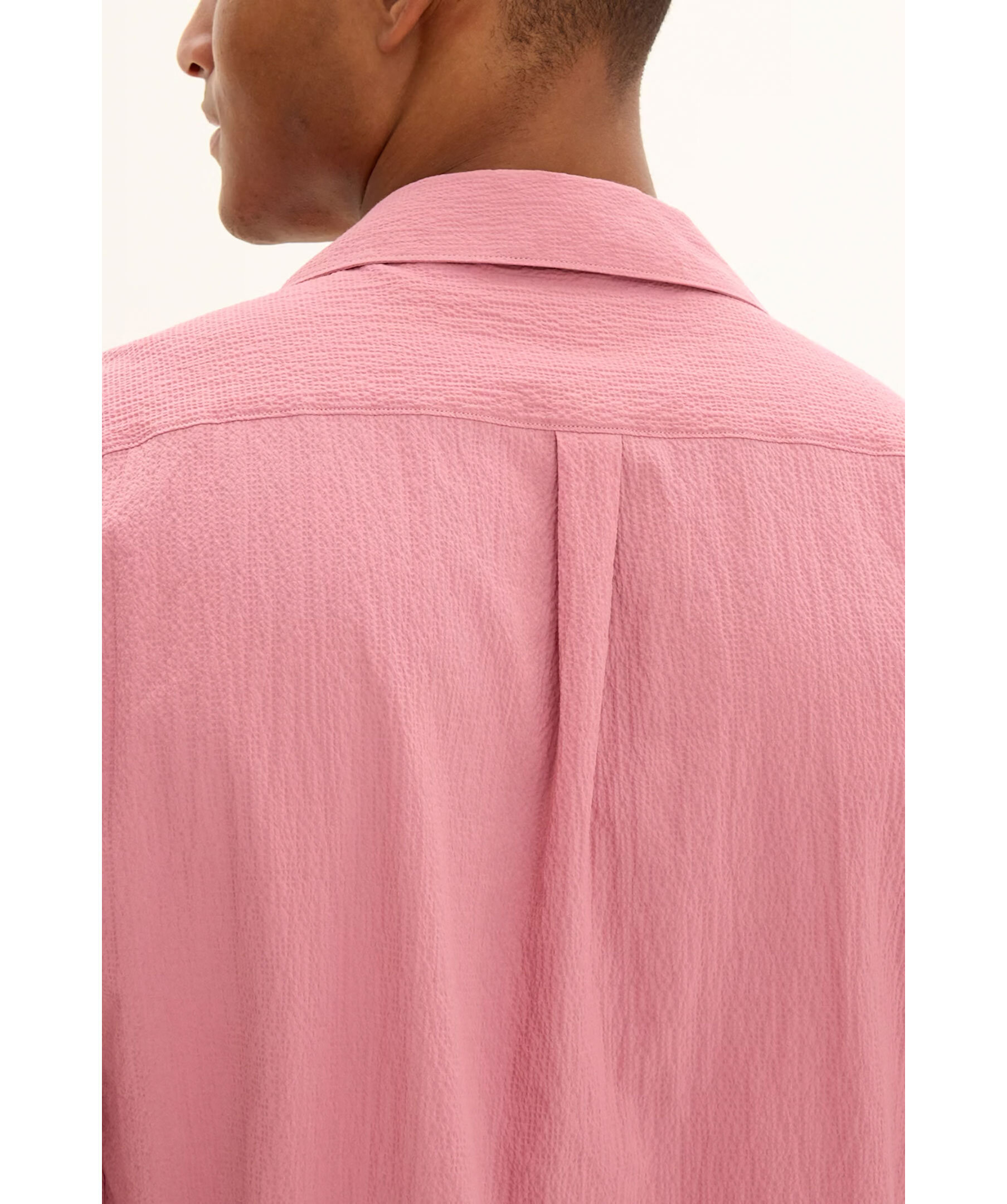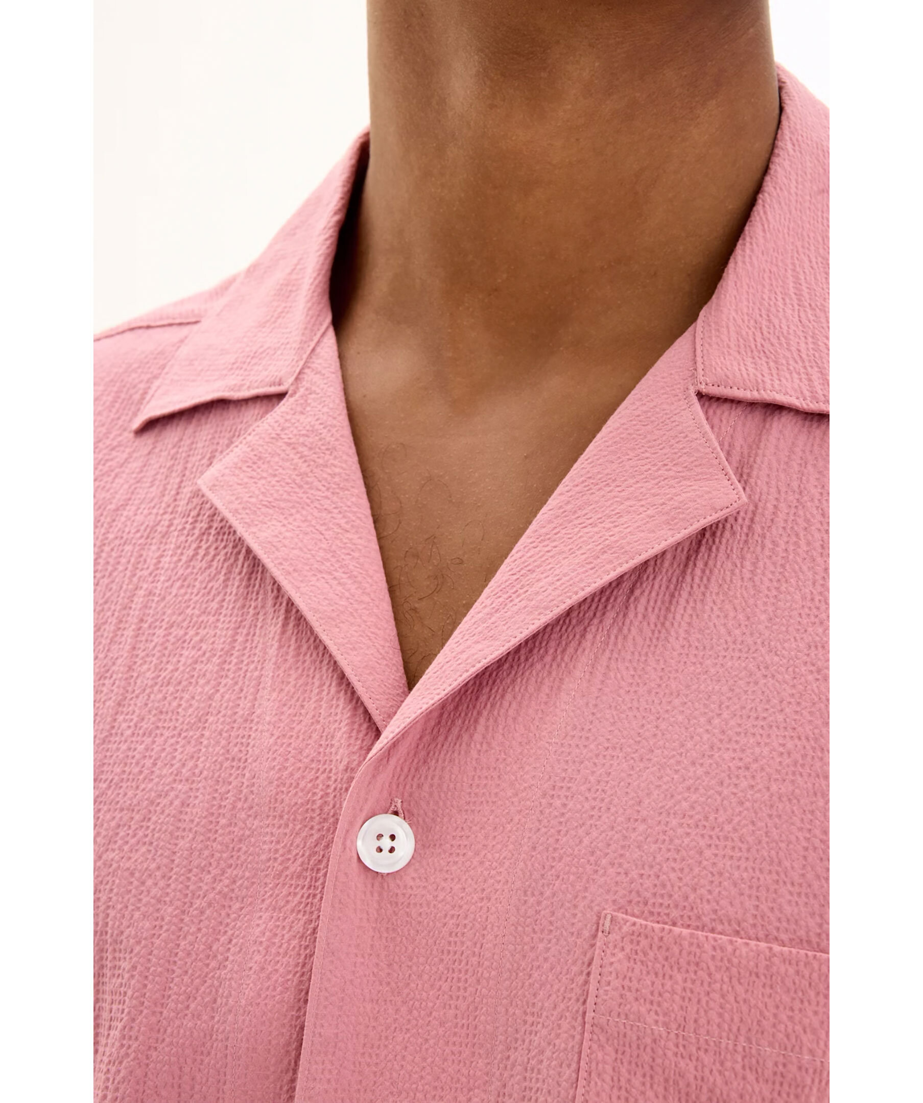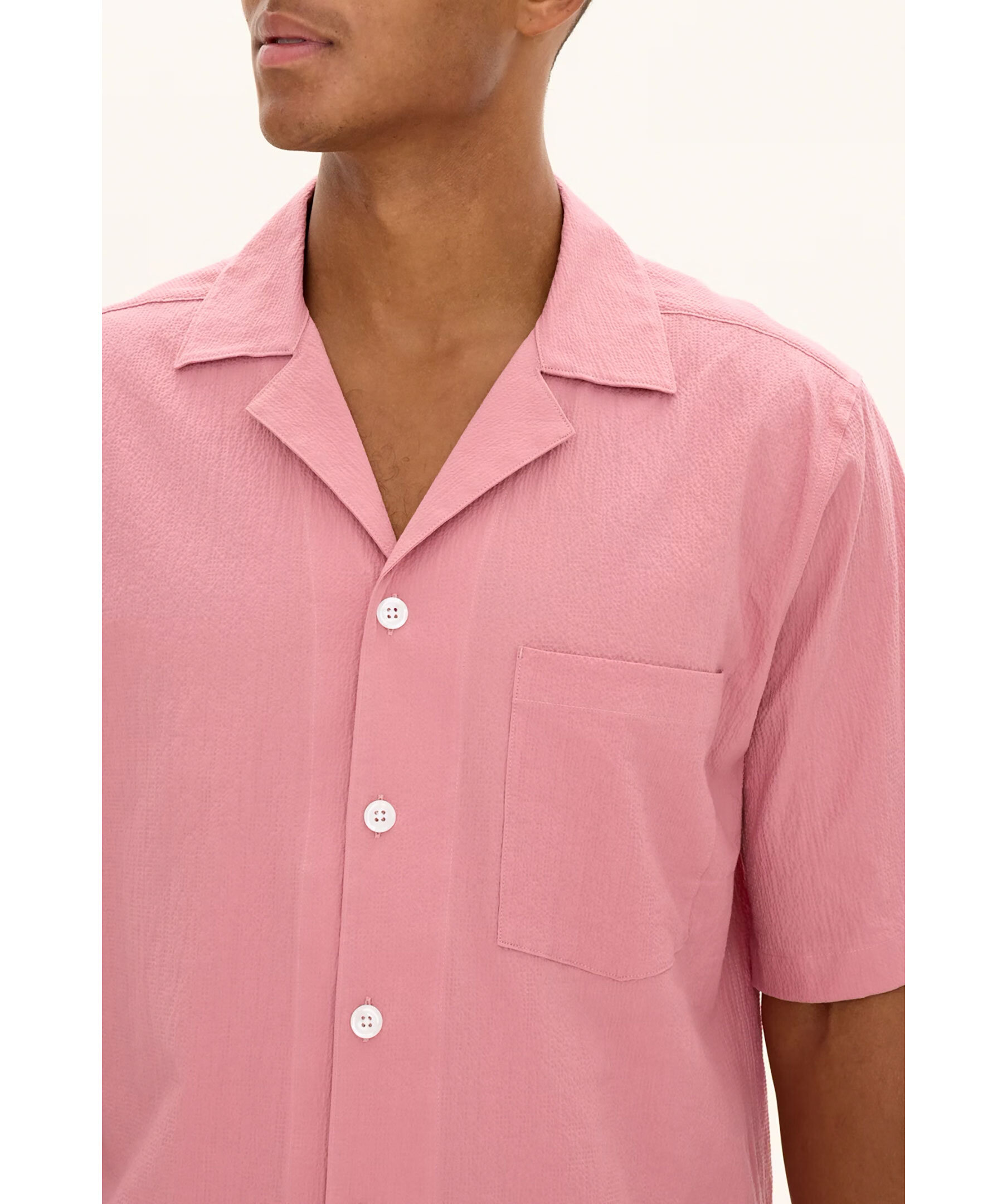 Rosa, kortärmad skjorta från Oscar Jacobson. Skjortan har en bowlingkrage, en bröstficka samt seersucker struktur. Tillverkad i en bomullsblandning.