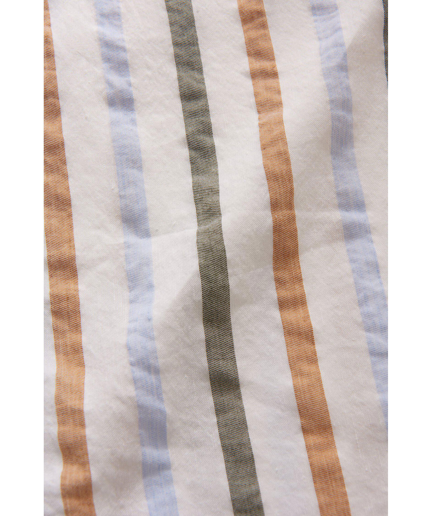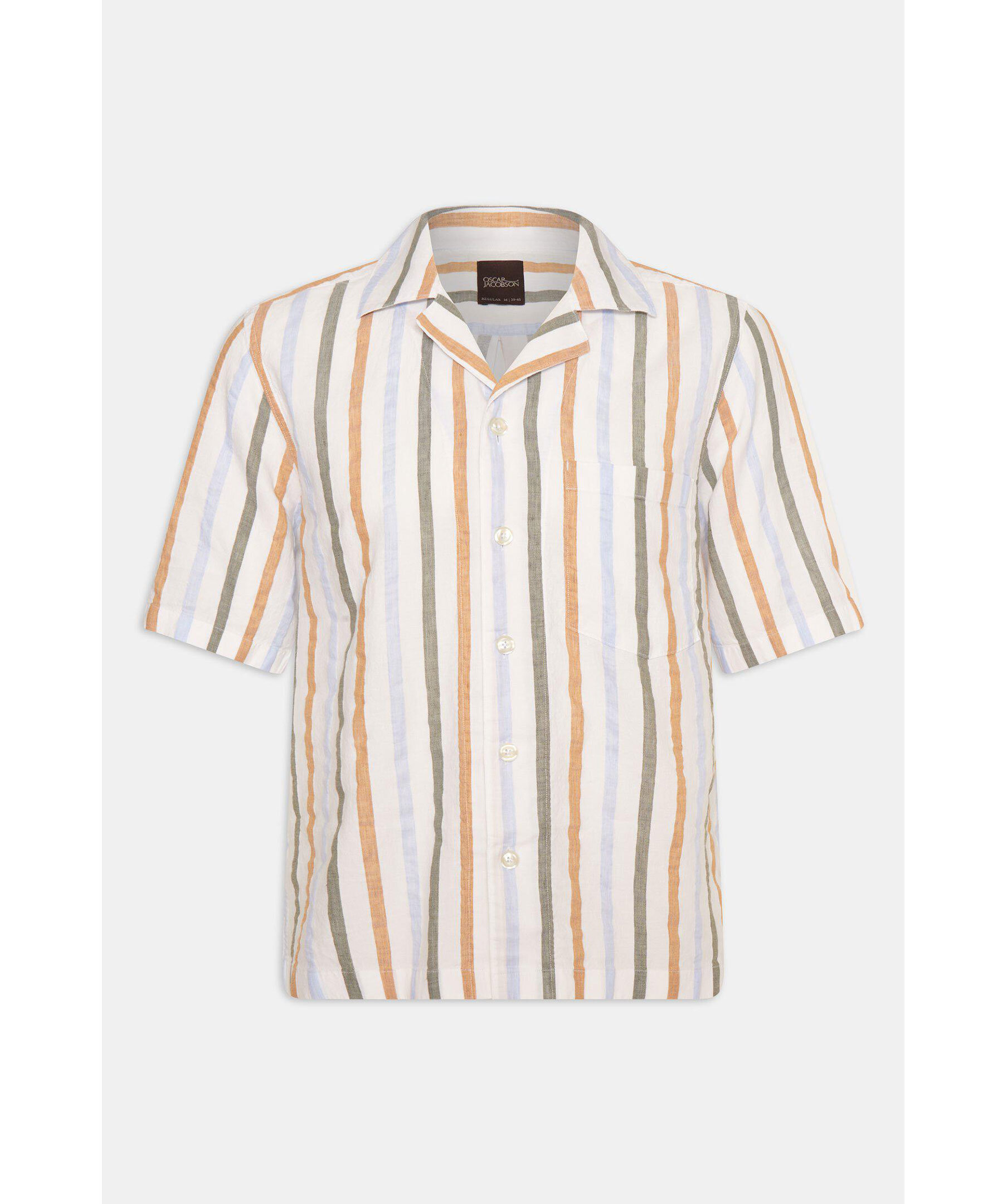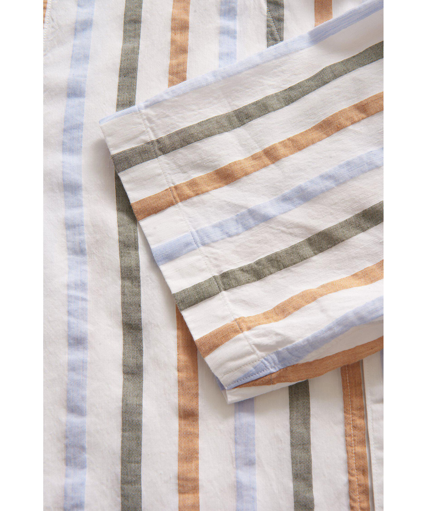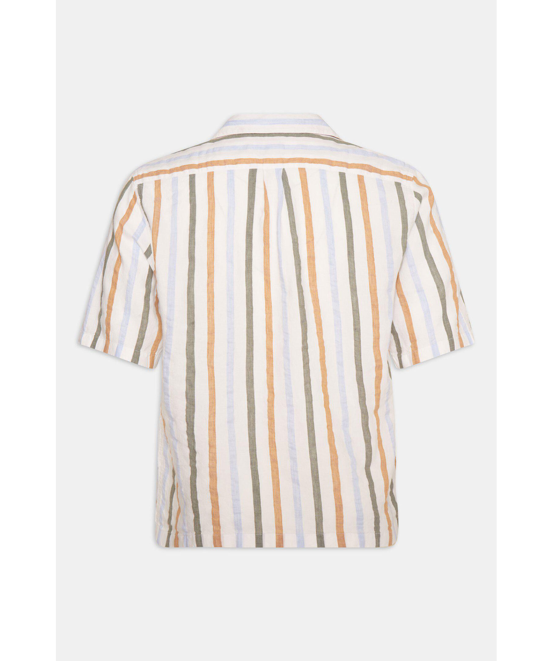 Kortärmad skjorta i regular fit med bowlingkrage. Gjord i ett randigt bomull och linnetyg.