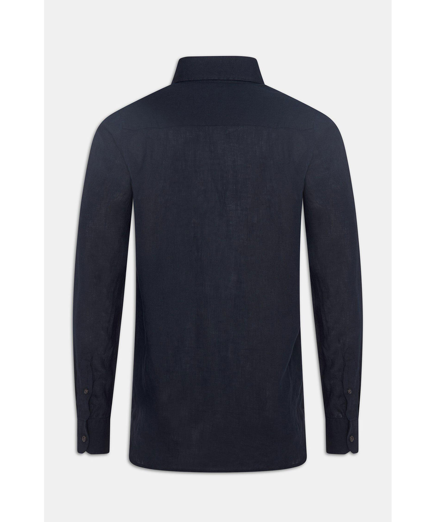 Oscar Jacobson Regular Fit Linen Shirt - Navy