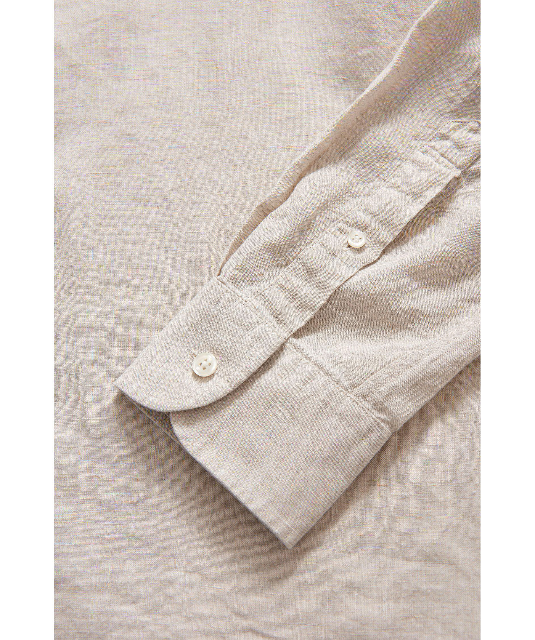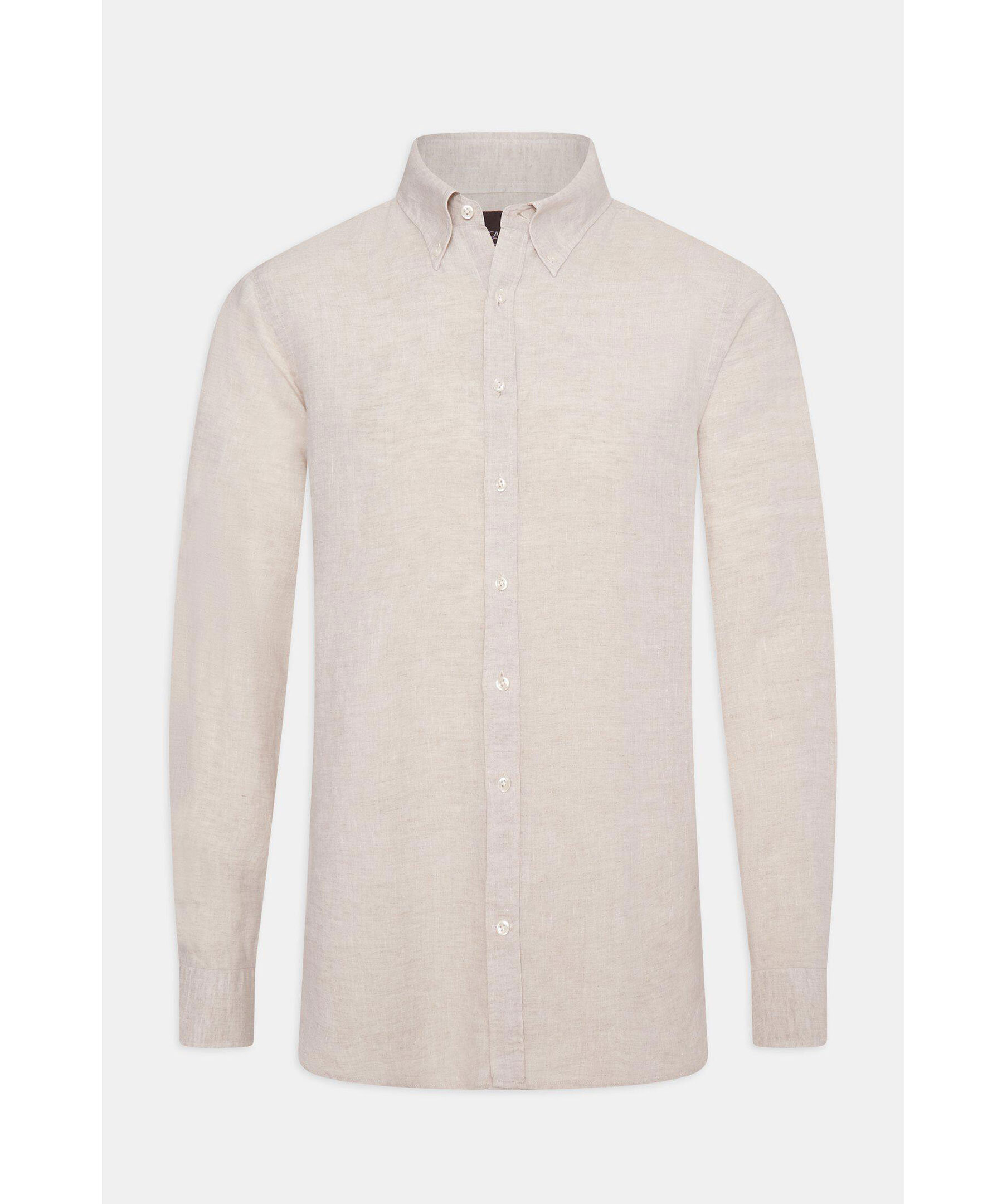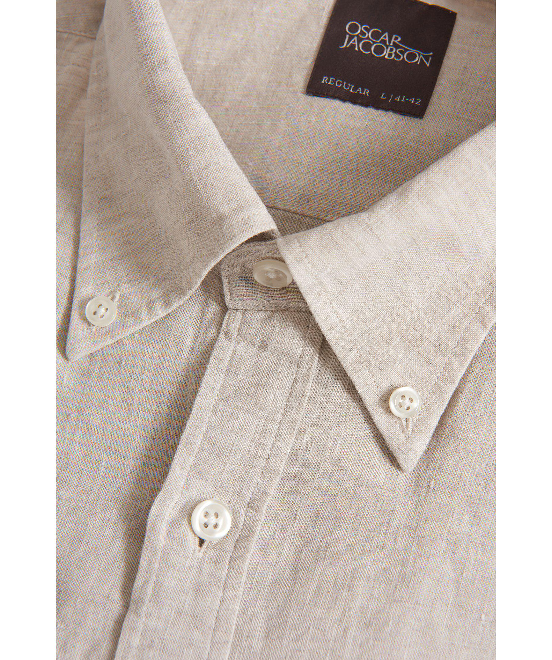 Beige linneskjorta från Oscar Jacobson. Skjortan är i regular fit med en ledigare button down krage och enkel manschett. Tillverkad av 100% linen.