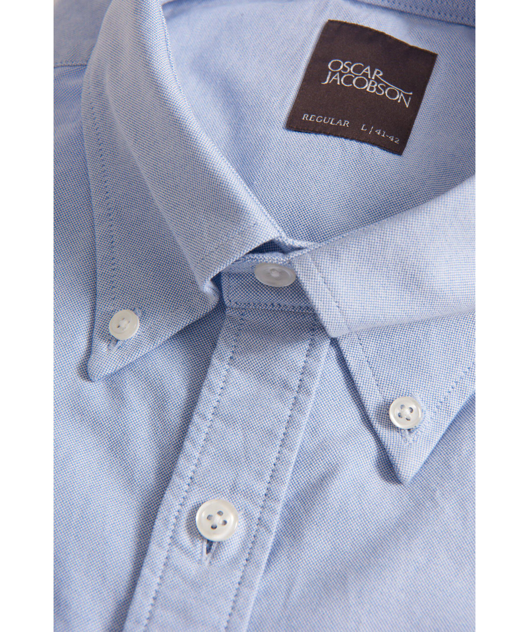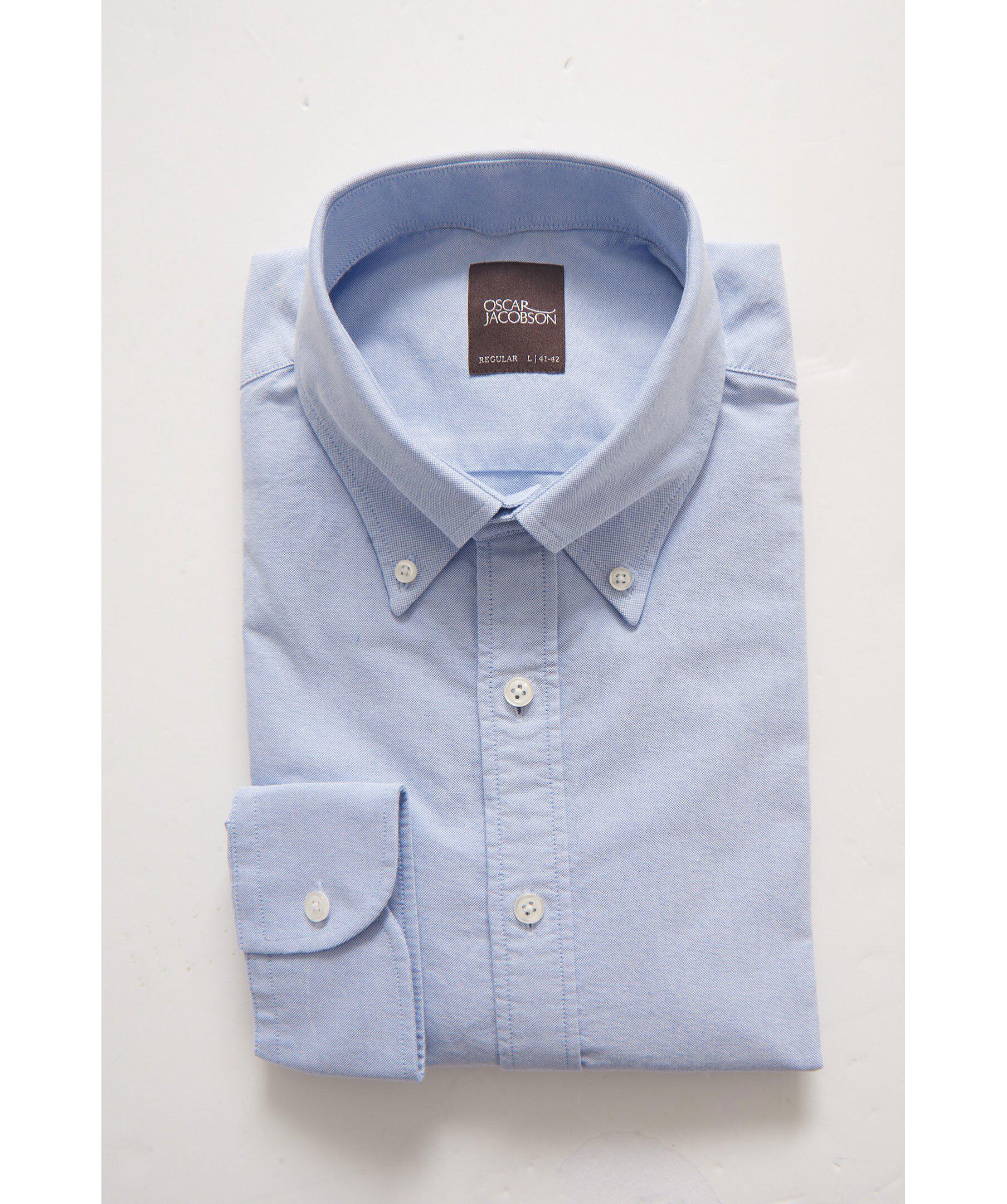 Klassisk oxfordskjorta i regular passform. Tillverkad i 100% bomull med elegant struktur och button down-krage som gör sig perfekt i både formella som sociala tillfällen. En skjorta alla bör ha i sin basgarderob som står sig lika bra instoppad som oinstoppad.