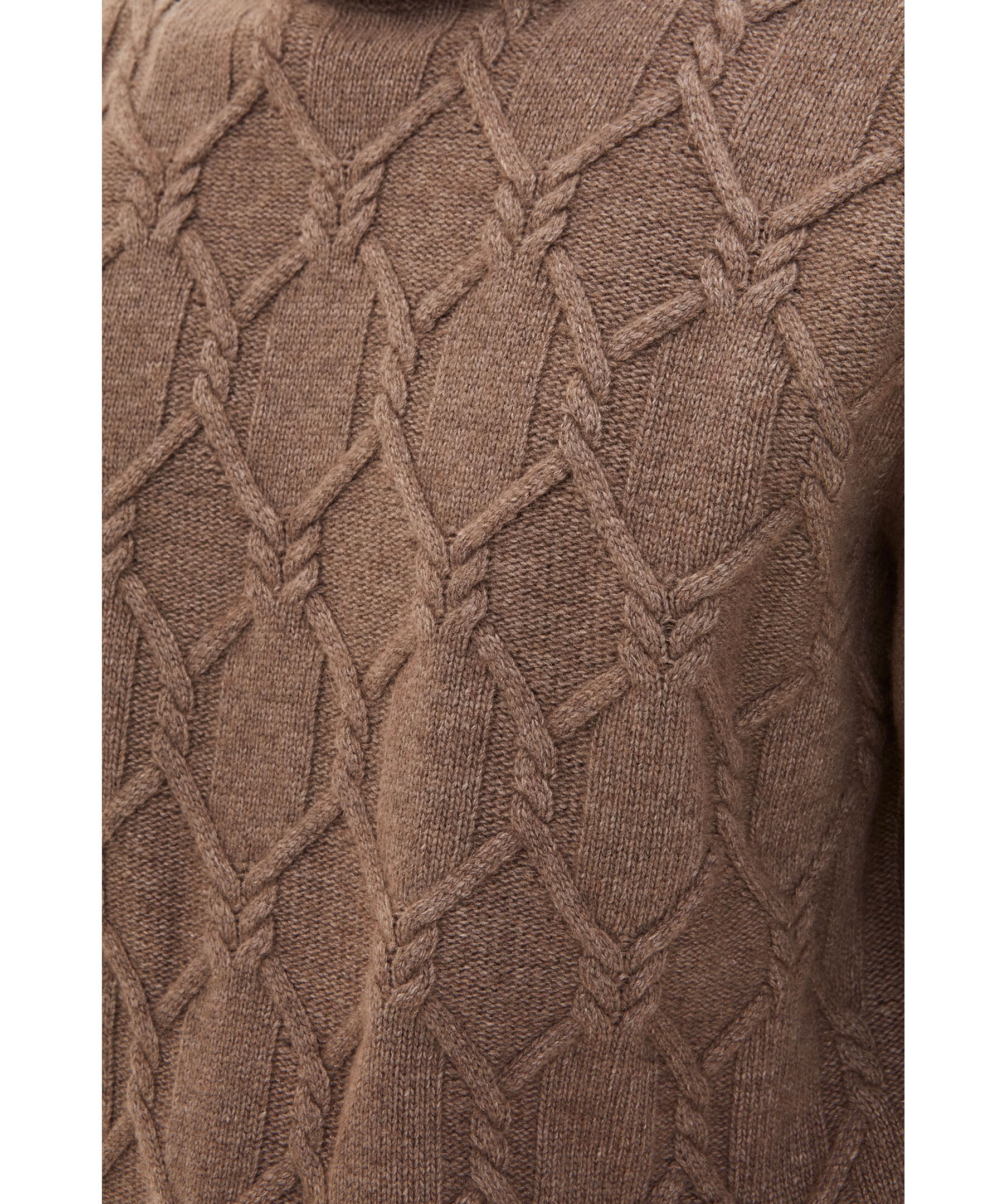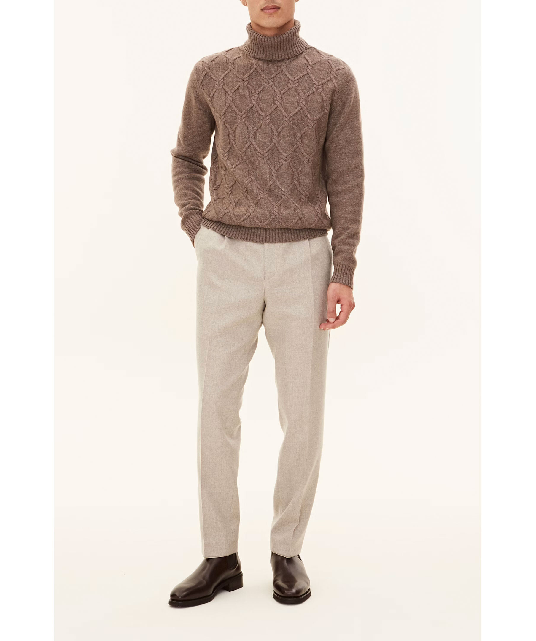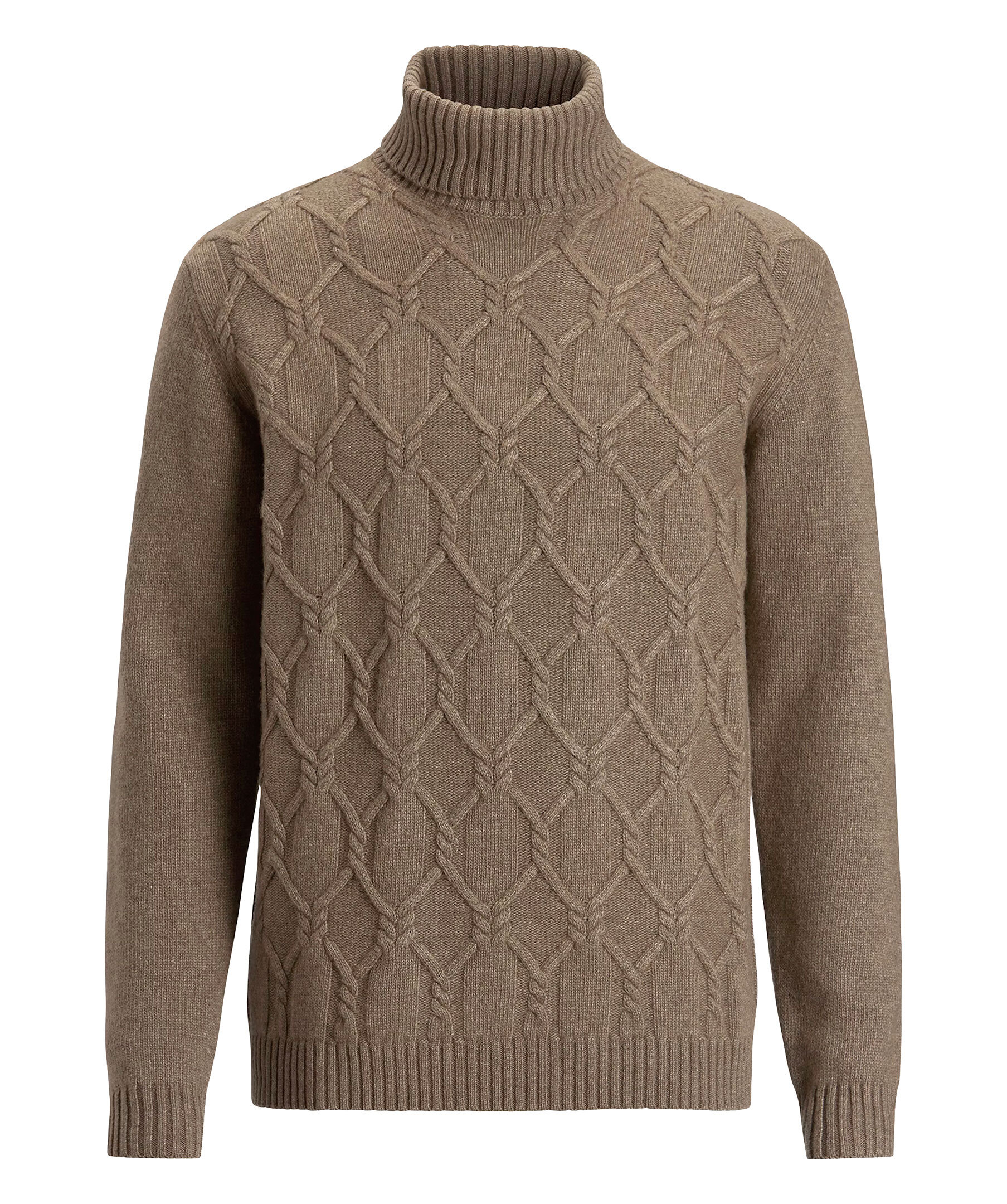Beige kabelstickad polotröja från Oscar Jacobson. Tröjan har en normal passform och är gjord i en ull och kashmirblandning.