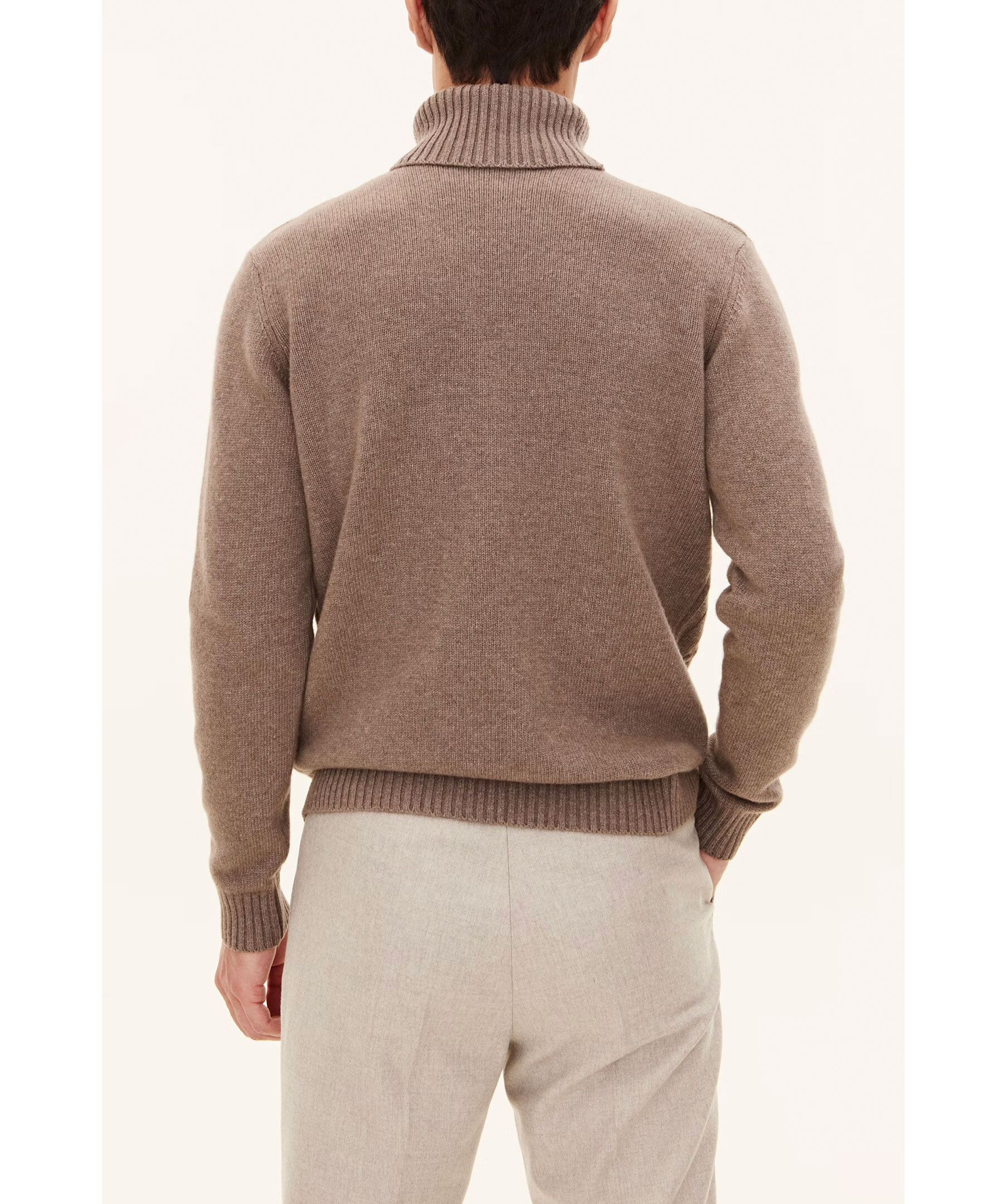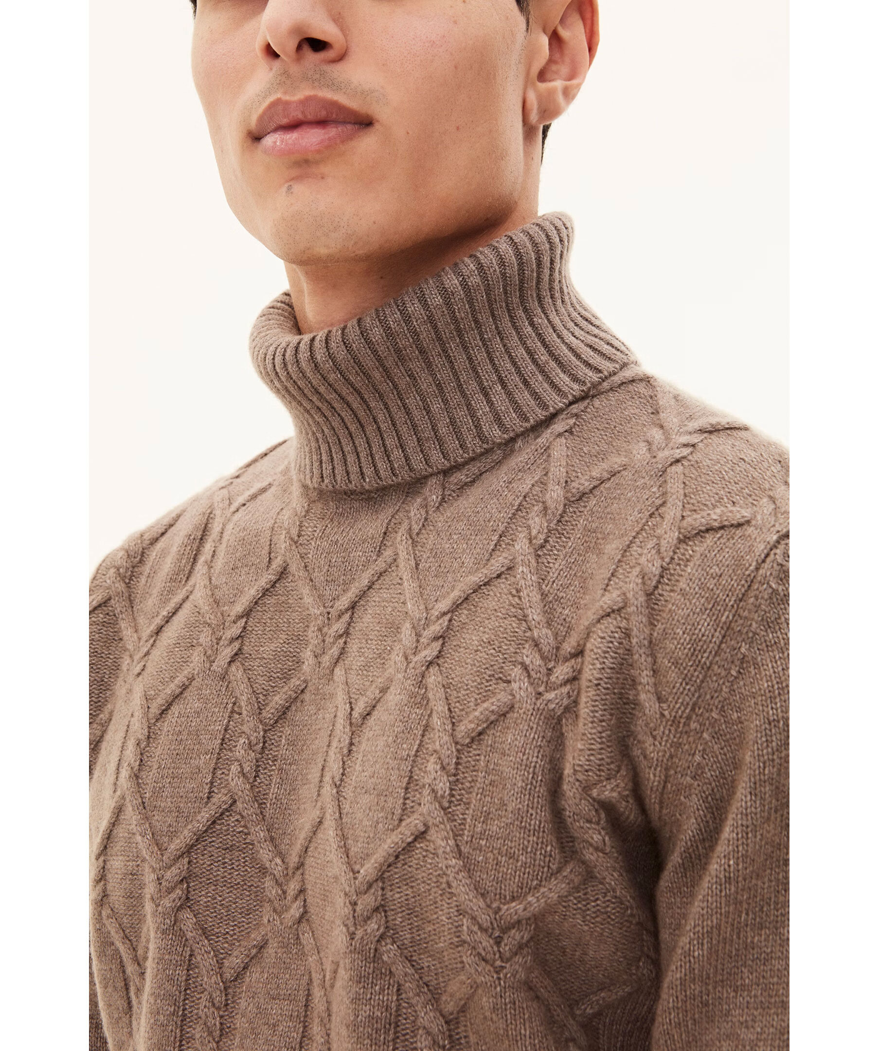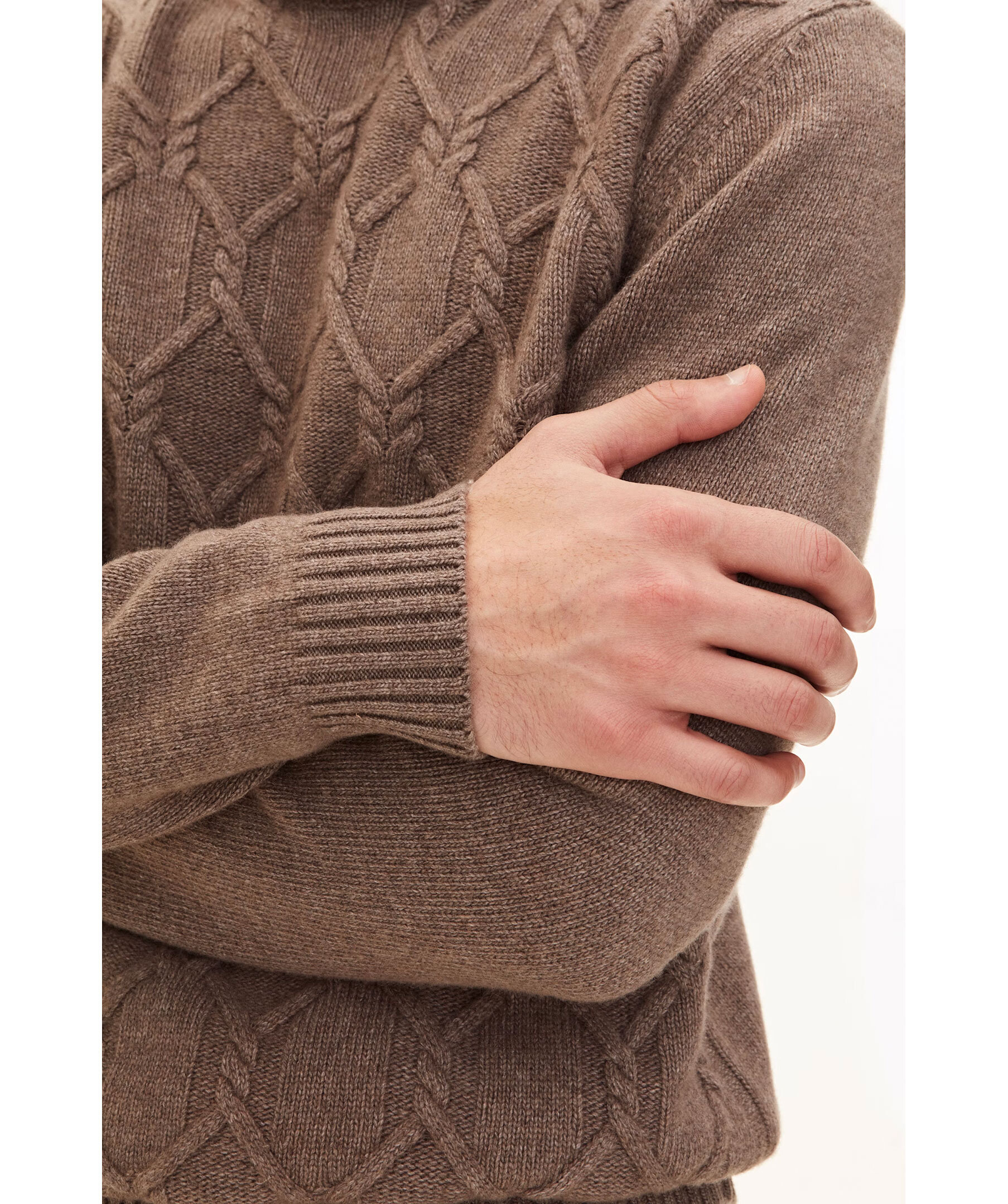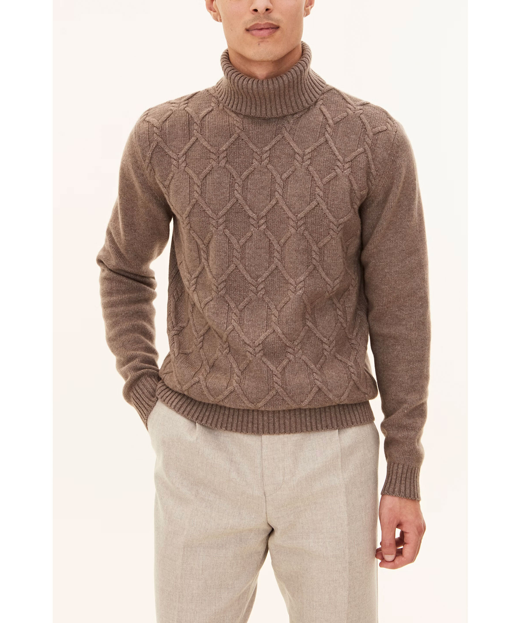 Beige kabelstickad polotröja från Oscar Jacobson. Tröjan har en normal passform och är gjord i en ull och kashmirblandning.