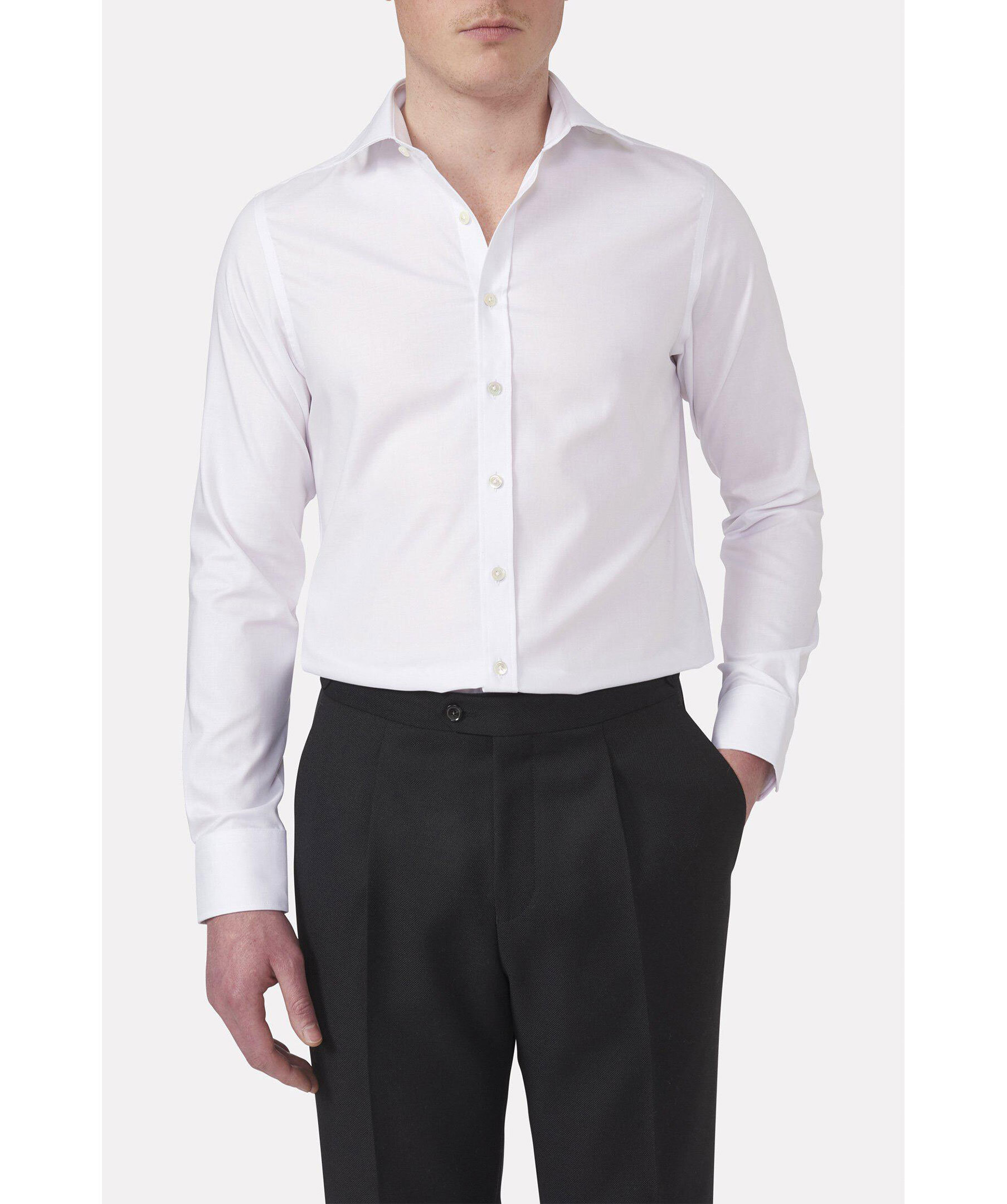 Vit skjorta från Oscar Jacobson. Skjortan har en klassisk cut-away krage. Tillverkad i ett strykfritt bomullstyg.