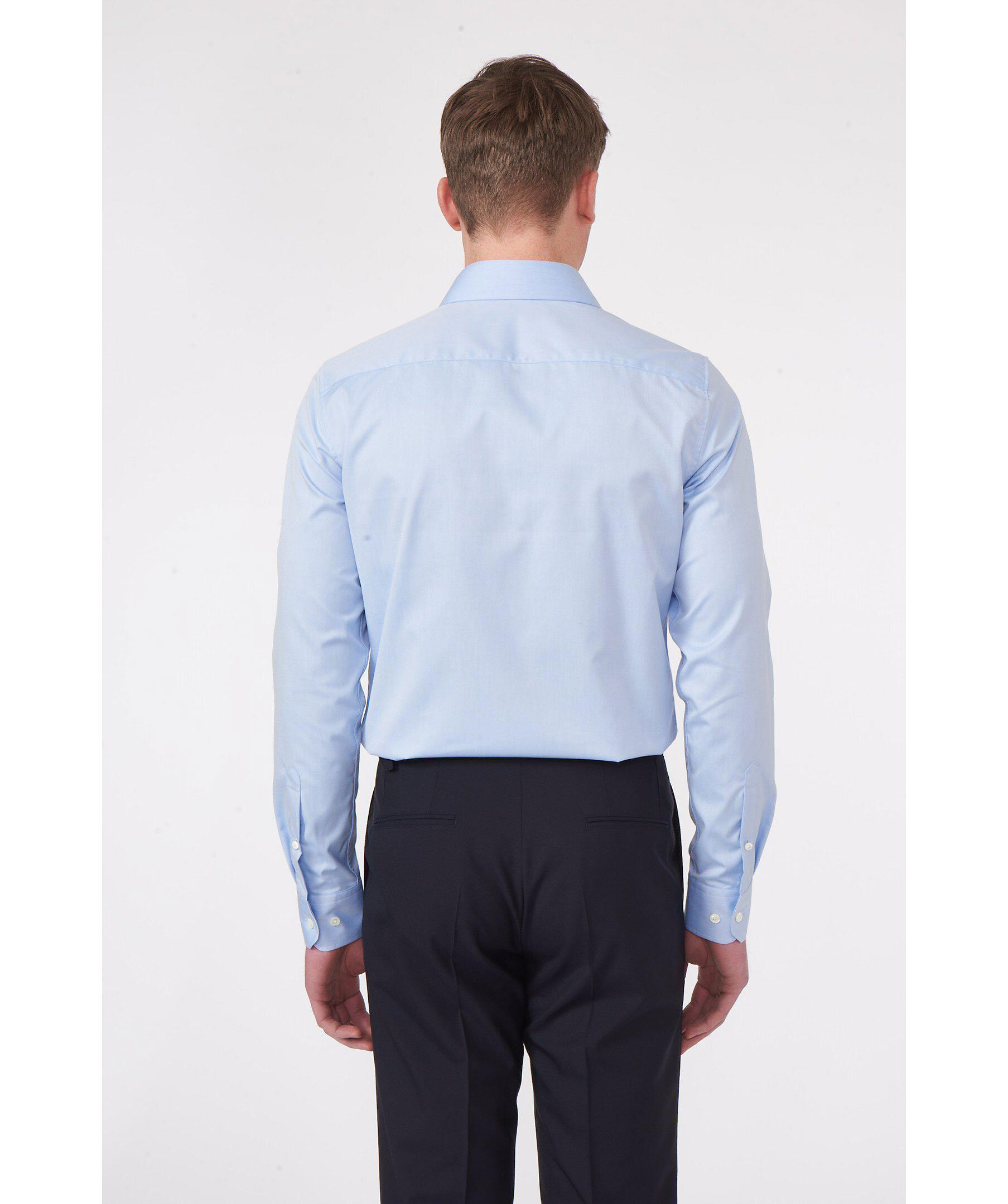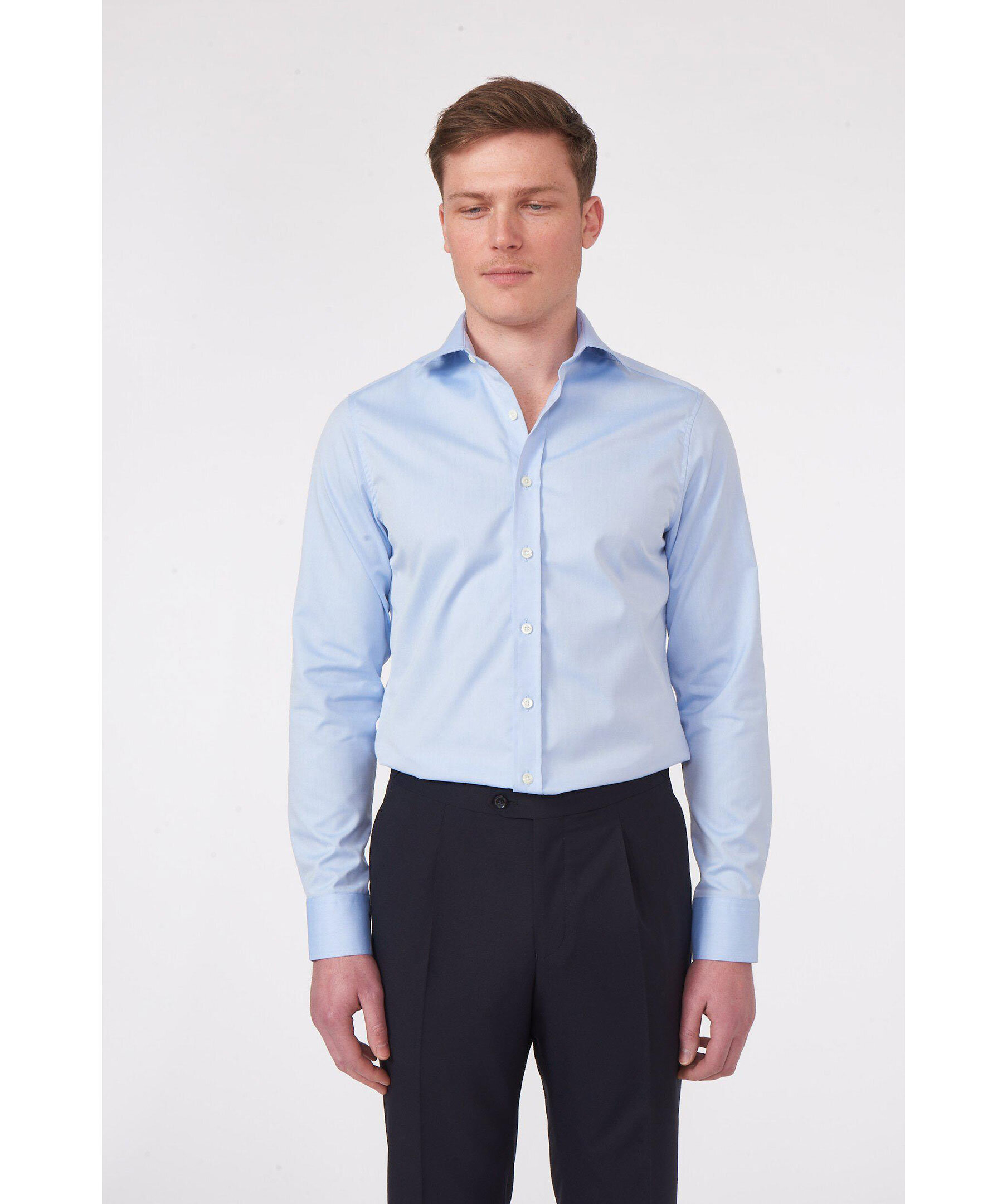 Klassisk businesskjorta i slim fit med enkel manschett tillverkad i en mjuk och skrynkeltålig bomullstwill. Den eleganta semi cut away kragen gör sig utmärkt både med och utan slips. Finns även i regular fit.