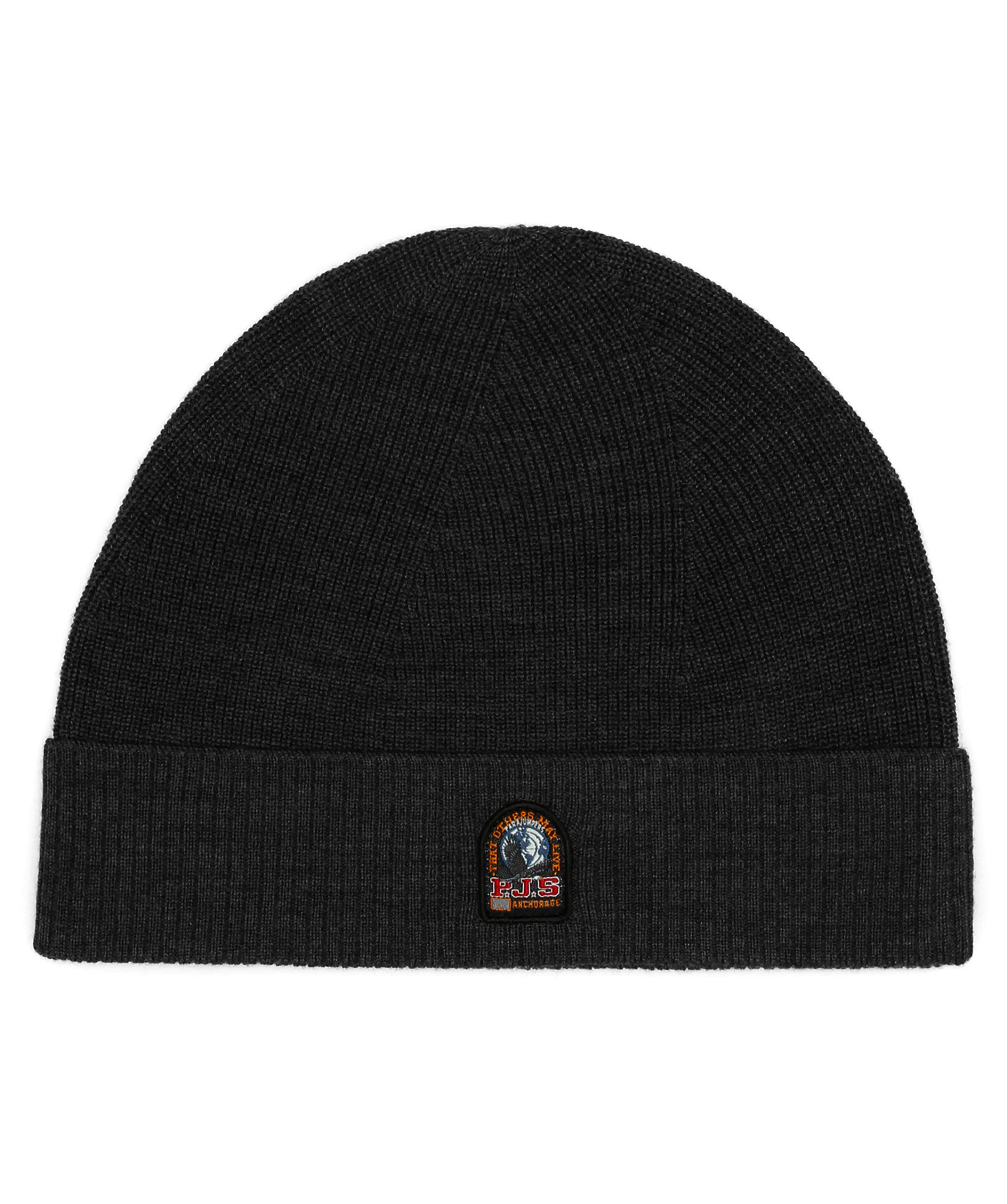 Svart stickad mössa från Parajumpers. Tillverkad i mjuk ullmix. Logotyp på mössans framsida.