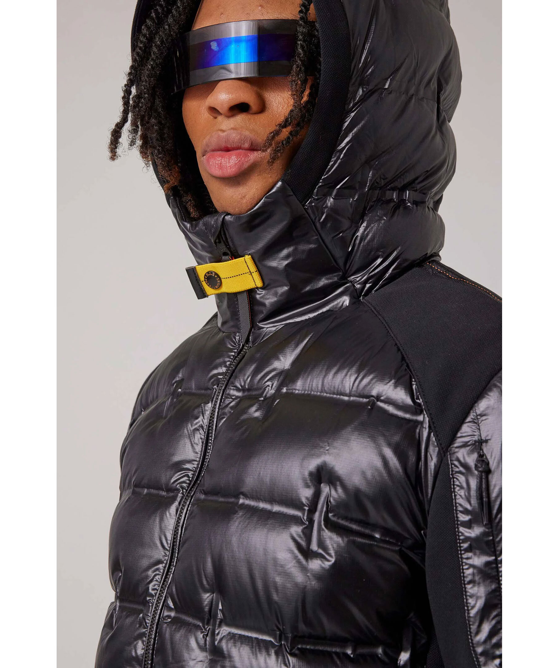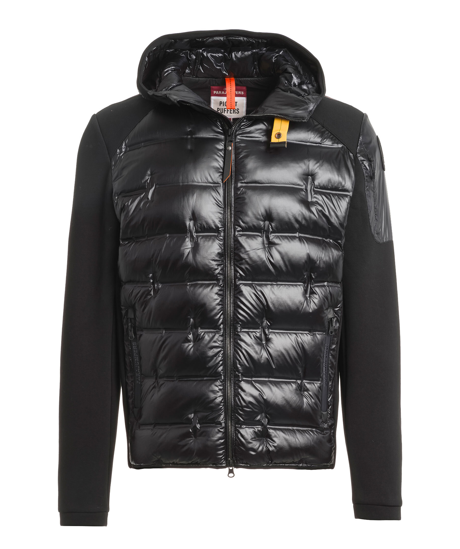 Svart hybridjacka från Parajumpers. Jackan stängs med tvåvägsdragkedja och har två sidfickor med dragkedja, en ficka med dragkedja vid axeln samt patch logotyp på vänster ärm. Jackan kombinerar en dunfylld nylon mini ripstop med en stretchig polyester-bomullspiké.