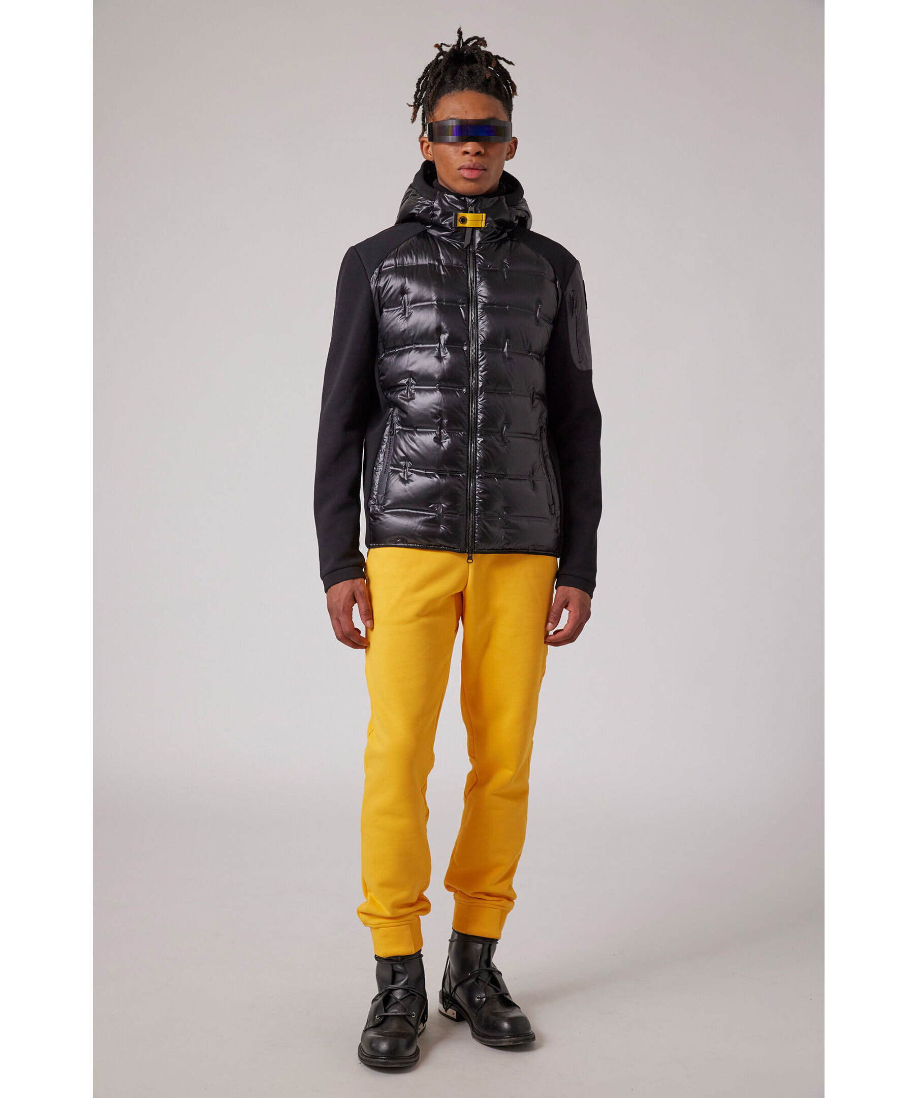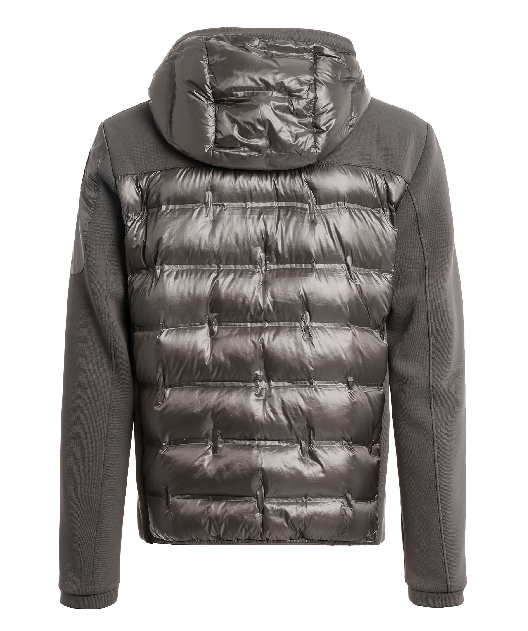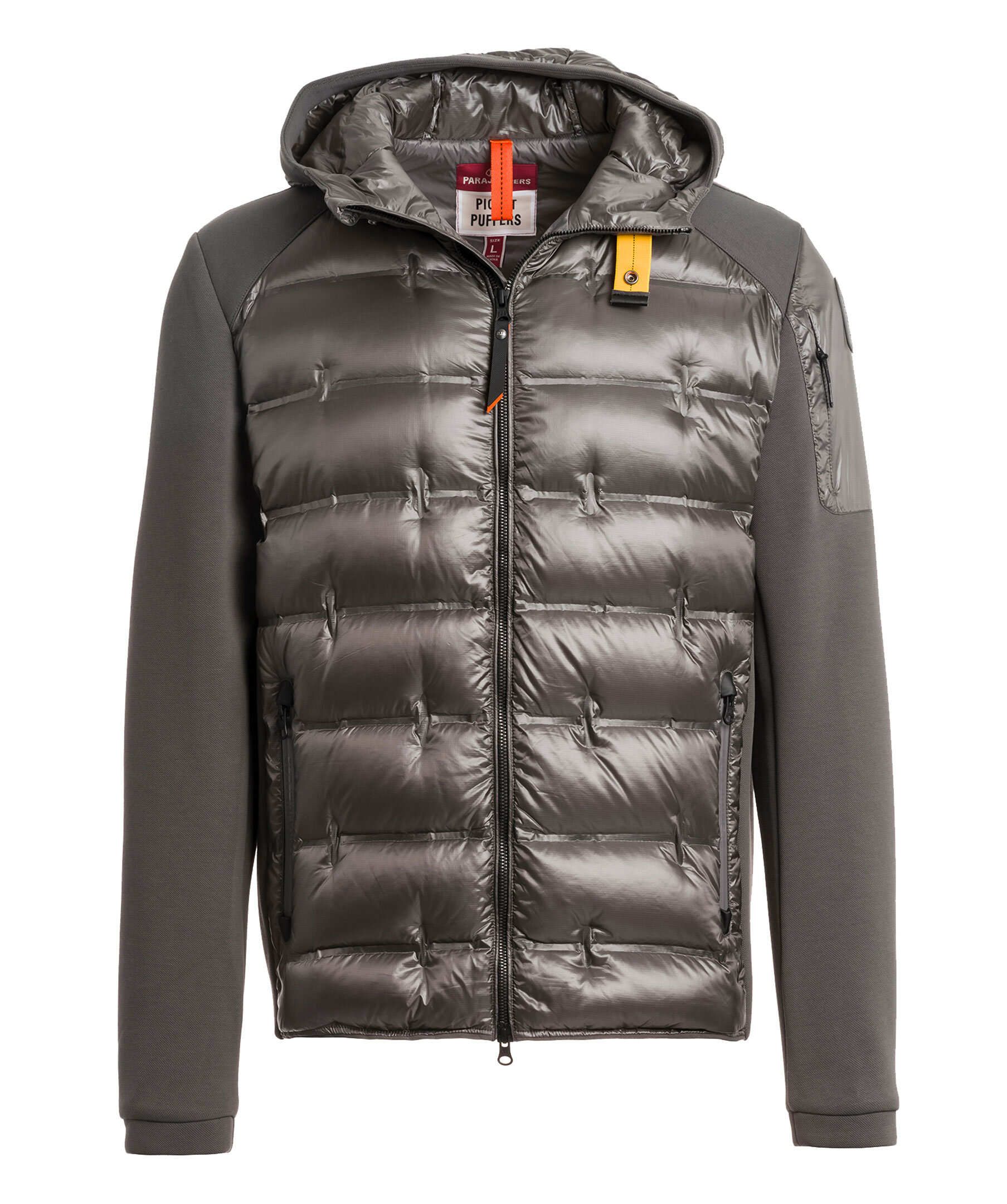 Mörkgrå hybridjacka från Parajumpers. Jackan stängs med tvåvägsdragkedja och har två sidfickor med dragkedja, en ficka med dragkedja vid axeln samt patch logotyp på vänster ärm. Jackan kombinerar en dunfylld nylon mini ripstop med en stretchig polyester-bomullspiké. ■ OBS! Modellbilderna visar endast passform