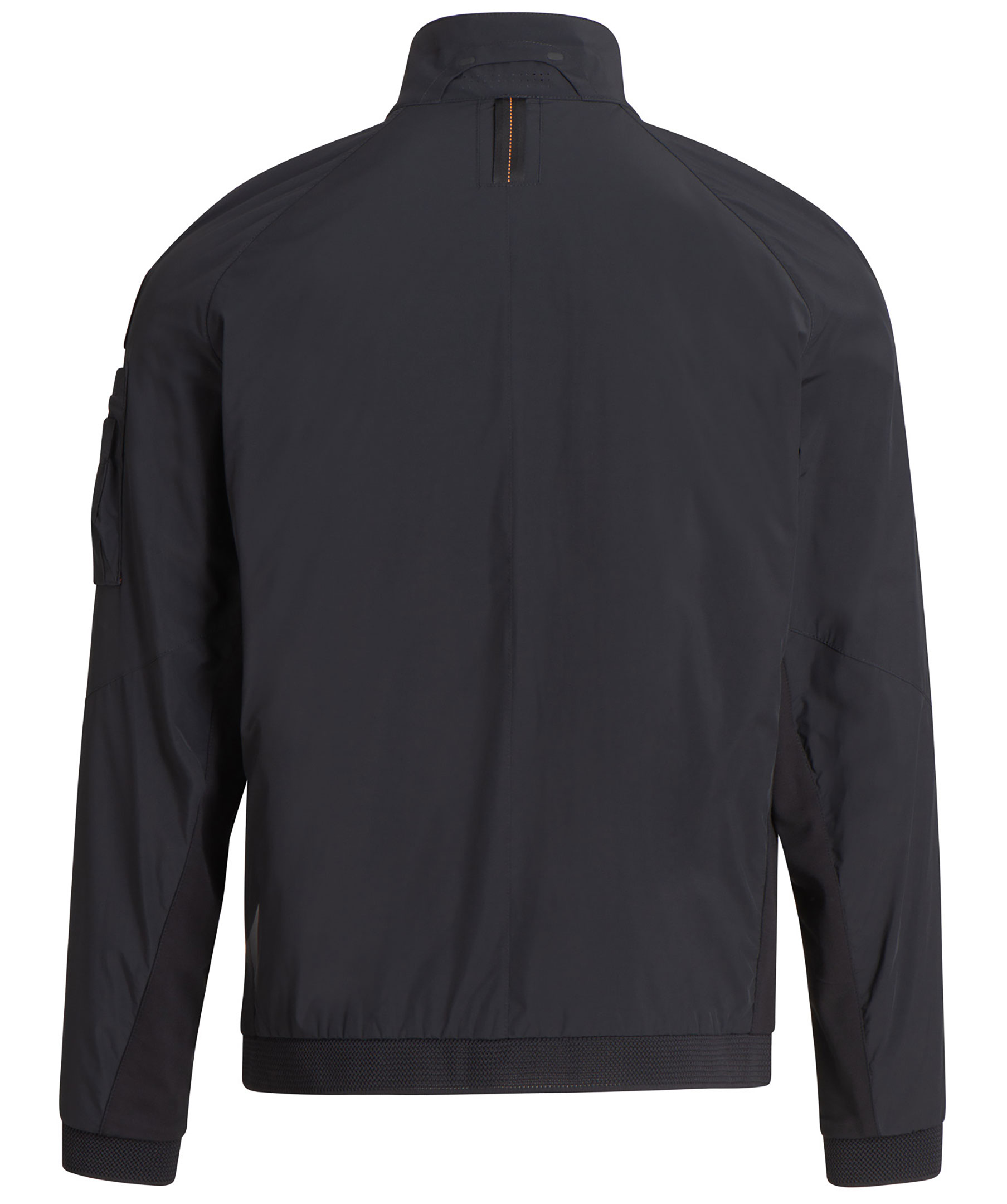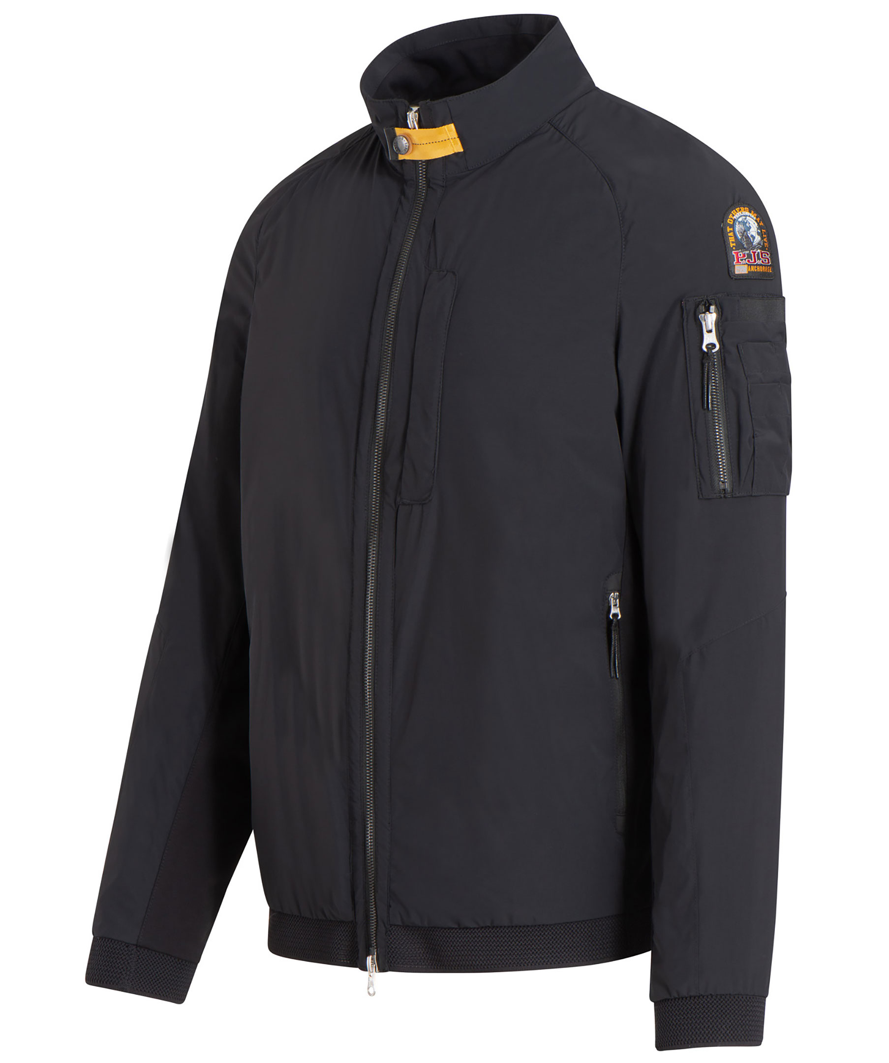 Svart lättfodrad vårjacka från Parajumpers. Tillverkad i polyamid och elastan med en lätt fyllning av polyester. Två fickor fram, en bröstficka med dragkedja, logotyp och ficka på vänster ärm, ikoniskt gult spänne i kragen.
