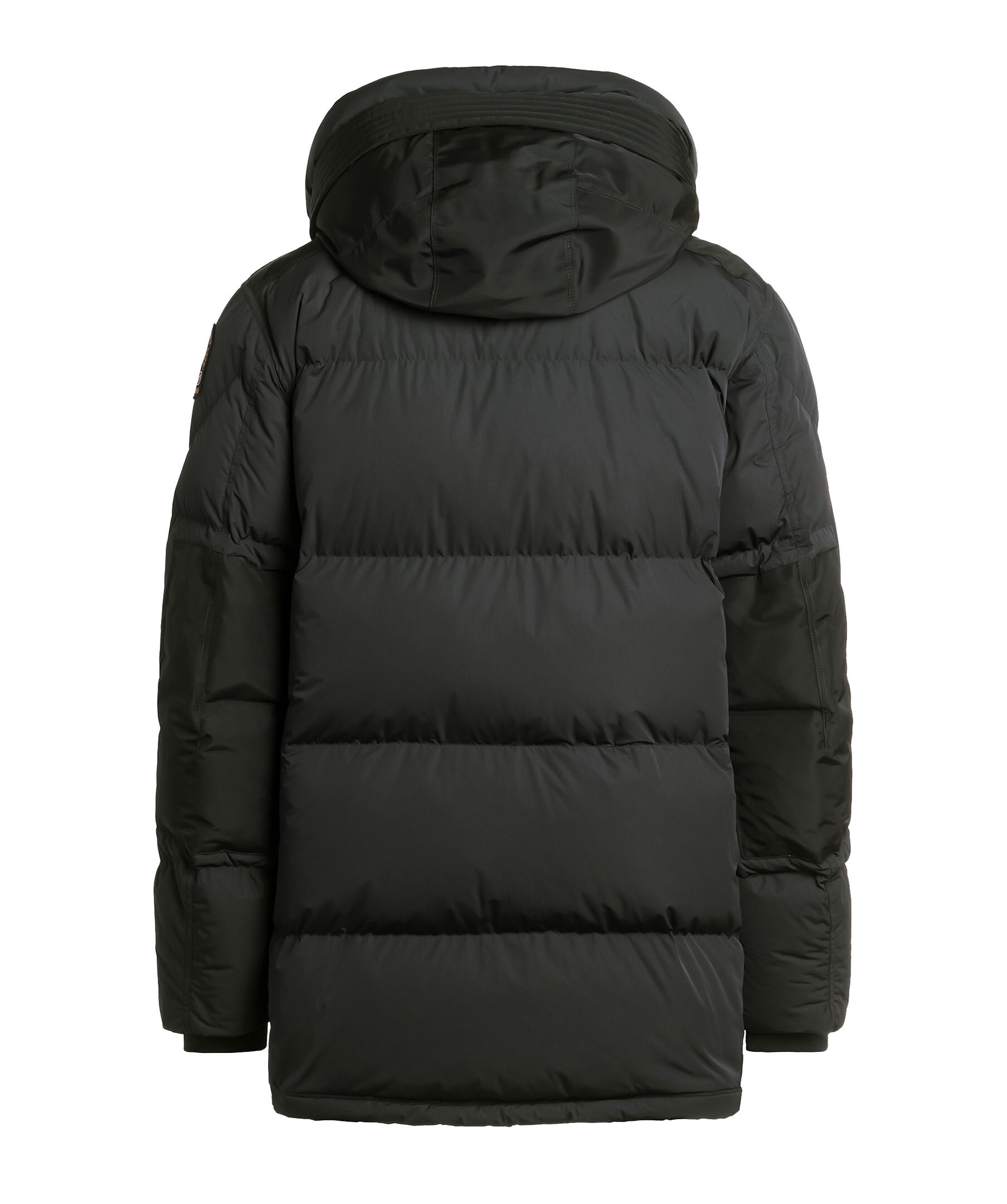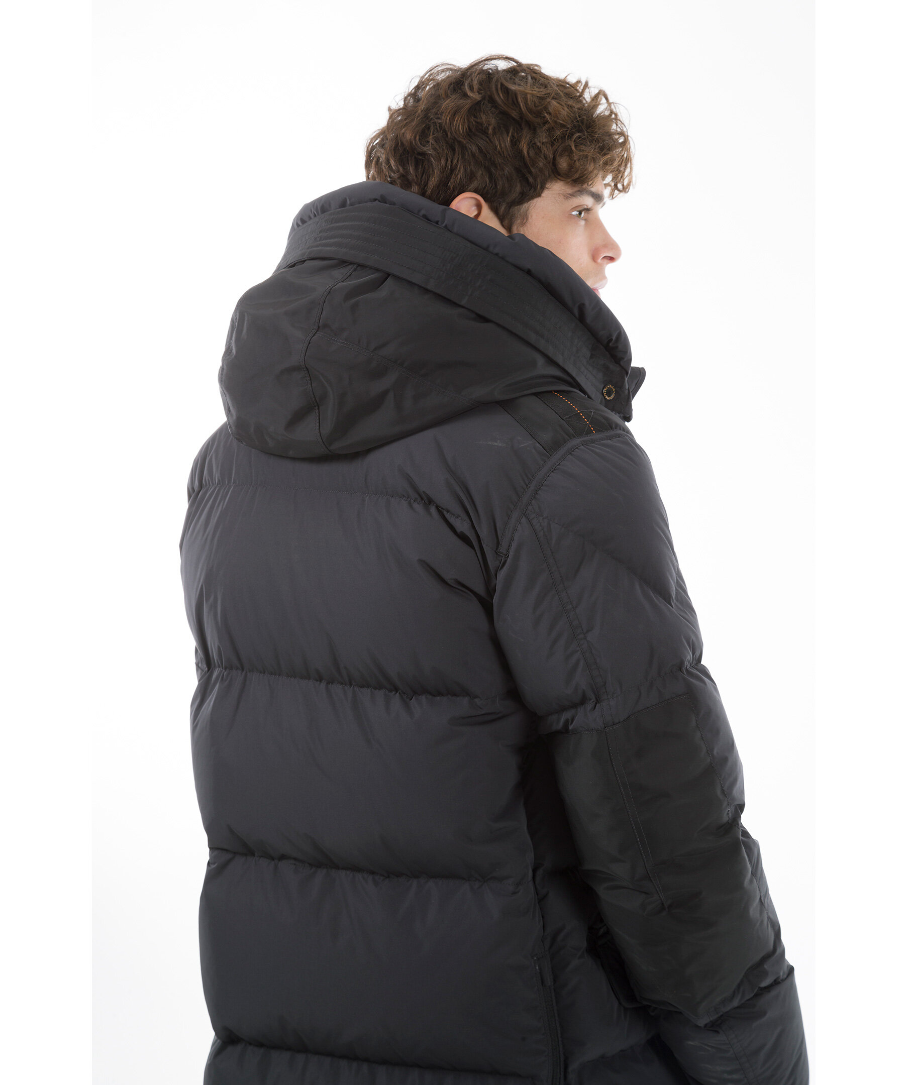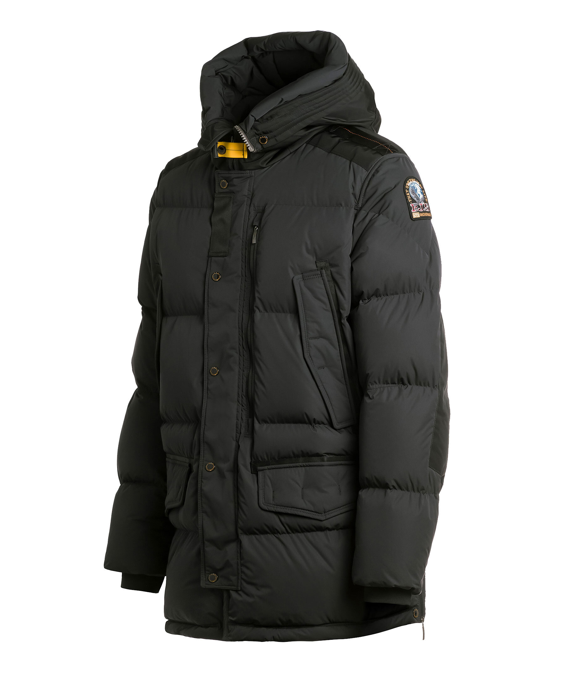 Svart jacka med huva från Parajumpers. Den är så mjuk och varm och ger dig täckeskänsla hela dagen lång. Harraseeket är en vadderad jacka med en oversize passform och en urban kant. Två bröstfickor med knapp samt en bröstficka med dragkedja. Två fickor nedtill på jackan som stängs med knapp. Kort dragkedja på sidan av jackan. Jackan stängs med tvåvägsdragkedja. Tillverkad i polyester och polyamide.