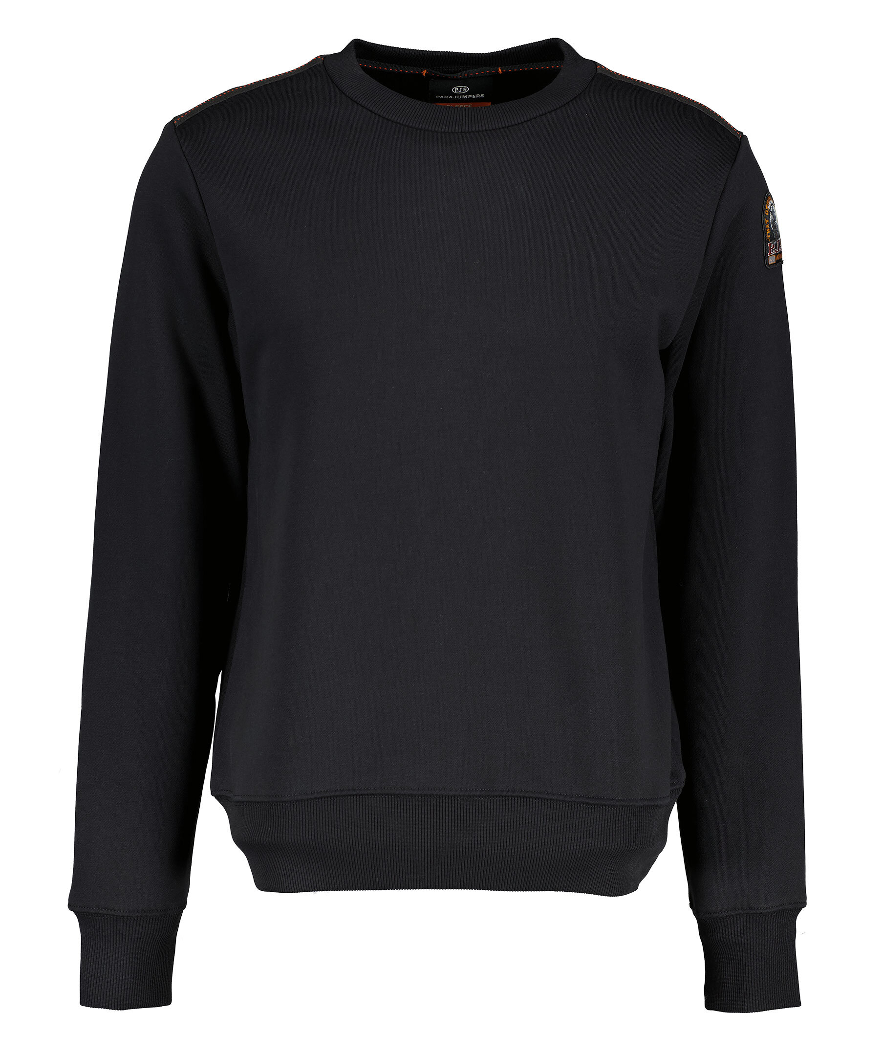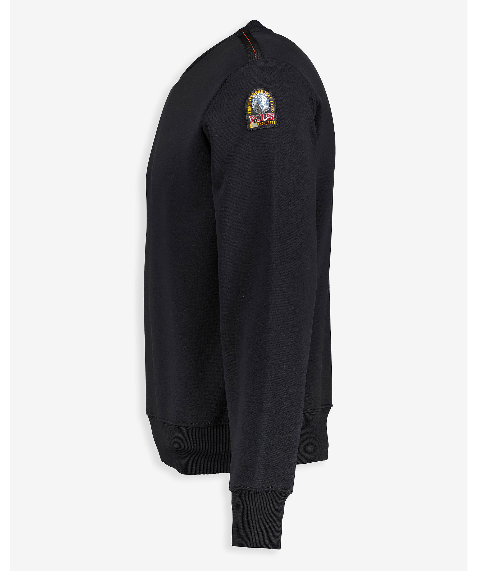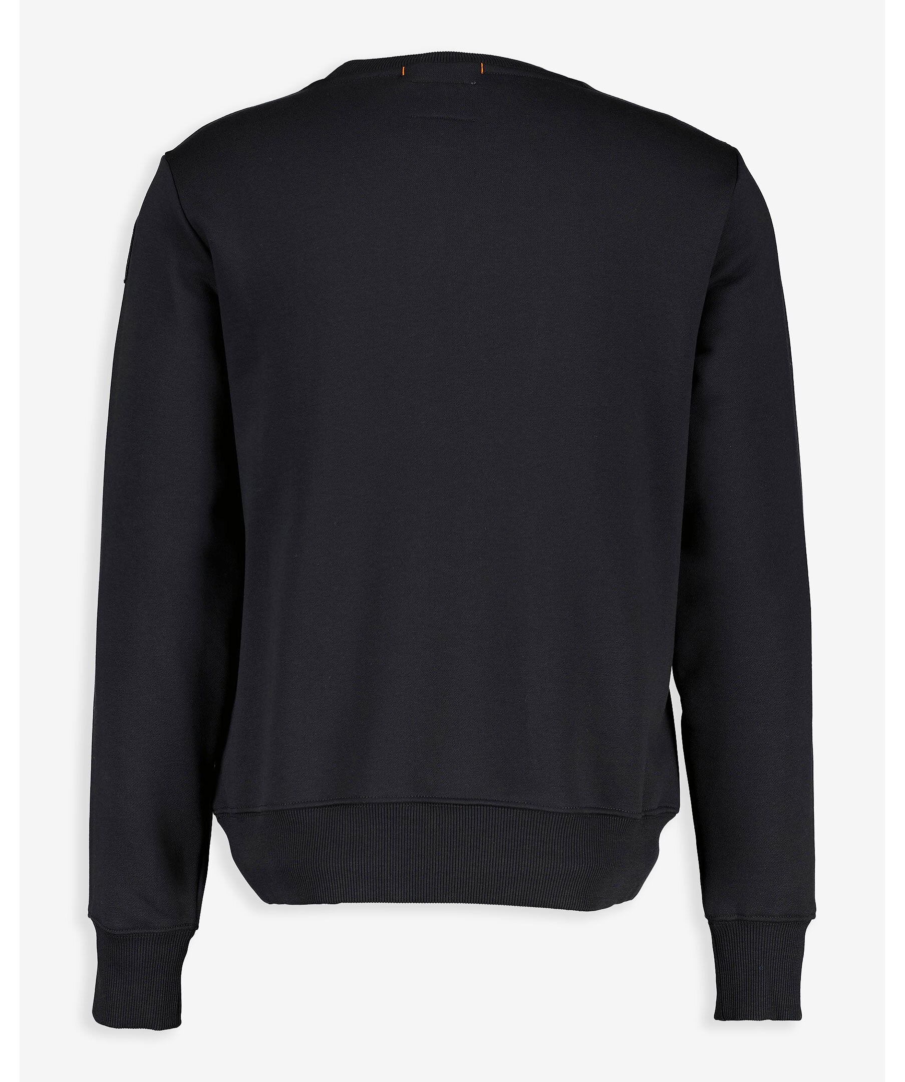Svart sweatshirt från Parajumpers. K2, din följeslagare genom mittsäsongsäventyr. En skön bomullsfleece. Orange sömdetaljer på axlarna samt en patch logotyp på vänster ärm. Ribbstickad halsringning samt muddar vid ärm- och plaggslut. Tillverkad av en bomullsblandning.