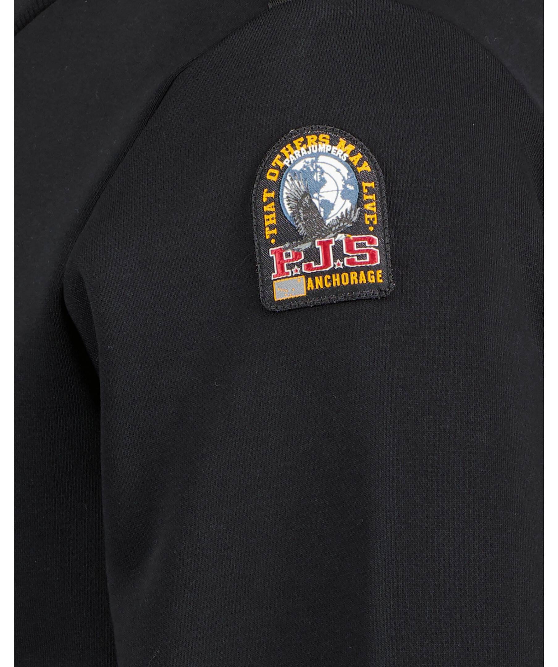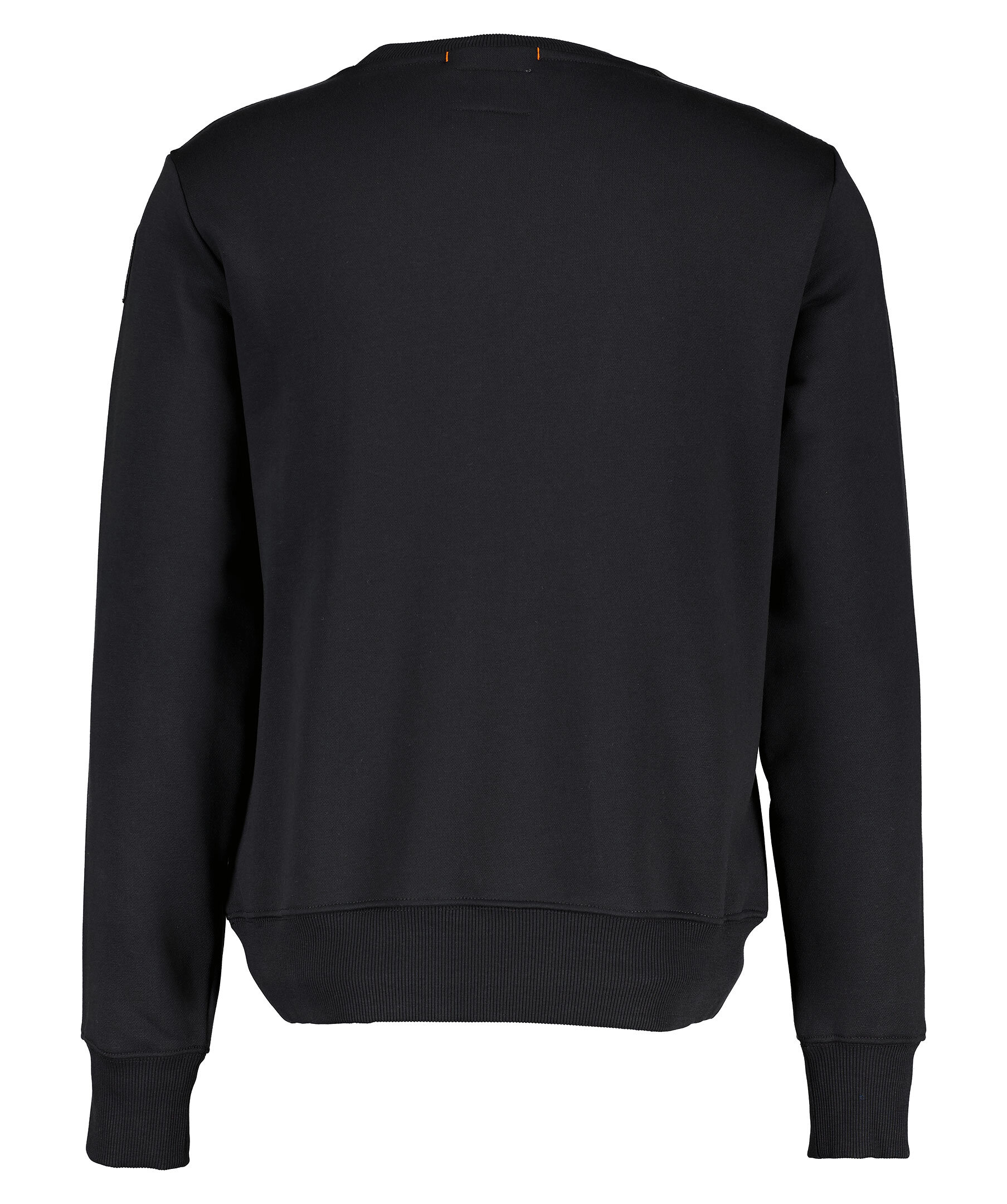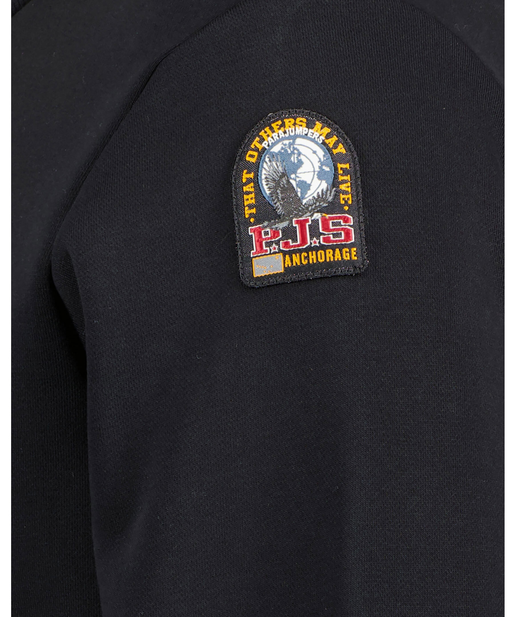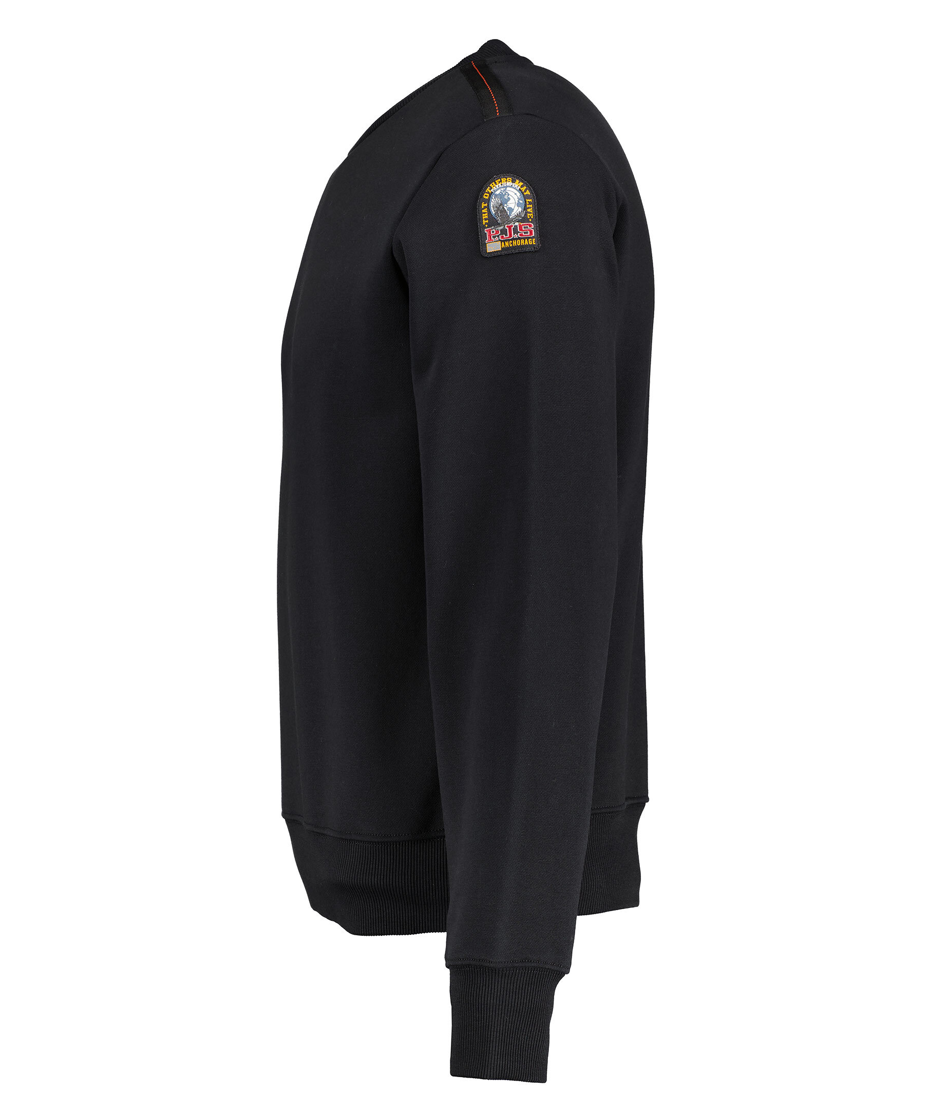 Svart sweatshirt från Parajumpers. K2, din följeslagare genom mittsäsongsäventyr. En skön bomullsfleece. Orange sömdetaljer på axlarna samt en patch logotyp på vänster ärm. Ribbstickad halsringning samt muddar vid ärm- och plaggslut. Tillverkad av en bomullsblandning.