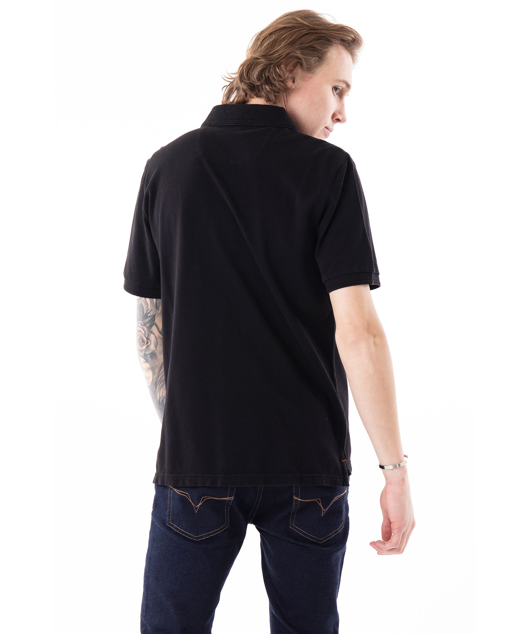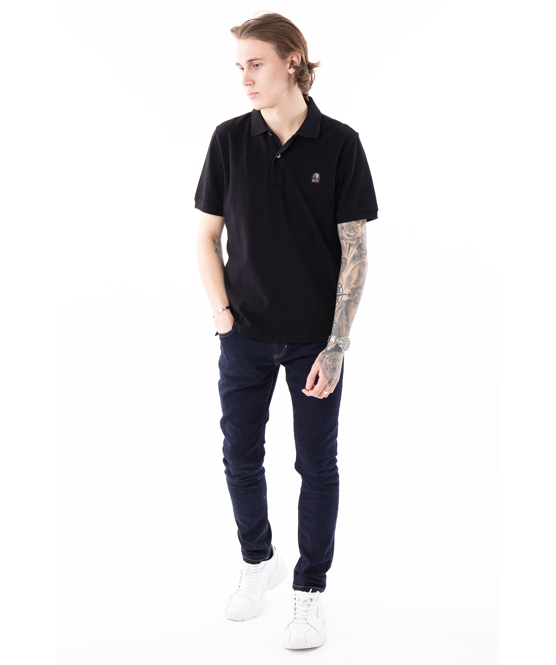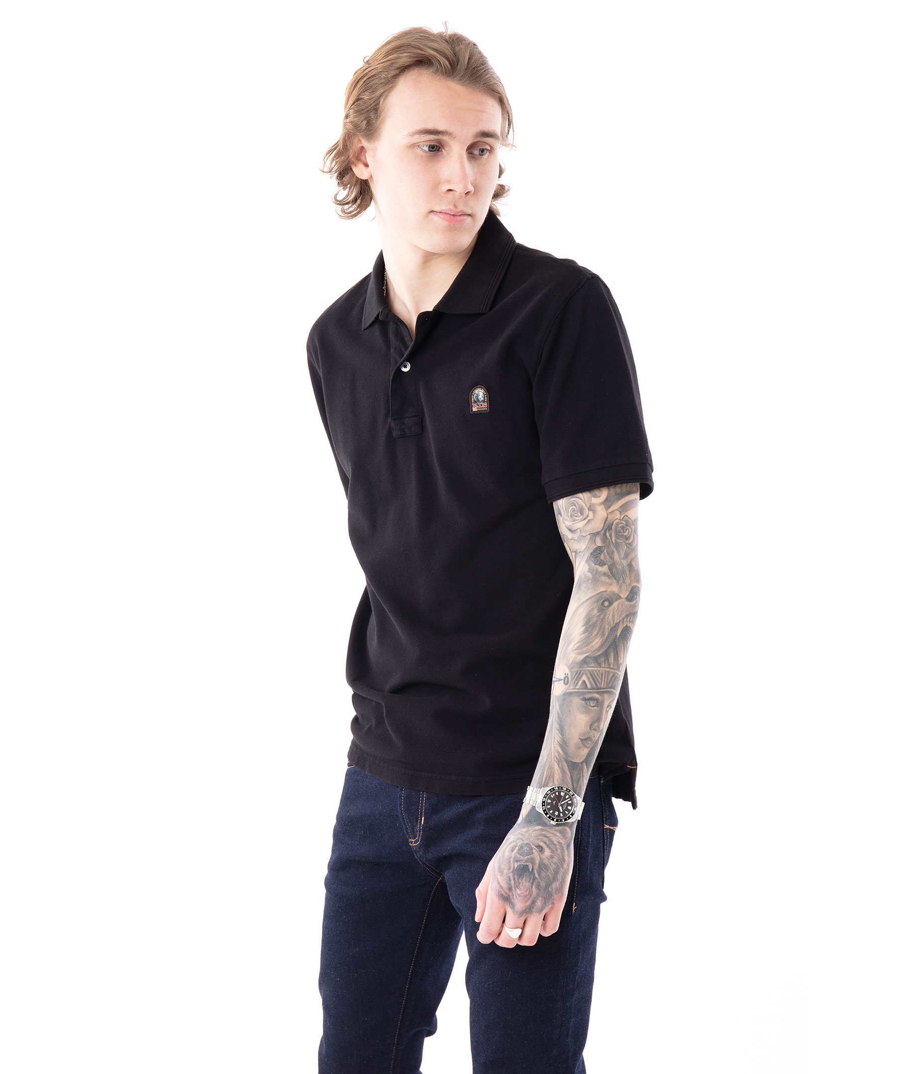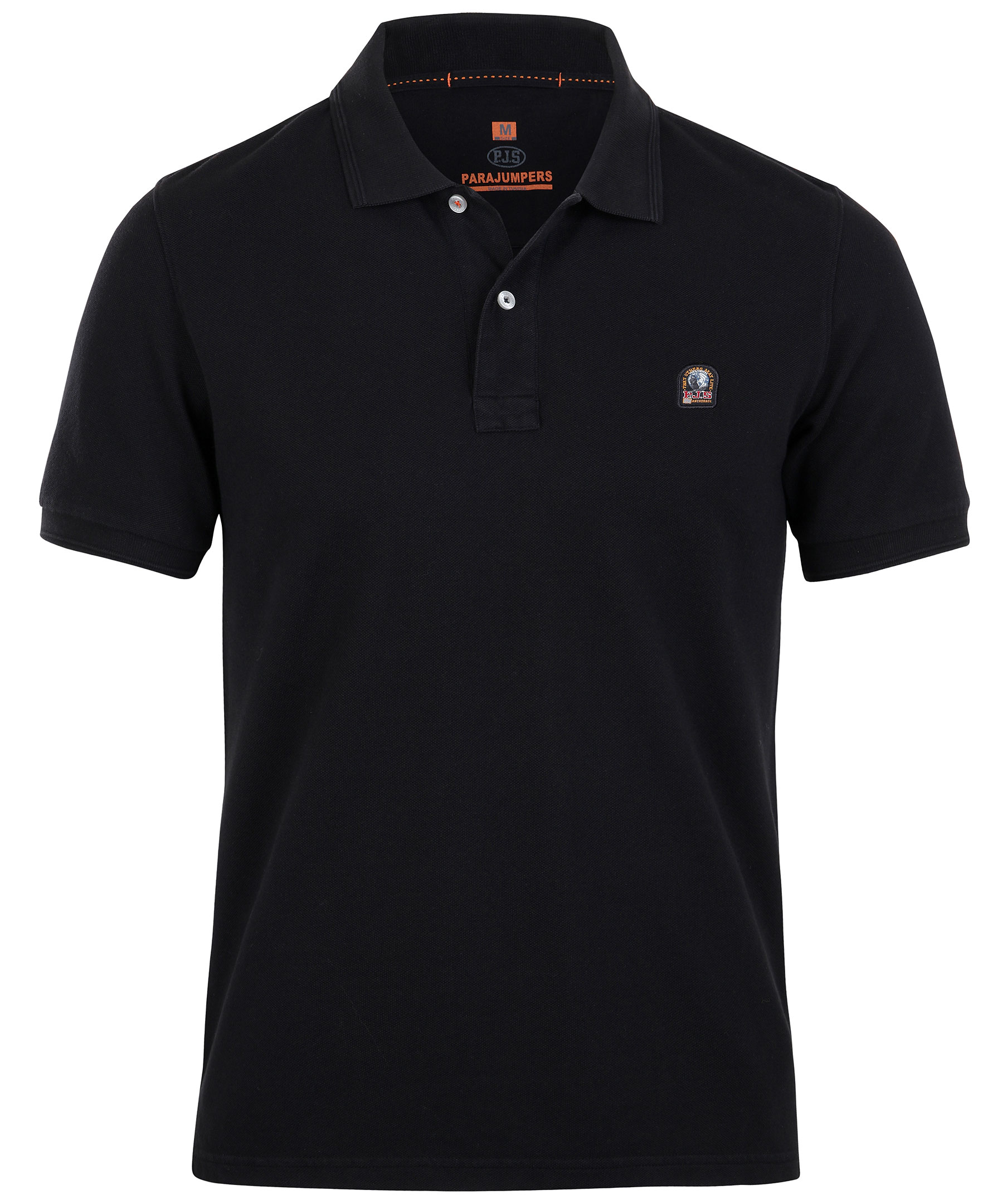 Svart pikétröja från Parajumpers. Tillverkad i 100% bomull. Två ljusa knappar och applicerad liten patchpå sidan av bröstet. Modellen är 180 cm lång och bär storlek M.