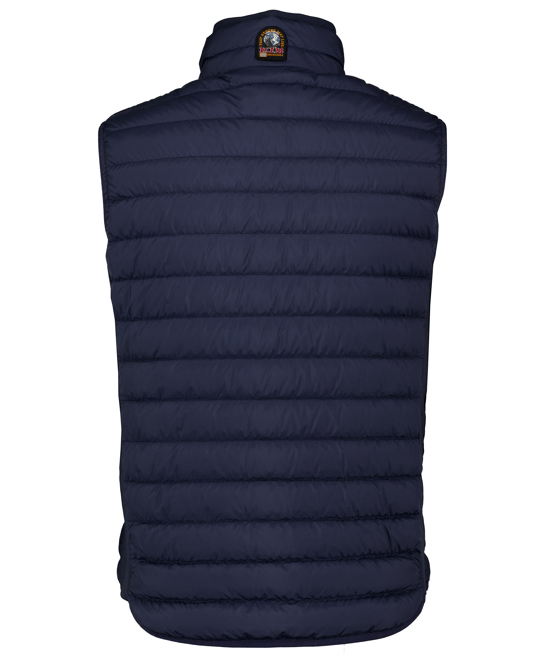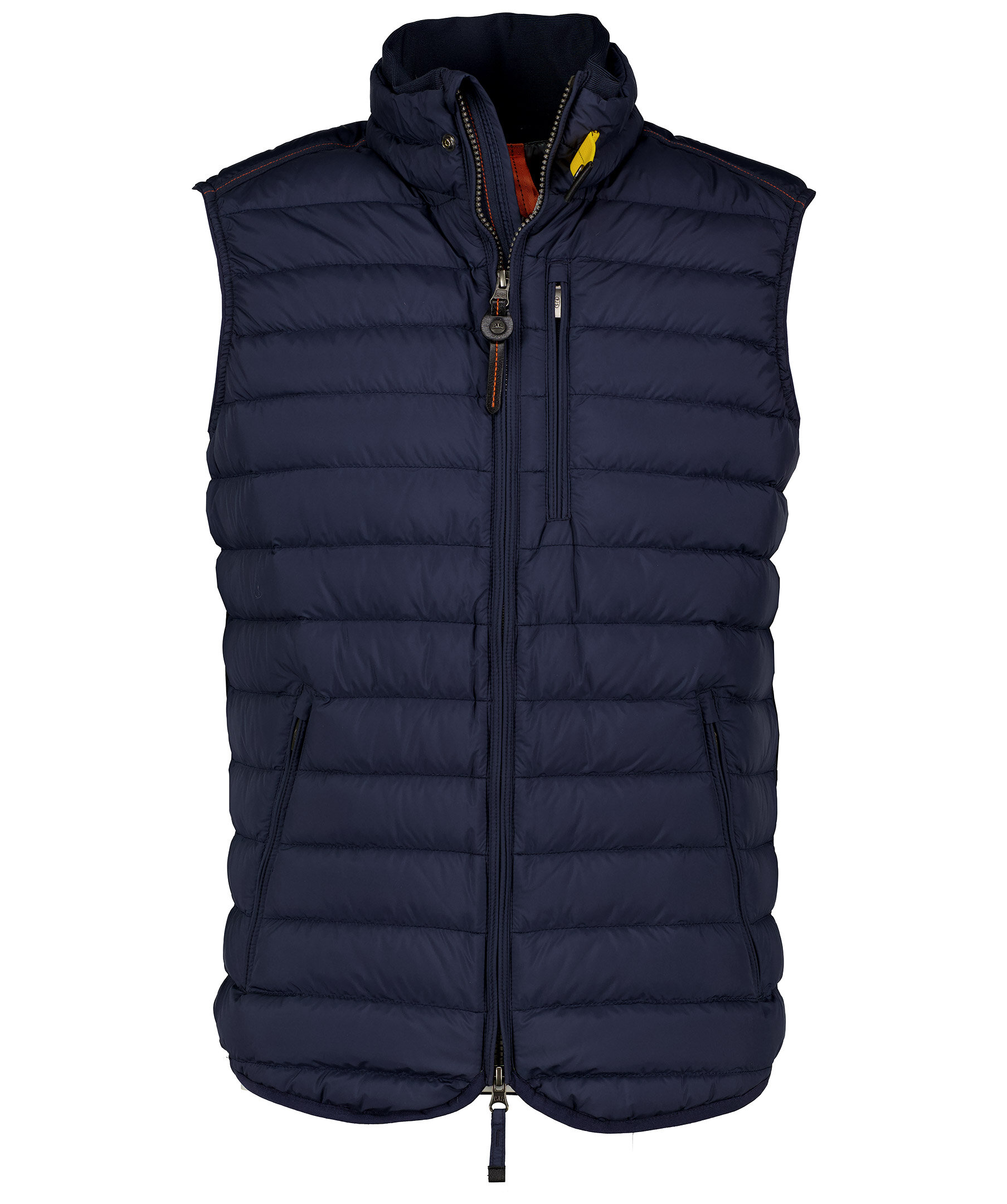Marinblå, lättviktsdunväst från Parajumpers. Ribbstickad resår på vardera sida och logotyp i nacke. Tvåvägsdragkedja. Passar perfekt till höst och vår, både på landet och i city.