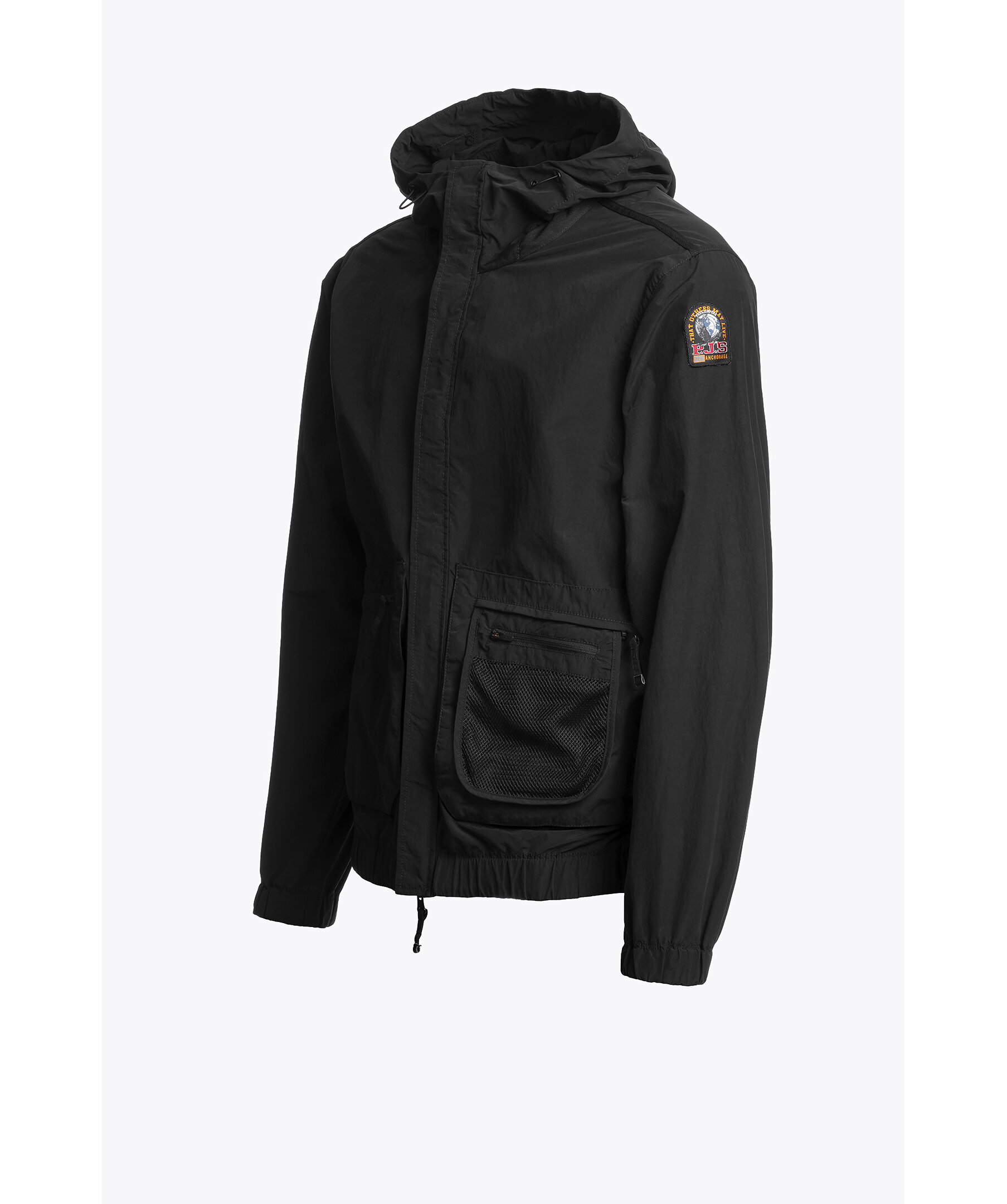 Svart jacka från Parajumpers i återvunnen nylon och BCI-certifierad bomullspoplin. Jackan har justerbar huva, tvåvägsdragkedja, fem framfickor, elastisk nederkant och ärmslut samt ventilation baktill för extra funktion. En avslappnad och stilren jacka, perfekt för en effortless vardagslook.