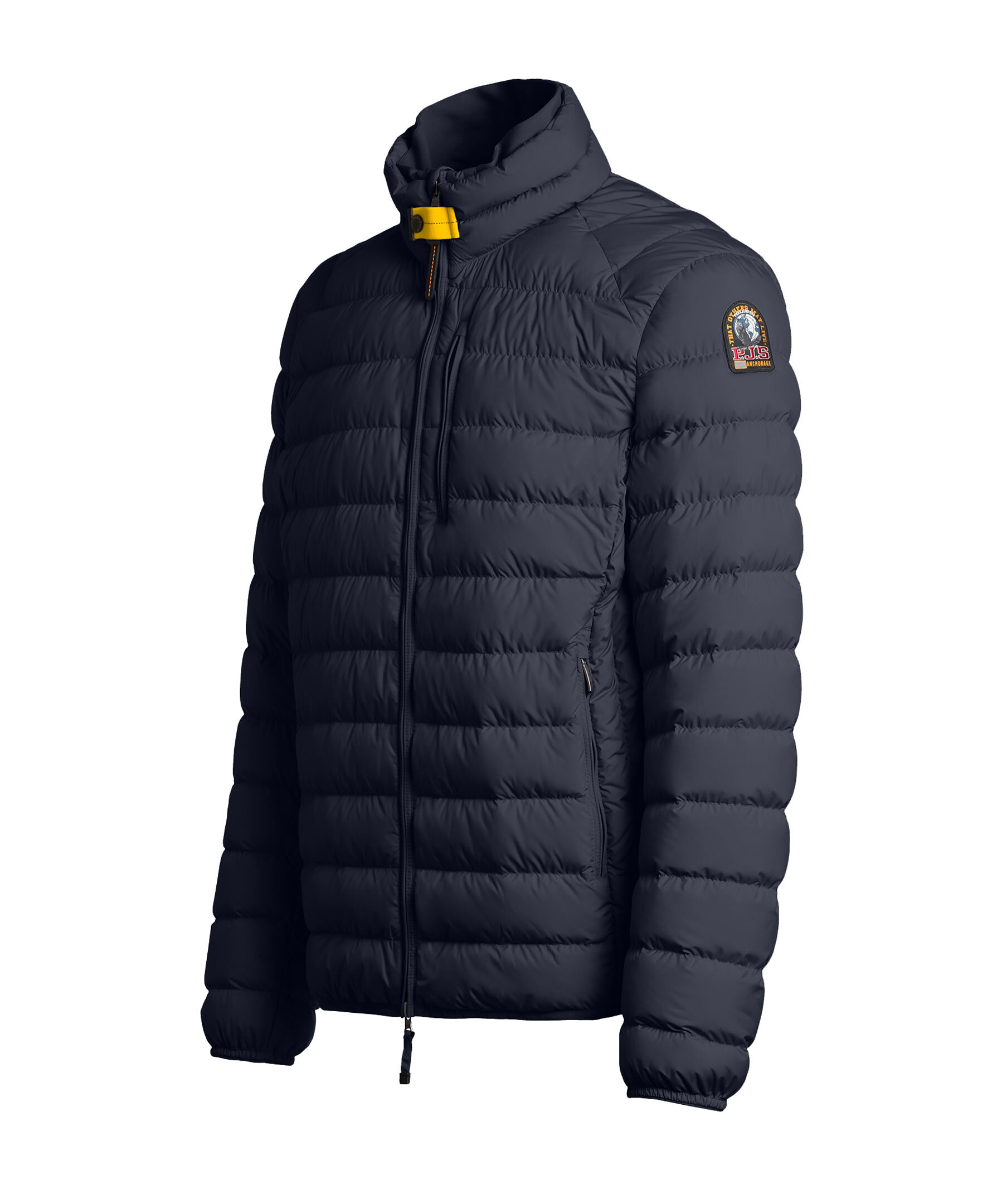 Mörkblå guiltad dunjacka från Parajumpers. Stängs framtill med tvåvägsdragkedja. Patch med logotyp på vänster ärm. Smal elastisk resår vid ärm- och plaggslut. Ribbstickad mudd vid kragen. Två fickor framtill som stängs med dragkedja och en bröstficka på vänster sida som stängs med dragkedja.