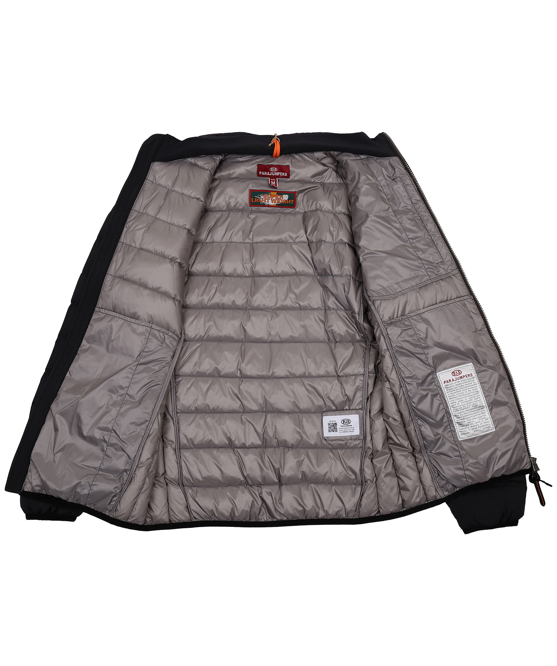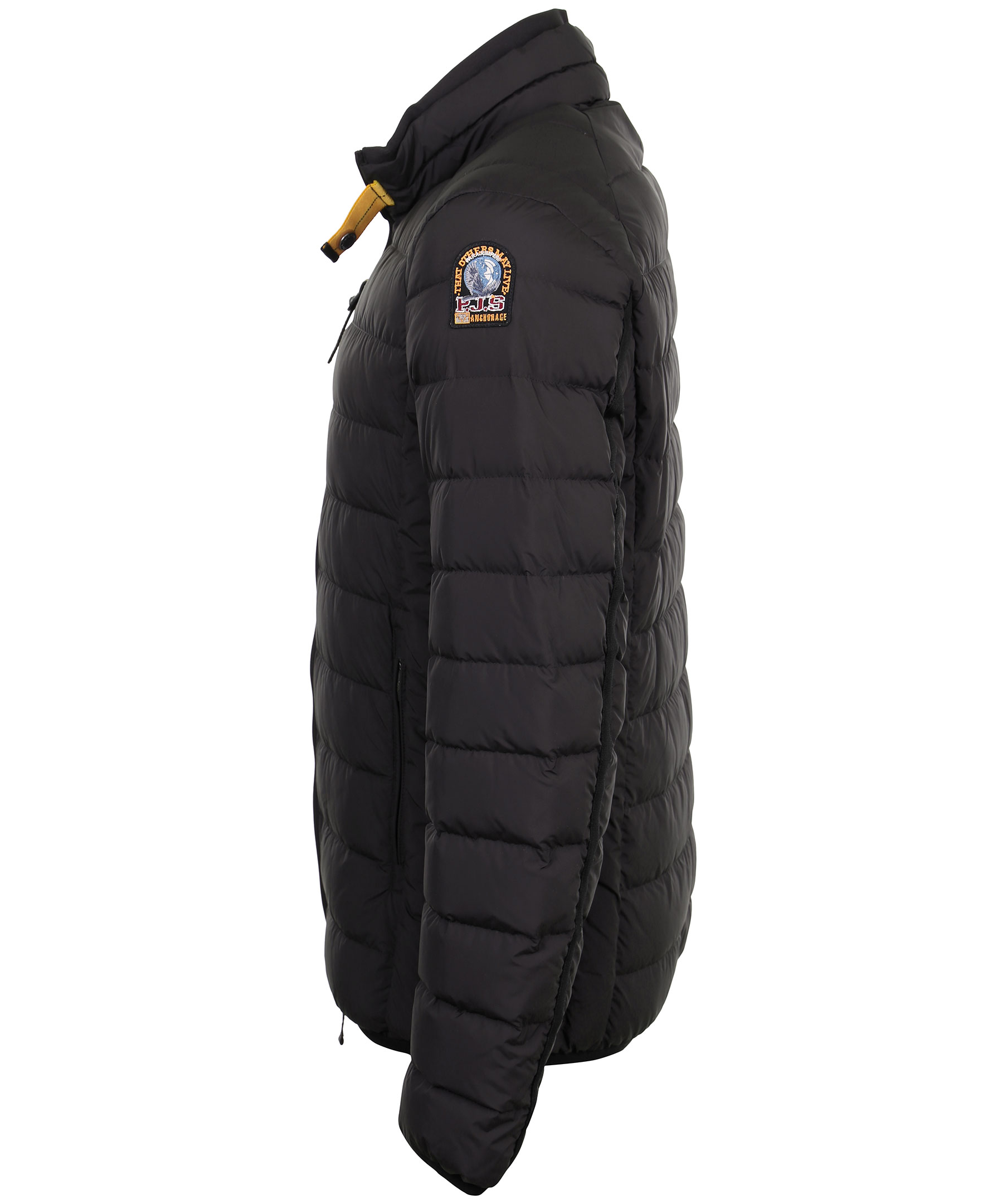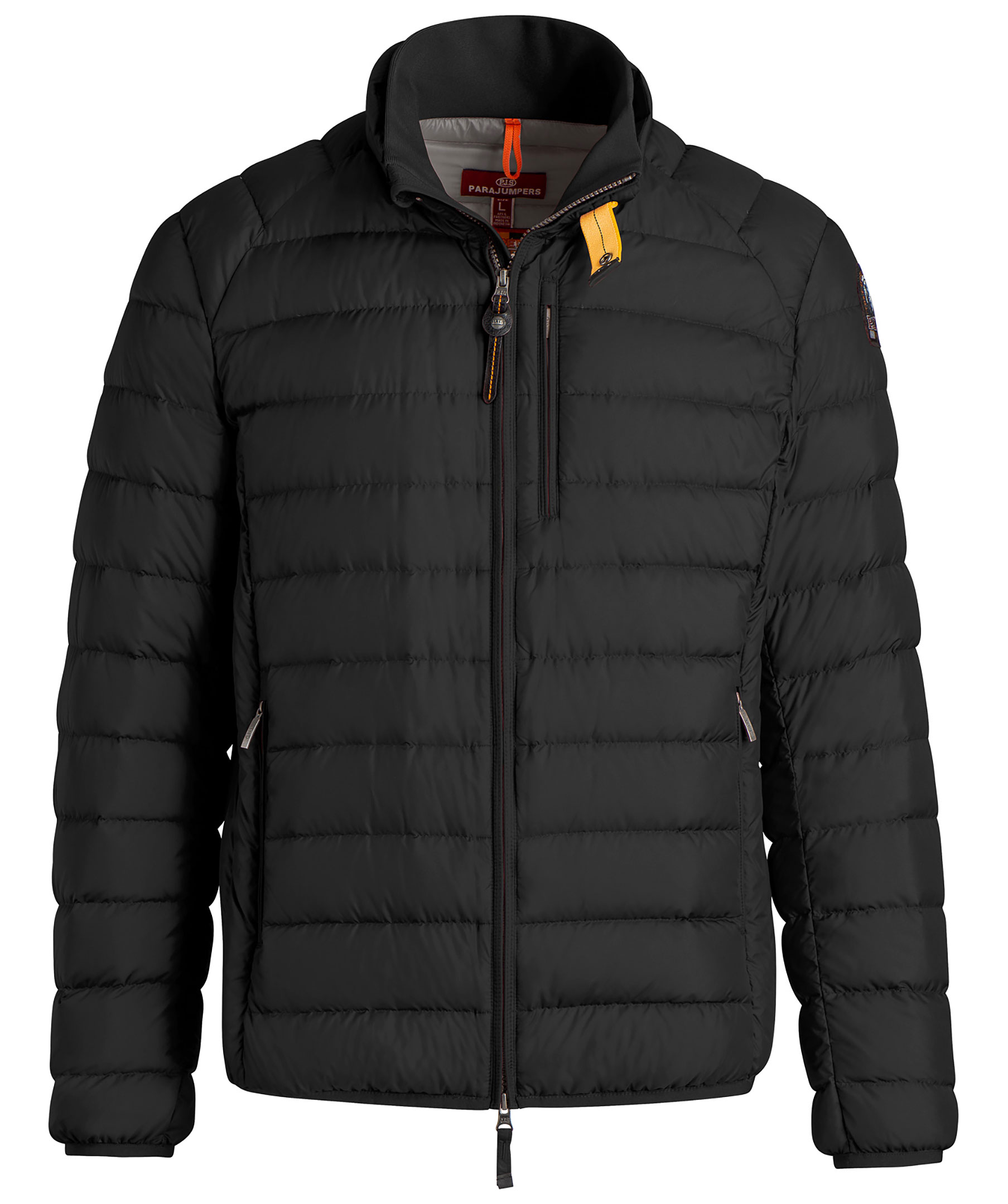 Lättviktsdunjacka från Parajumpers i en svart färg. Kort modell med hög krage. Två fickor nedtill och en ficka upptill. Stängs med dragkedja både fickorna och själva jackan. Broderad logotyp på vänstra ärmens axel.