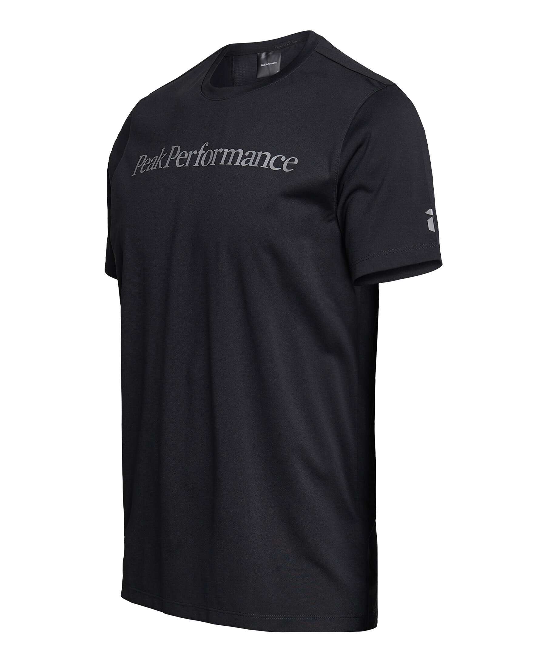 Svart träningströja i t-shirtmodell från Peak Performance. Mörkgrå logotyp printat på bröstet samt rundad halsringning. Tillverkad i 100% polyester och har en rand på ryggen med tunnare tyg.