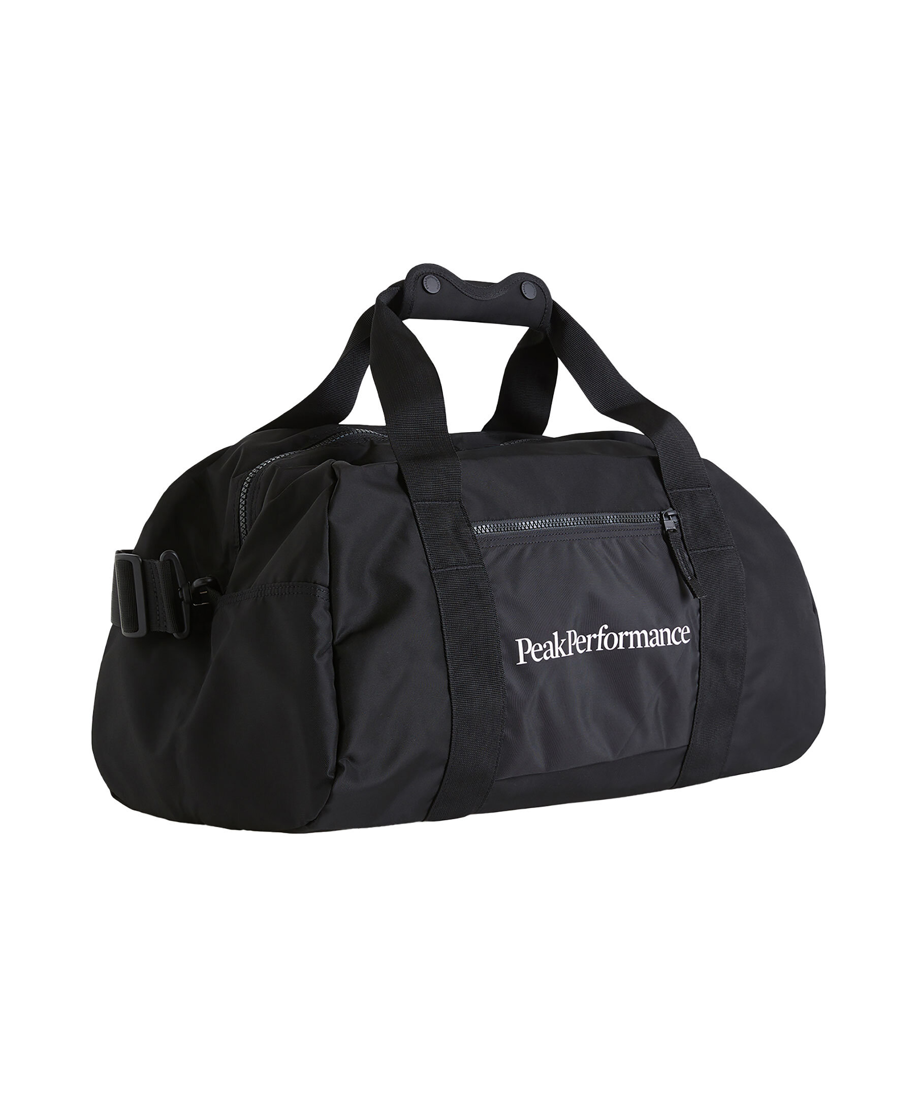 Svart väska från Peak Performance. Den här vattenavvisande väskan är lätt men slitstark och har ett stilrent utseende. Perfekt storlek för din träningsutrustning eller en weekendresa. Ett yttre fack med dragkedja och två inre öppna fack håller dina tillhörigheter organiserade och på plats. Rymmer 35L.