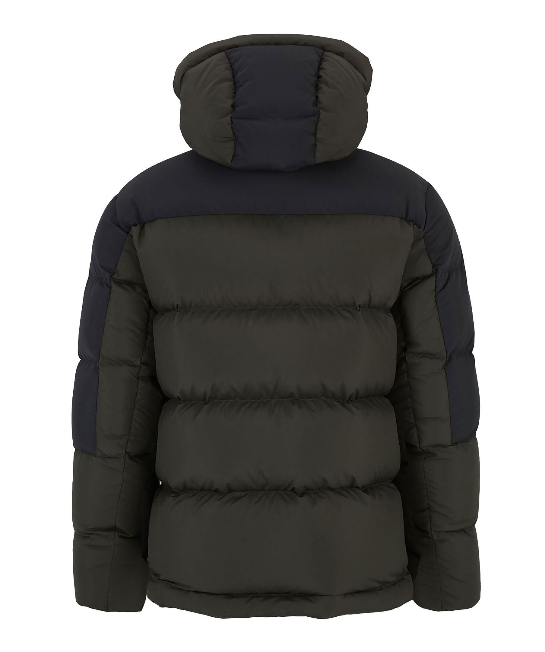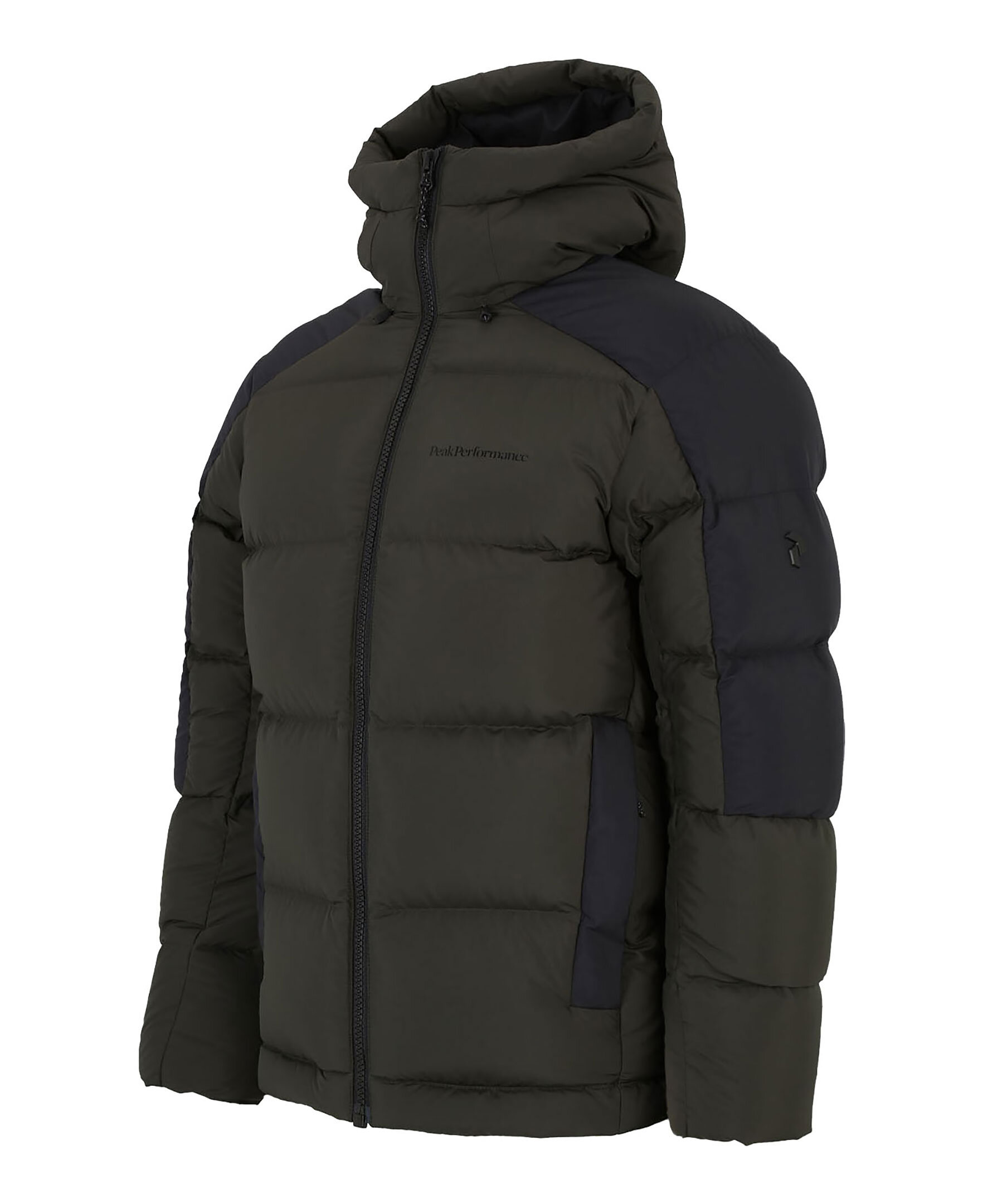 Grön pufferjacka med svarta detaljer från Peak Performance. Jackan stängs med dragkedja framtill och har huva, två sidfickor med dragkedja, dragsko i nederkant och logotyp på bröstet samt på vänster ärm. Tillverkad i polyester med dunfyllning.