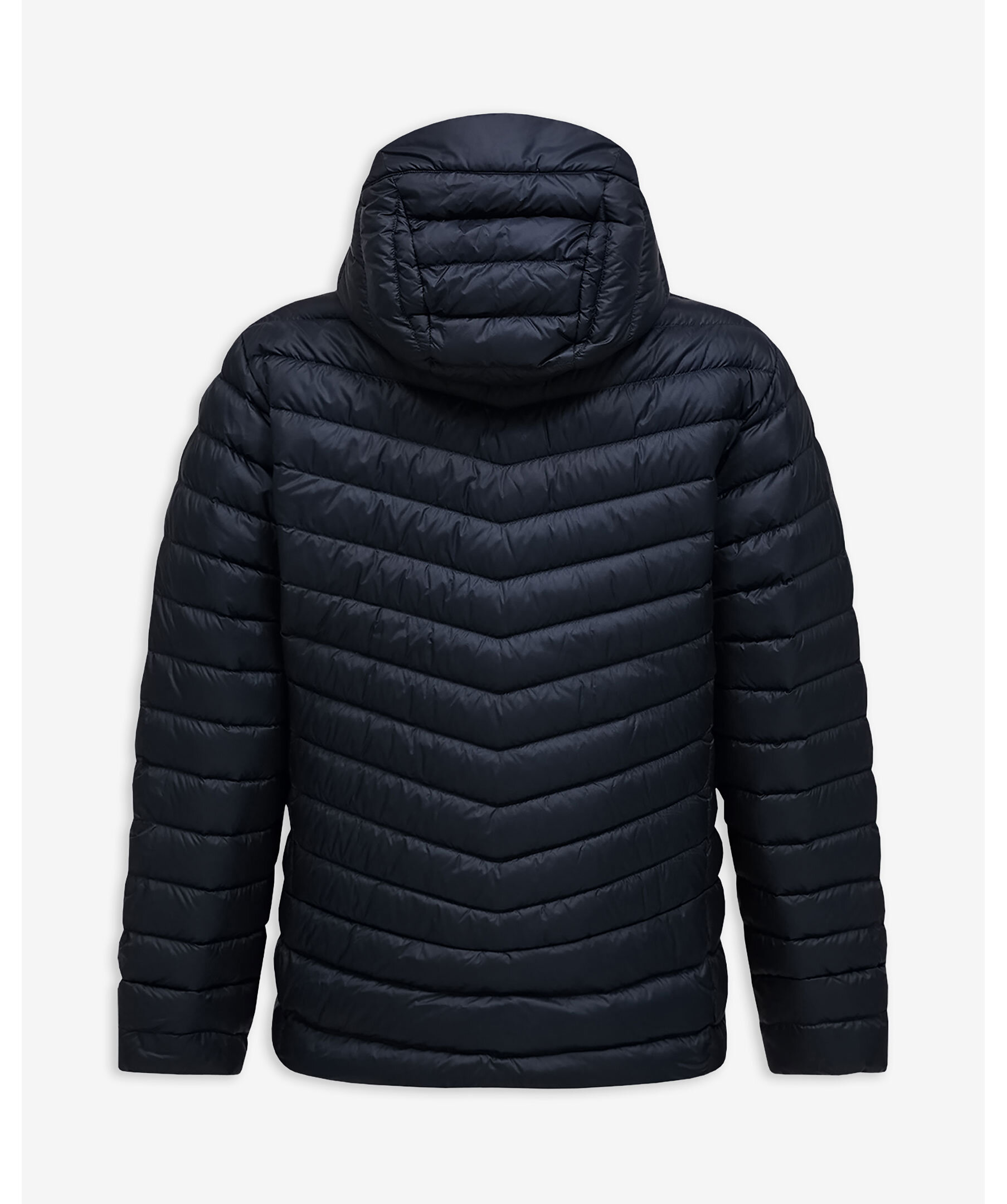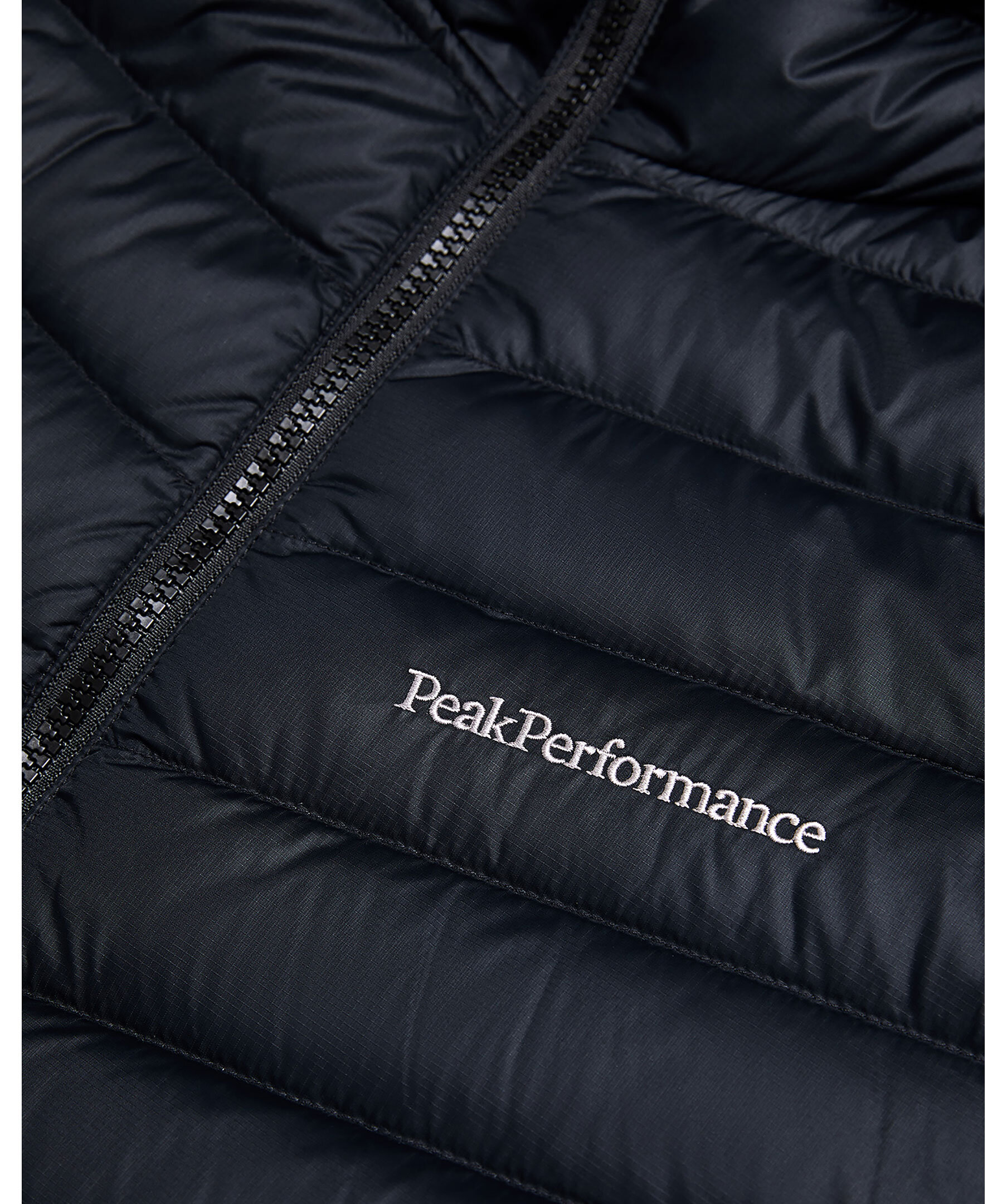Svart, lätt och packbar dunjacka från Peak Performance. Jackan stängs med dragkedja och har elastiska ärmslut, fickor med dragkedja och en tättslutande huva som ger maximalt skydd. Broderad logotyp på bröstet samt vänster ärm. Tillverkad av lätt polyamid och fylld med 90/10-ankdun/fjädrar av hög kvalitet för exceptionell värme.