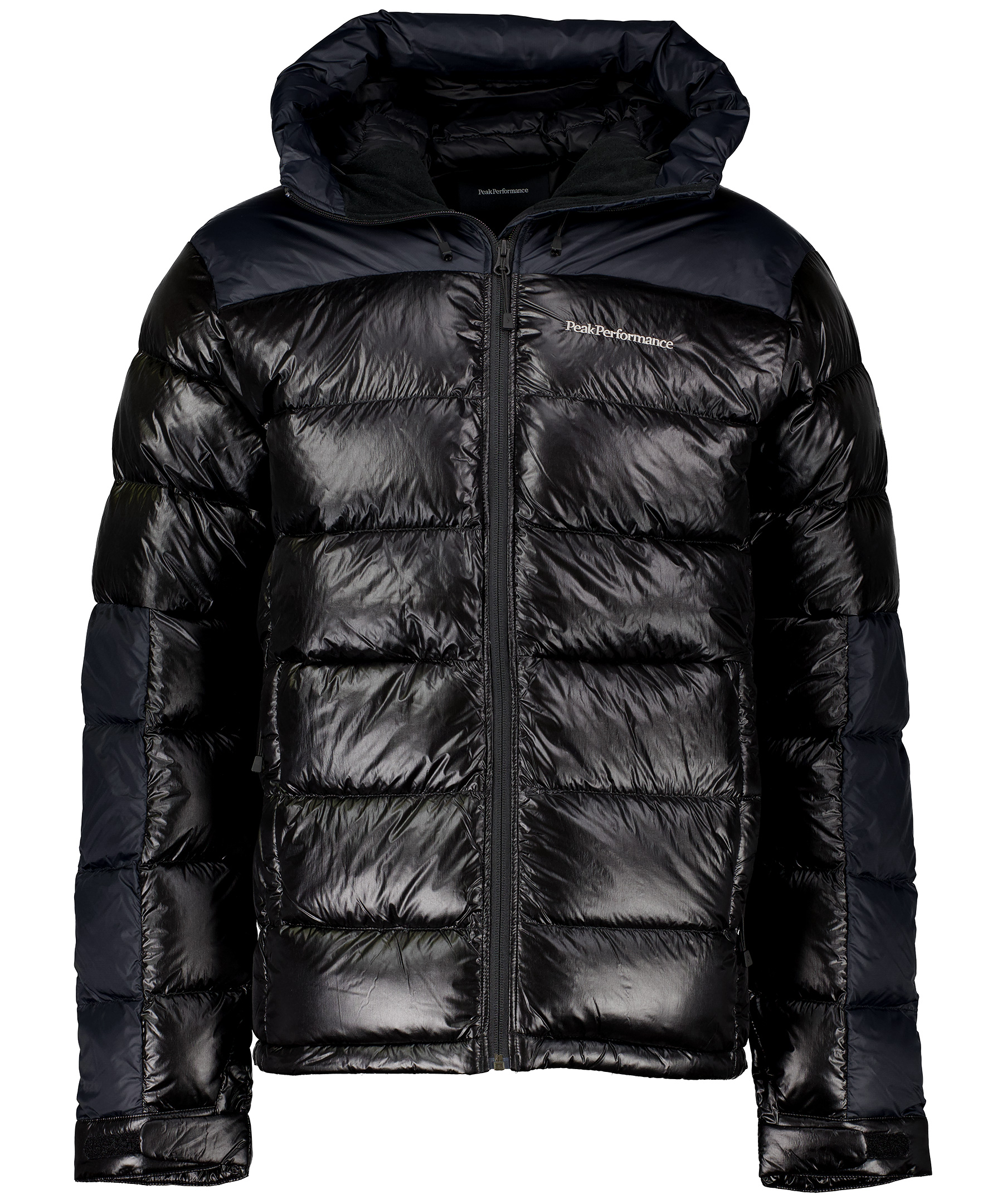Svart dunjacka från Peak Performance. Yttertyg gjort i 100% polyamid. Jackan har en glansig finish, två framfickor med dragkedja och en innerficka. Dragsko vid plaggslut och luva. Logotyp tryck på bröstet. Högkrage med ett fleece fodrat hakskydd. Kardborrband vid ärmslut. *Tre fickor *Dragsko vid plaggslut och luva *Glansig finish