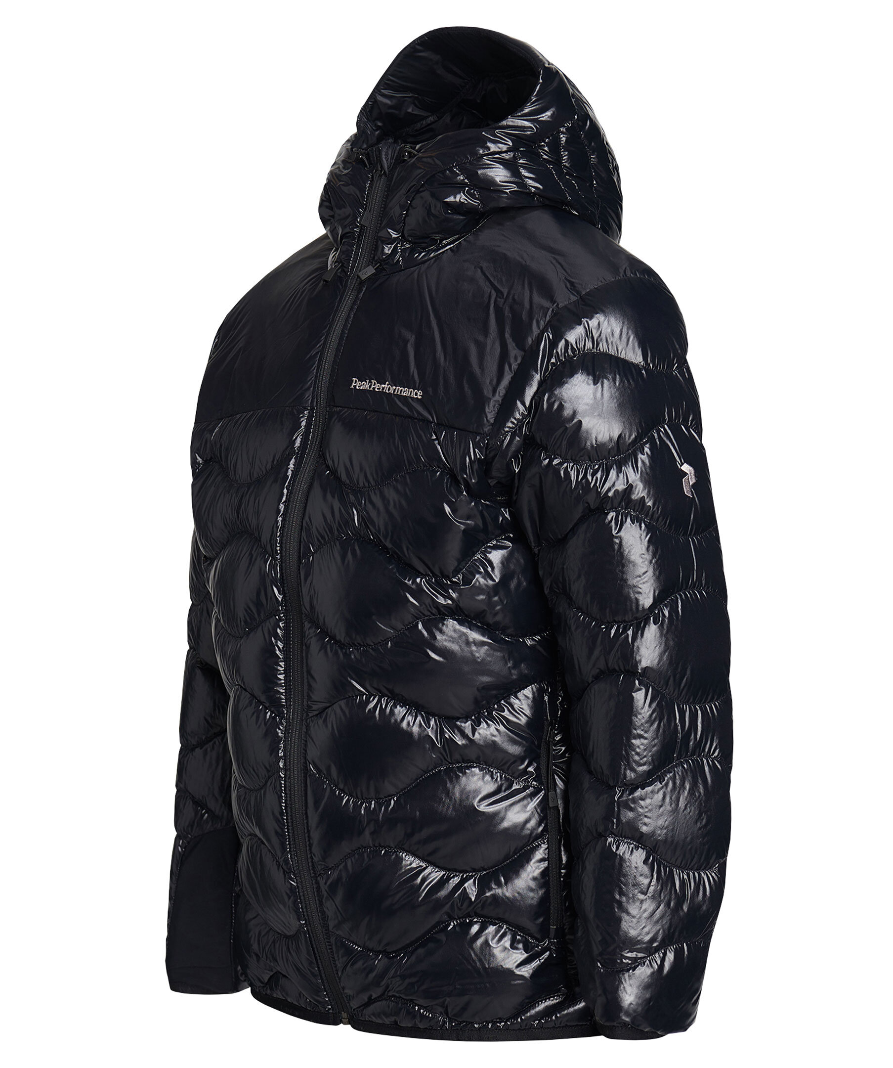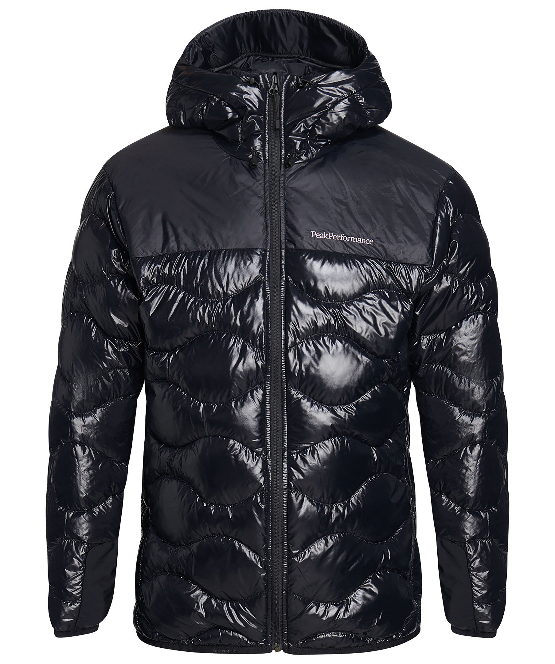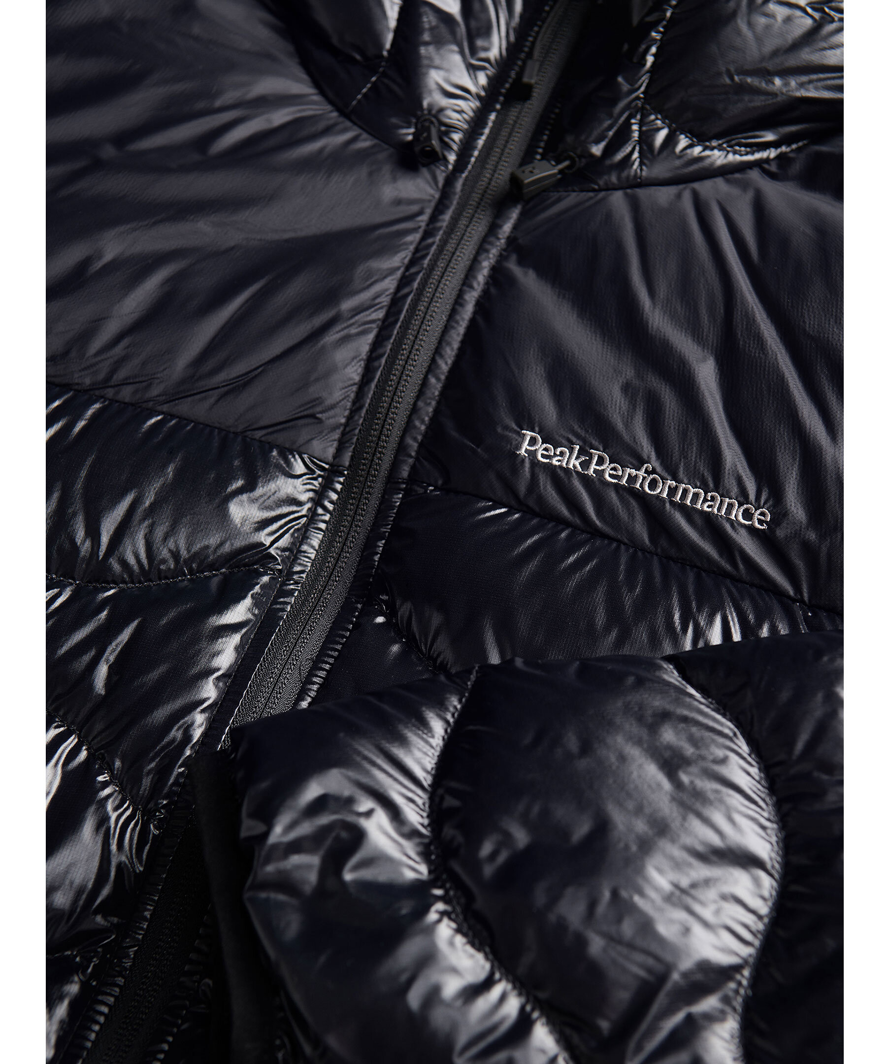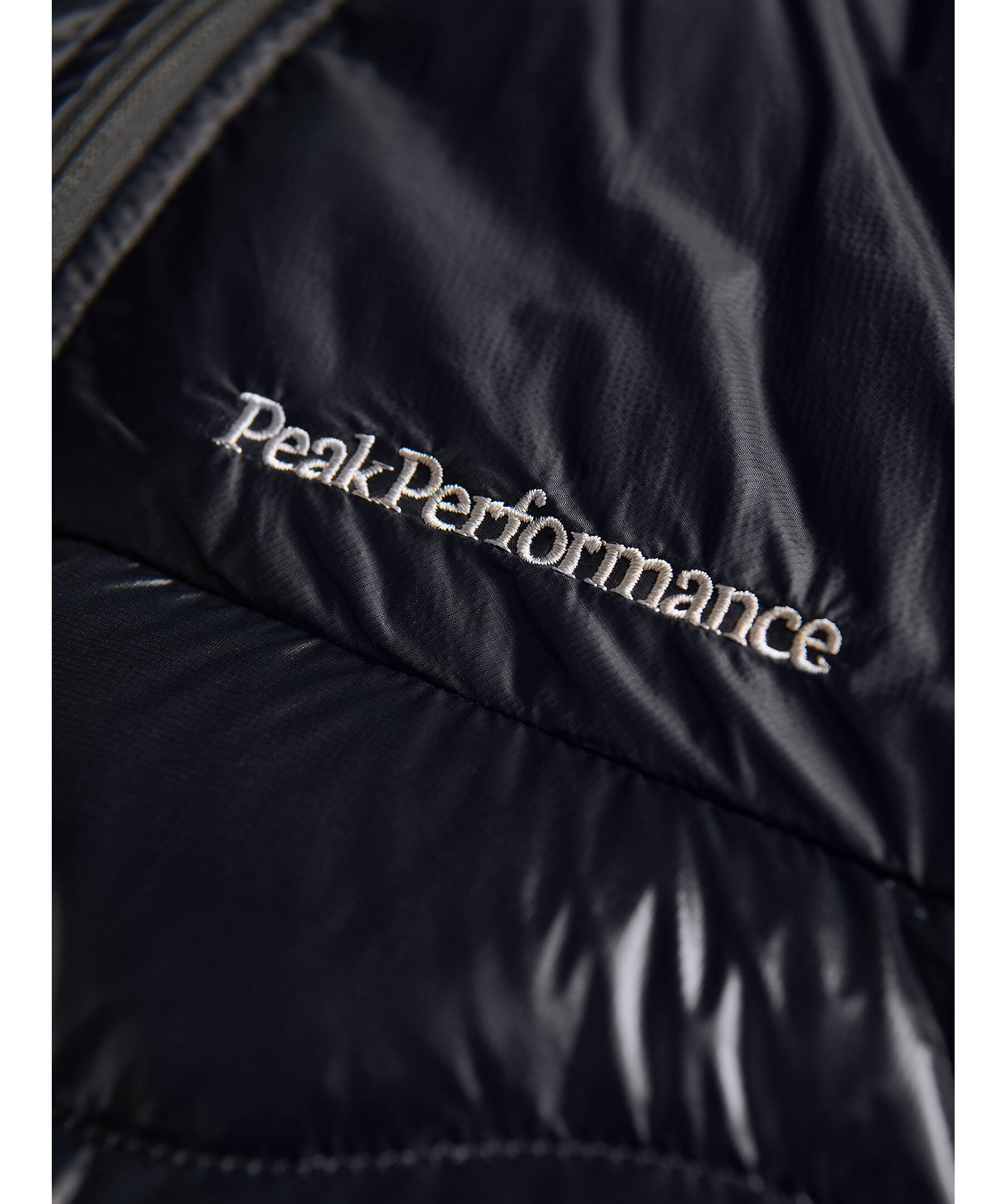 Svart lätt dunjacka från Peak Performance. Normal passform, fickor med dragkedja, hög krage, broderad logga på bröstet. Tillverkad i polyamid, fyllning av dun.