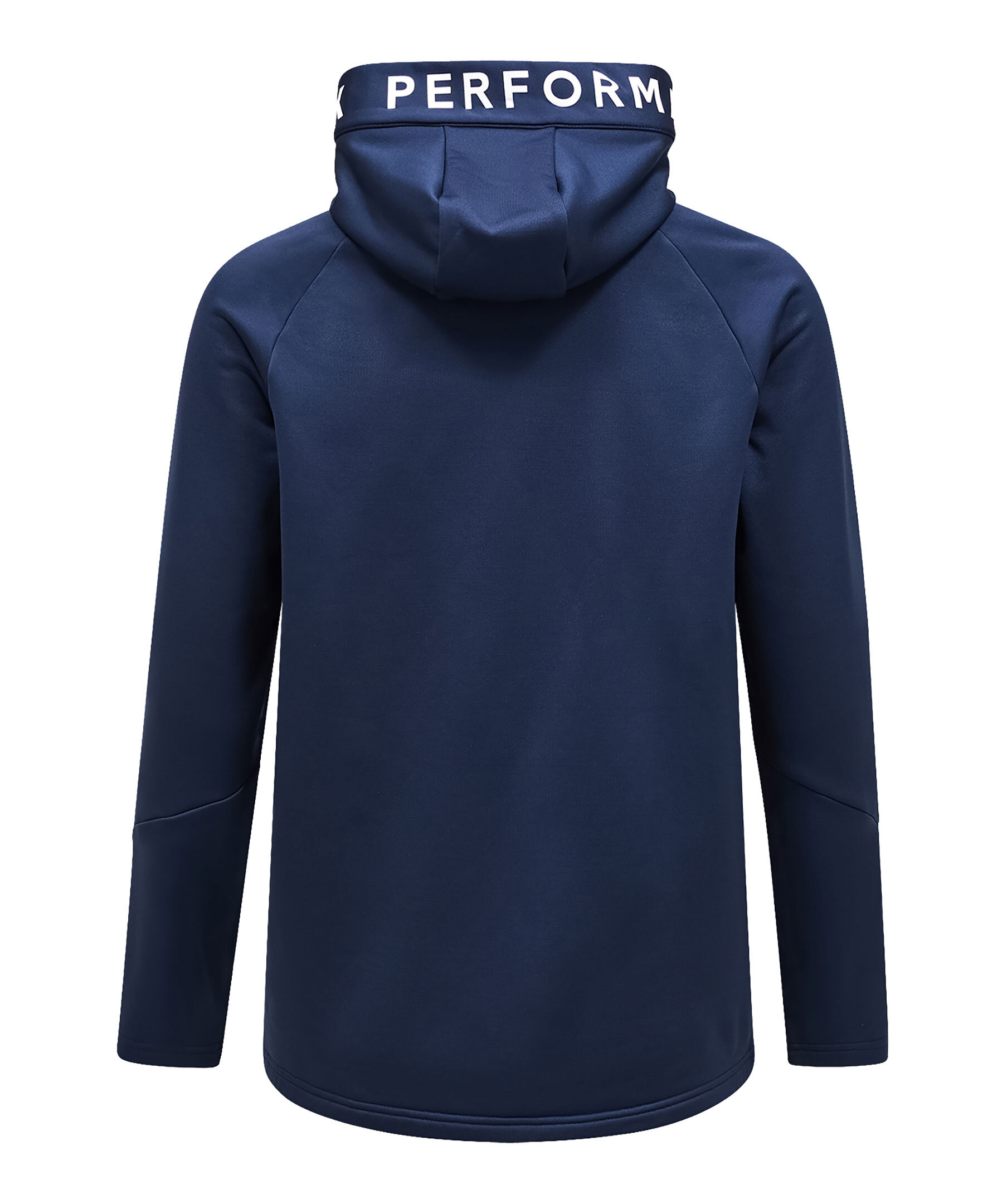 Mörkblå mellanlagersjacka från Peak Performance. Stängs med dragkedja framtill och har huva med logotyp, två sidfickor med dragkedja samt logotyp på bröstet. Tillverkad i en polyesterblandning.
