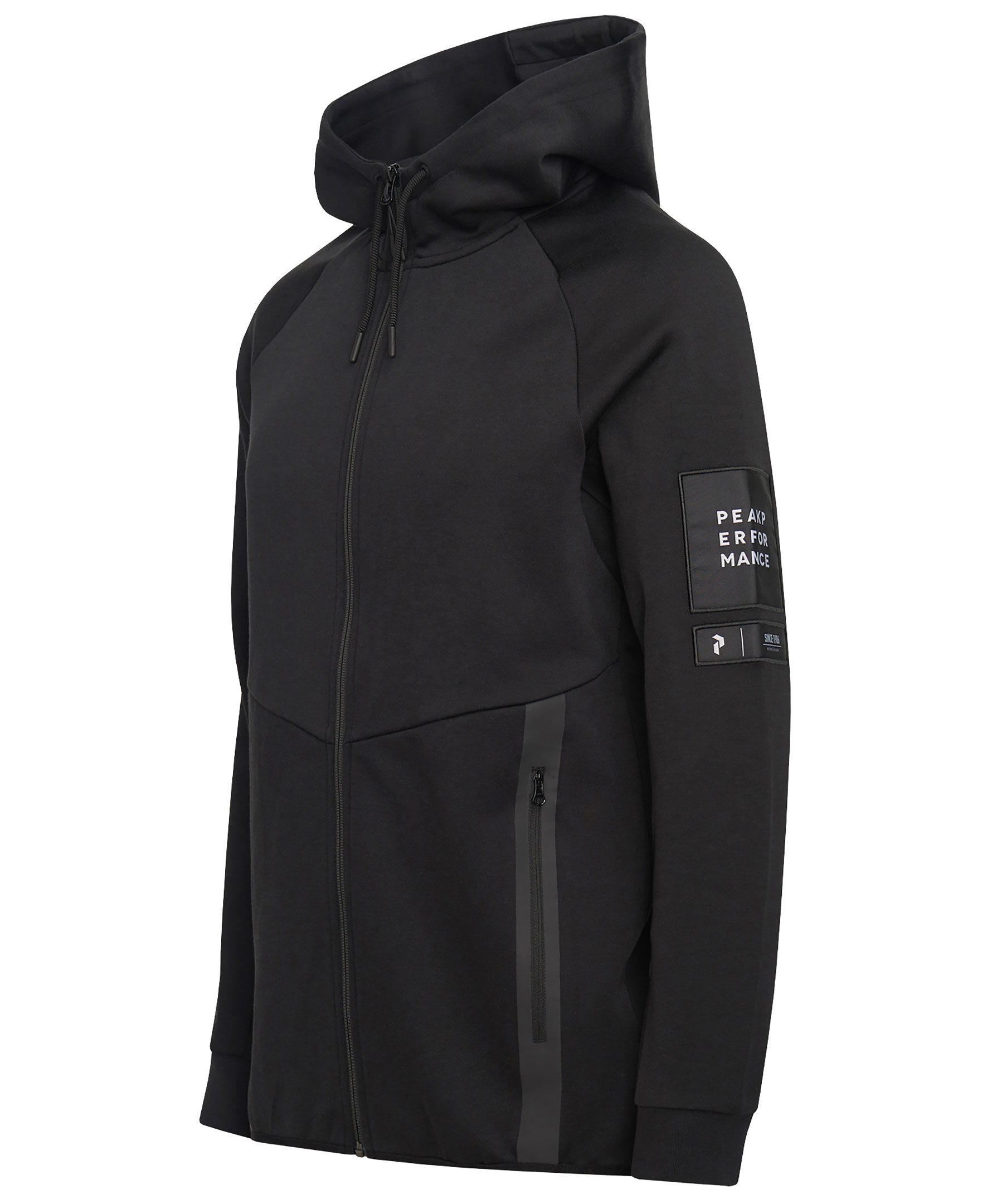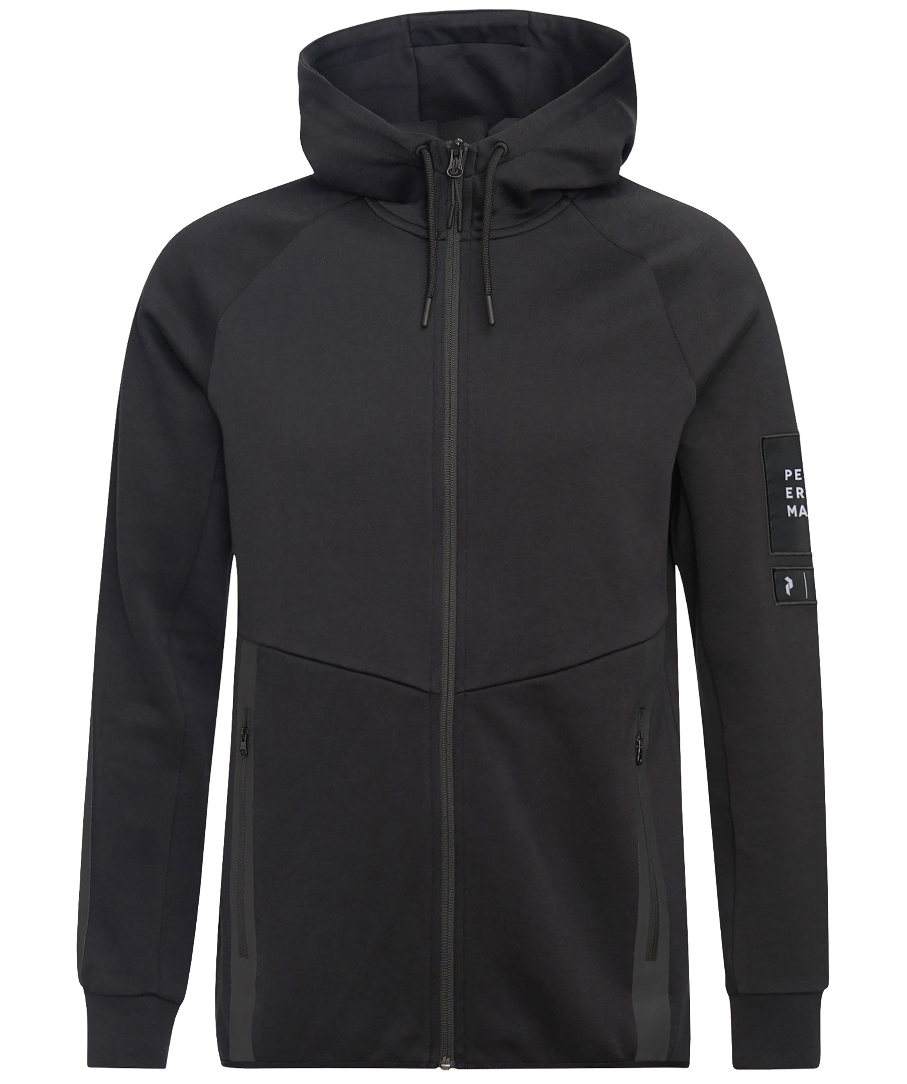 Svart hoodie med blixtlås framtill, från Peak Performance. Tillverkad i mjuk bomullsmix. Två fickor fram, patch på vänster ärm.