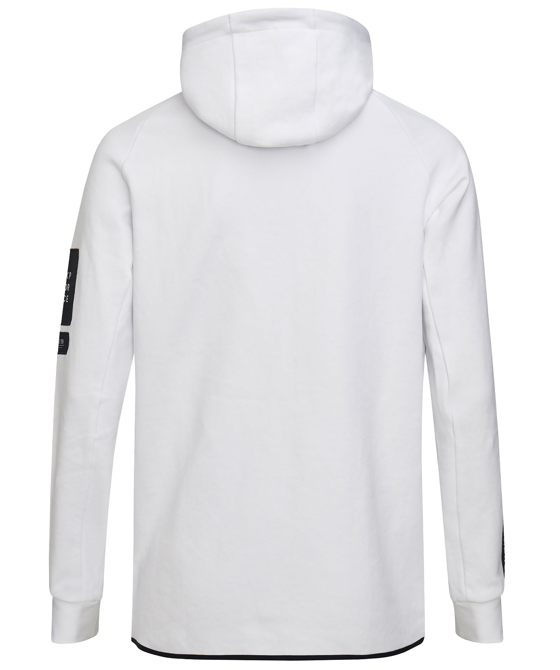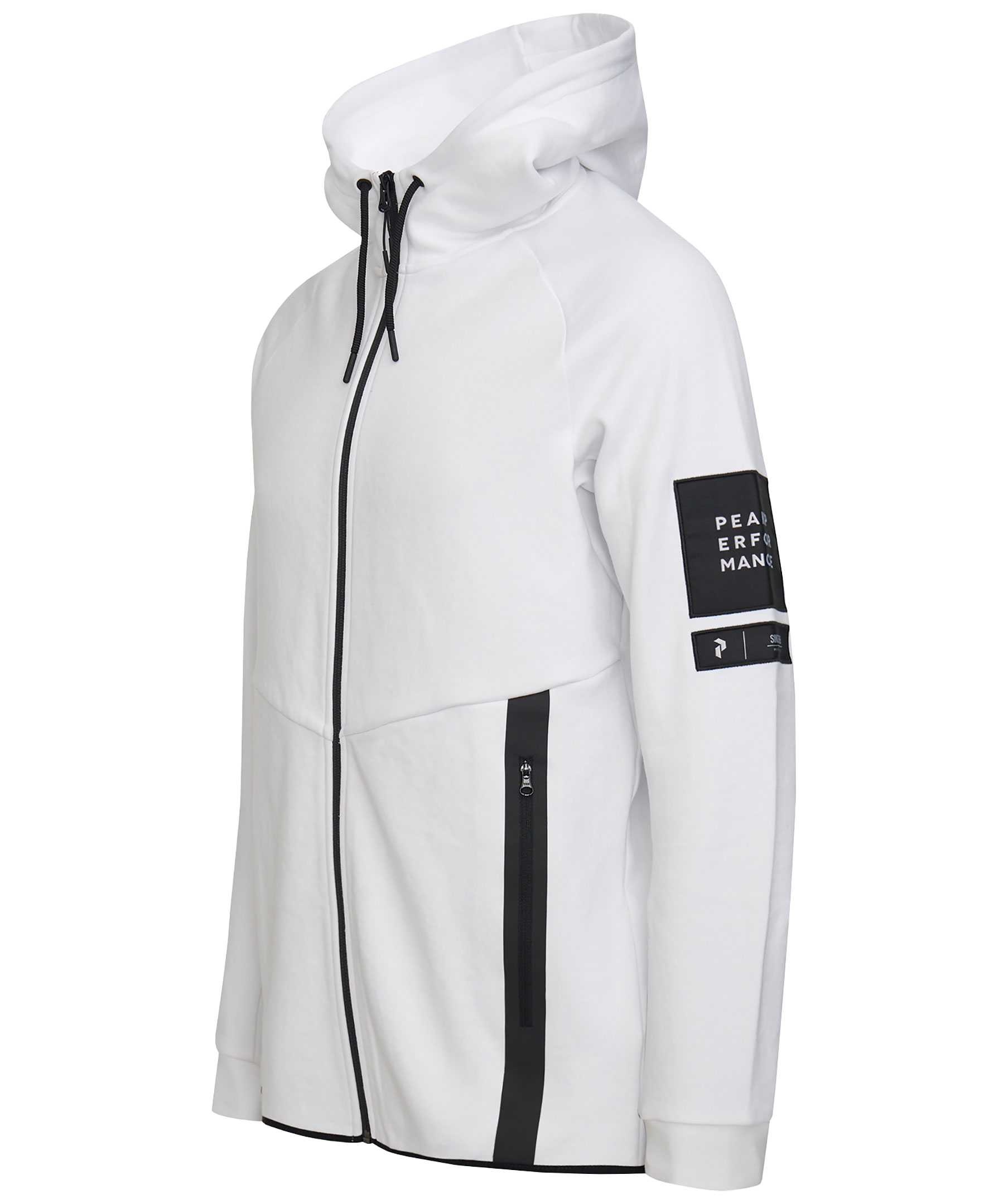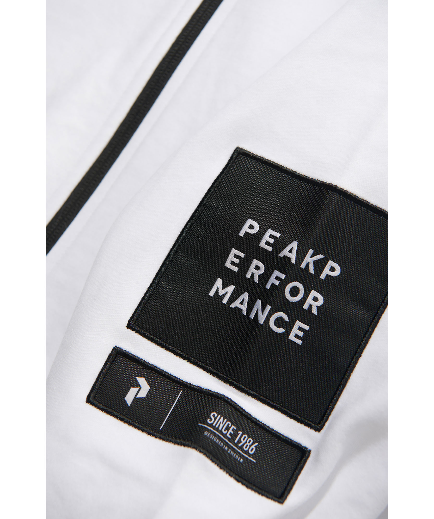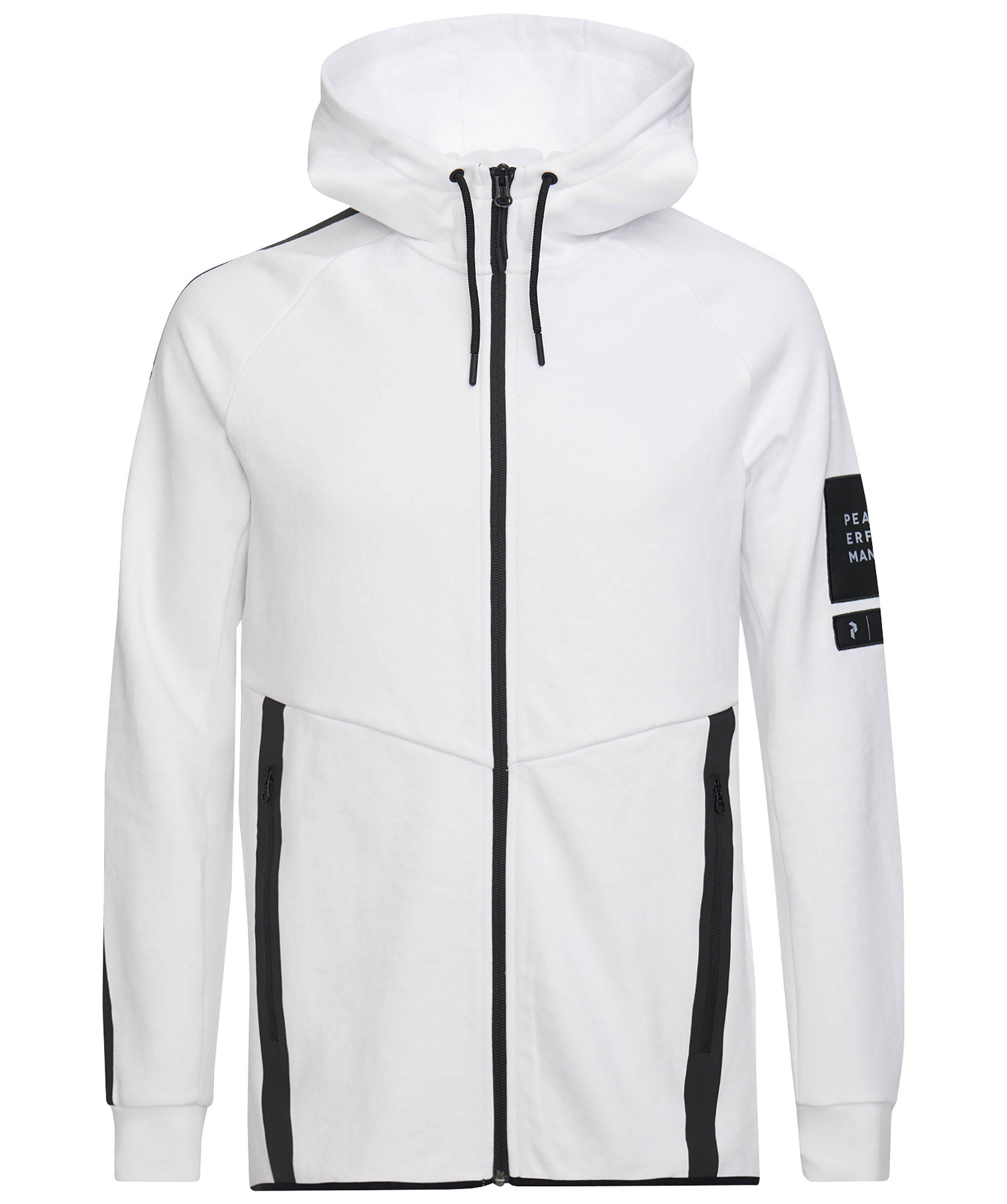 Vit hoodie med blixtlås framtill, från Peak Performance. Tillverkad i mjuk bomullsmix. Två fickor fram, patch på vänster ärm.