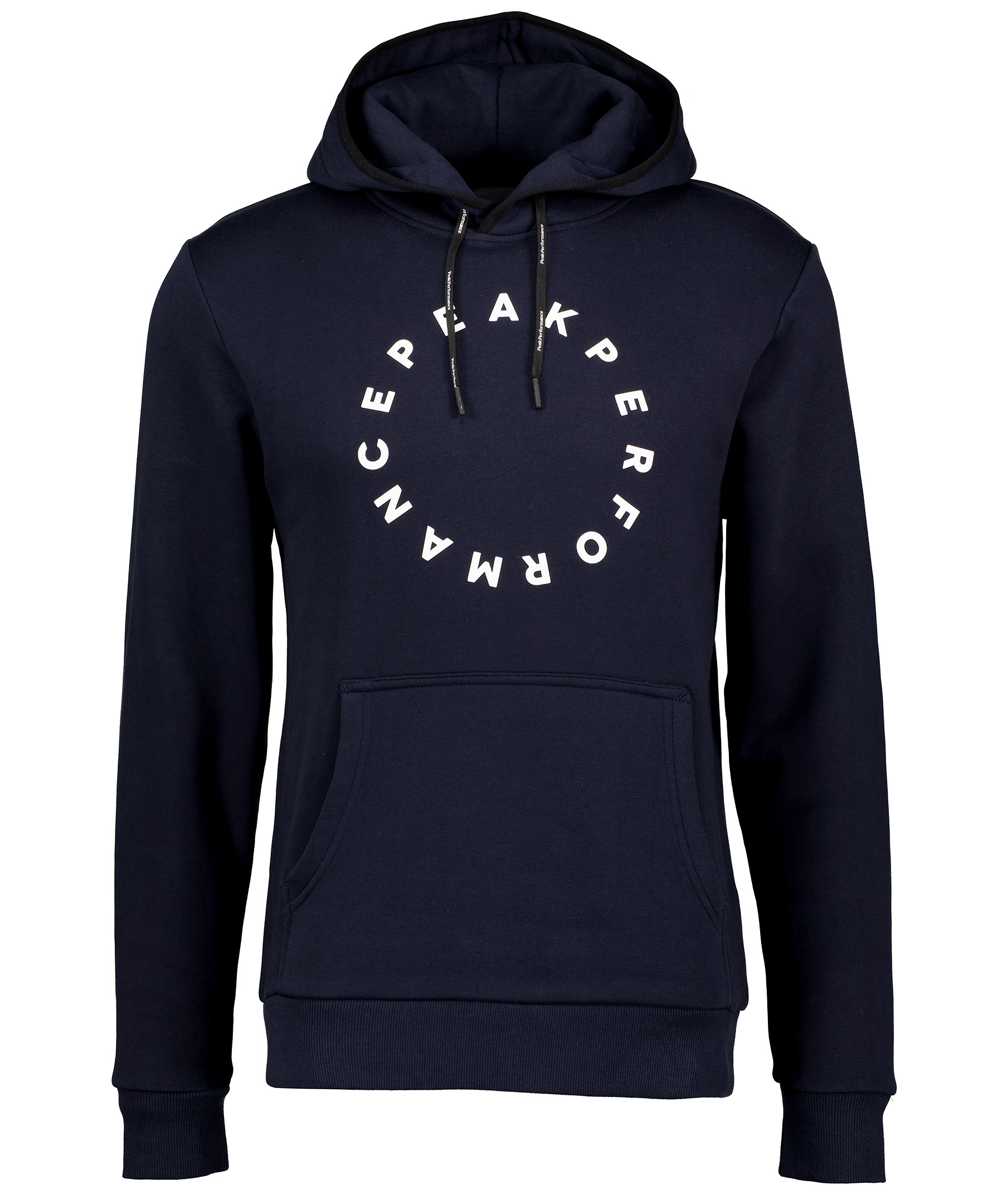 Marinblå hoodie från Peak Performance. Tillverkad i bomullsblandning. Tröjan har en luva med svart snörning med tryckta vita logotyper på. Vit, rund logotyp tryckt på bröstet och ficka på magen. Ribbad mudd i plaggslut och ärmslut samt tunn svart kant på luvans kanter. Borstad insida. Begränsat antal, vi reserverar oss för eventuell slutförsäljning. Går ej att kombinera med övriga erbjudanden och rabatter.