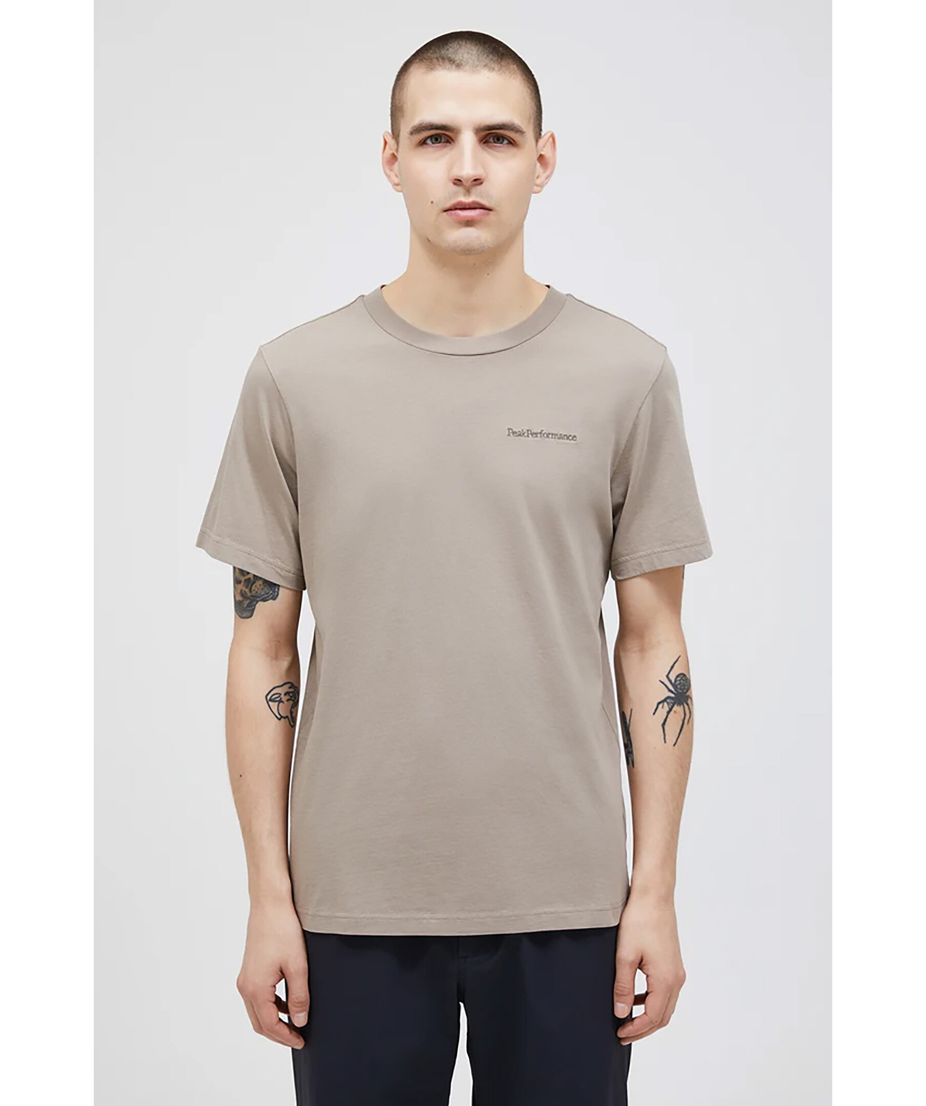 Gråbeige t-shirt från Peak Performance. Liten broderad, ton-i-ton logotyp på bröstet. Tillverkad i 100% bomull. Normal passform.