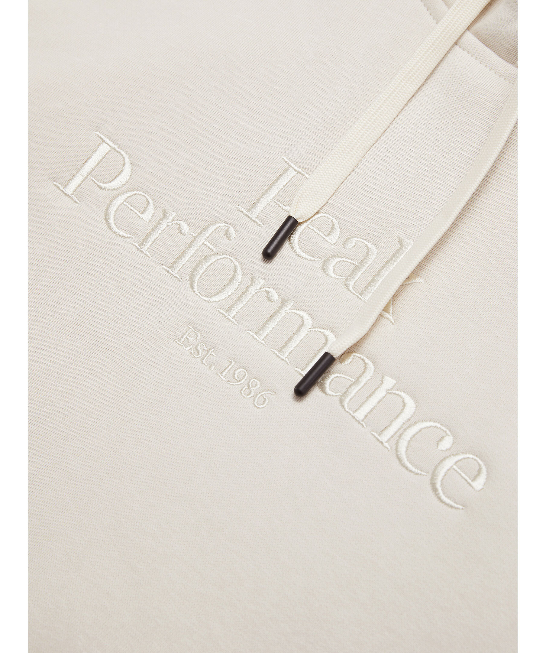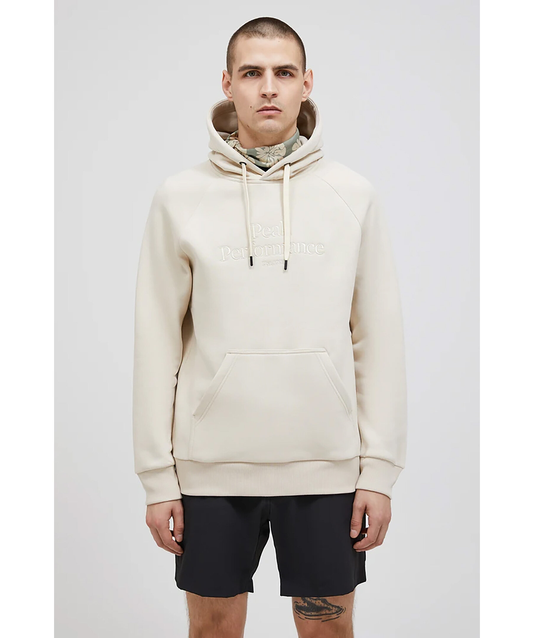 Sandfärgad hoodie med huva från Peak Performance. Ton-i-ton broderad logotyp på bröstet. Känguruficka på magen. Snörning i huvan. Ribbade muddar vid ärm- och plaggslut. Tilvlerkad i en bomull- och polyesterblandning. Normal passform.