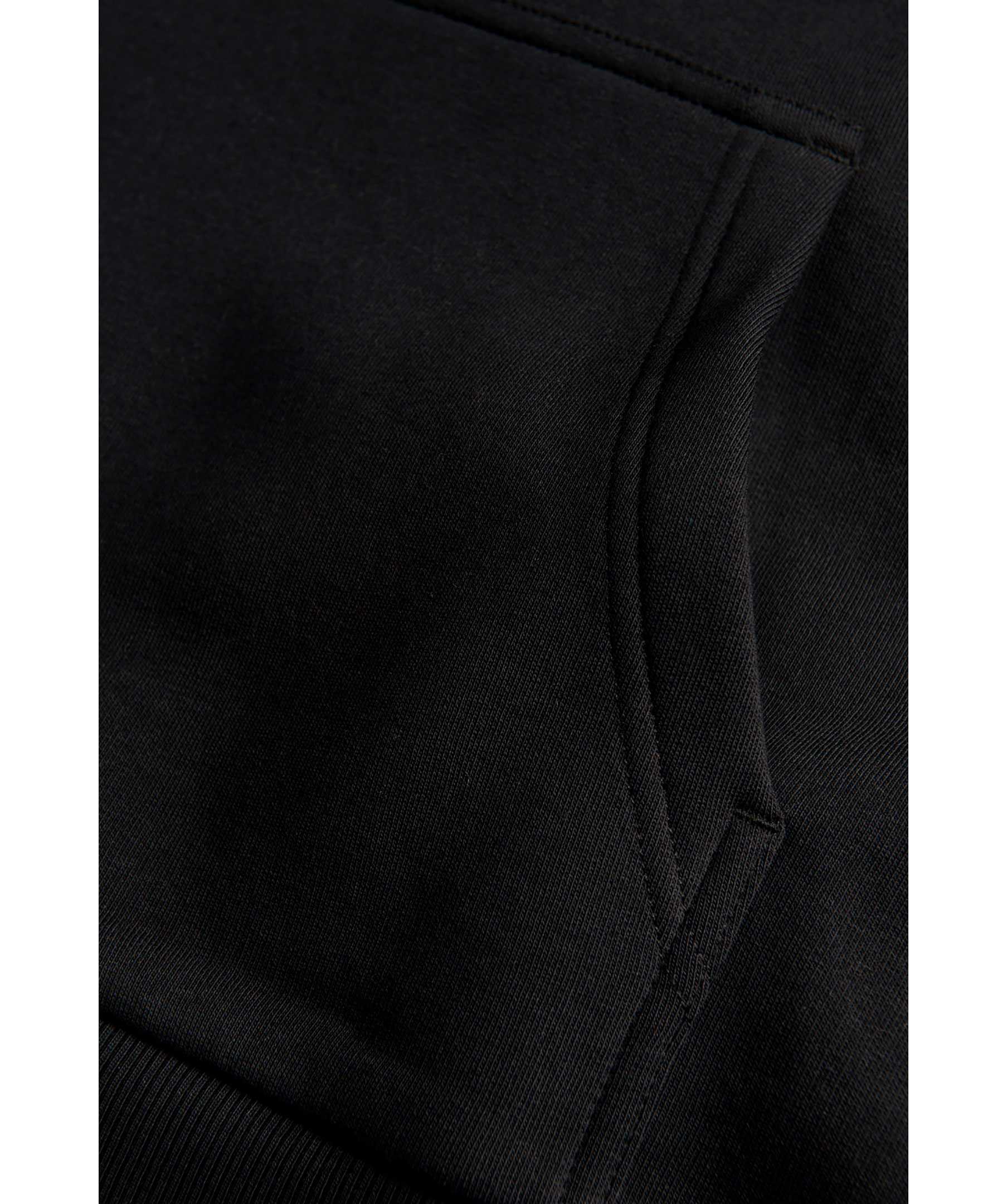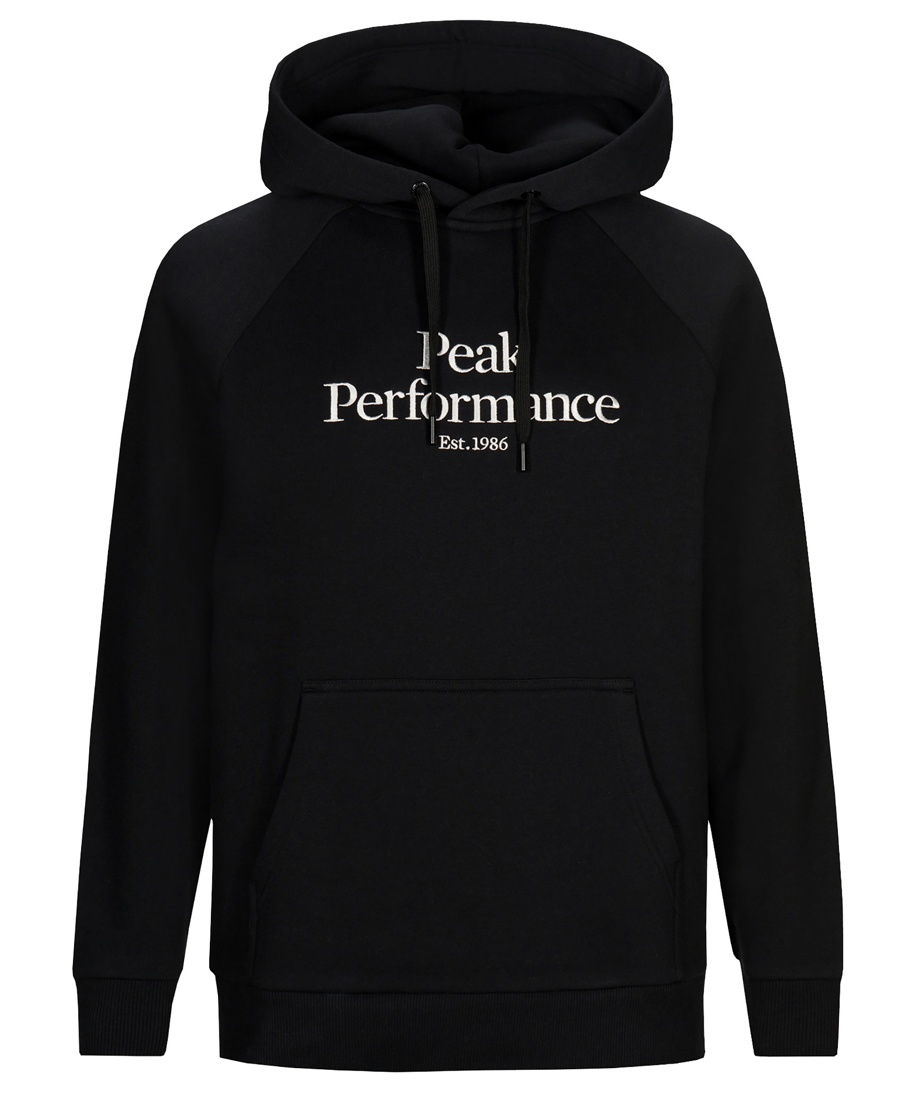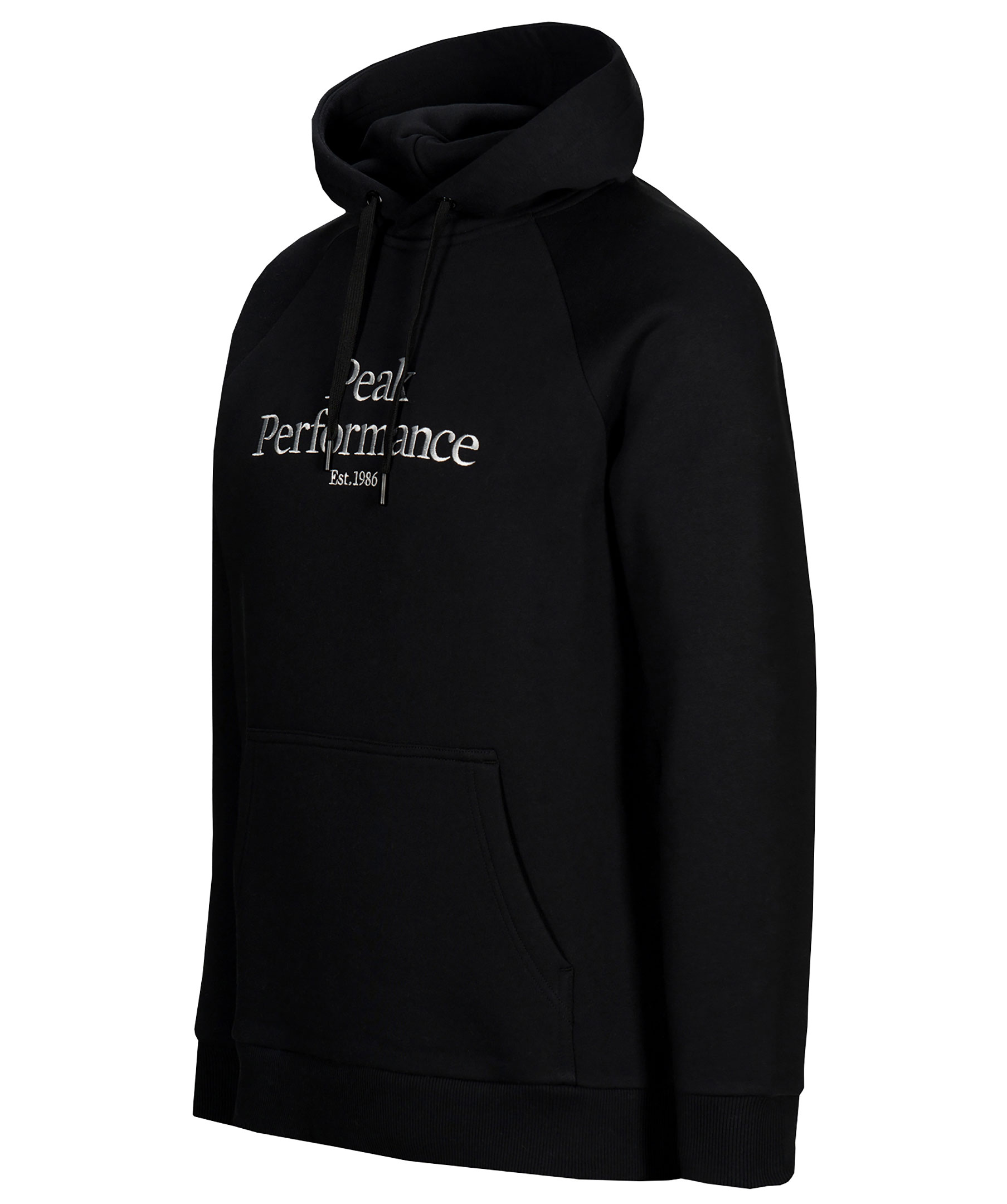 Svart hoodie från Peak Performance. Tillverkad i 100% bomull, dragsko i luva och stor broderad logotyp på bröstet.