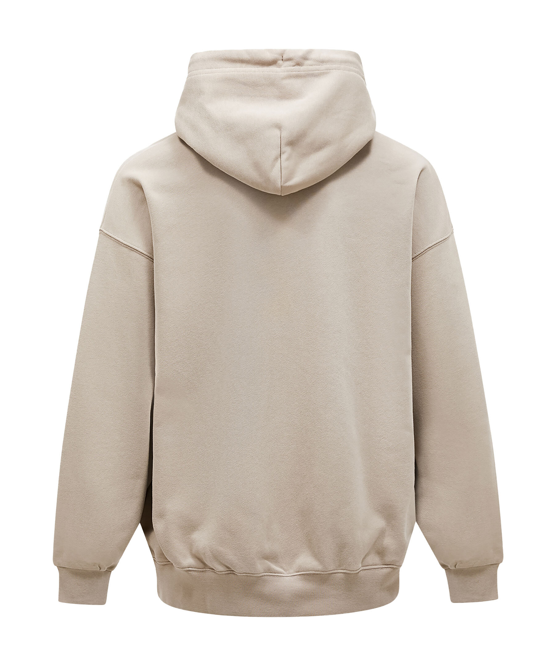 Beige hoodie med avslappnad passform i bomullsfrotté med oborstad insida för en mer kompakt och draperad känsla.