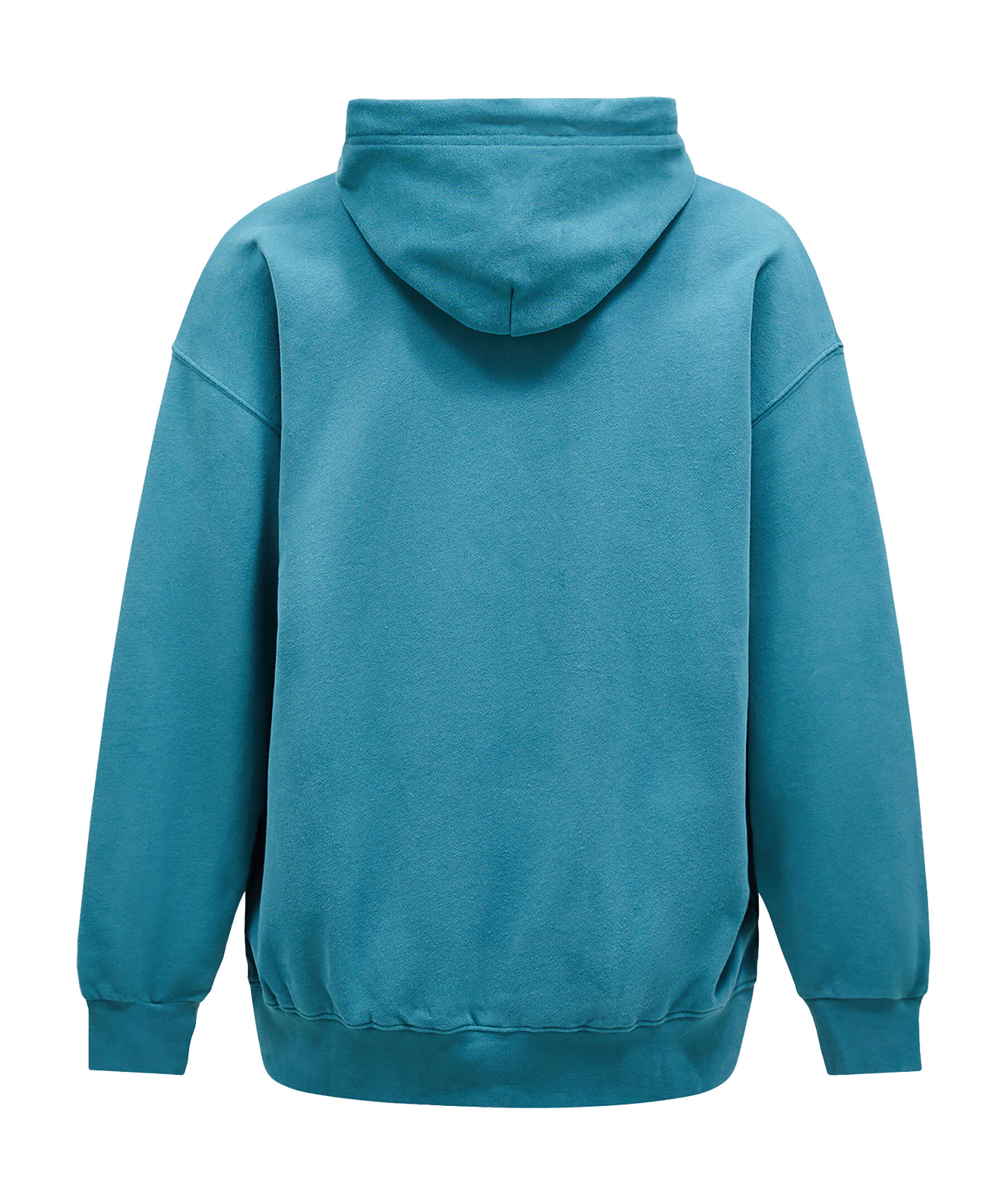Blå hoodie med avslappnad passform i bomullsfrotté med oborstad insida för en mer kompakt och draperad känsla.