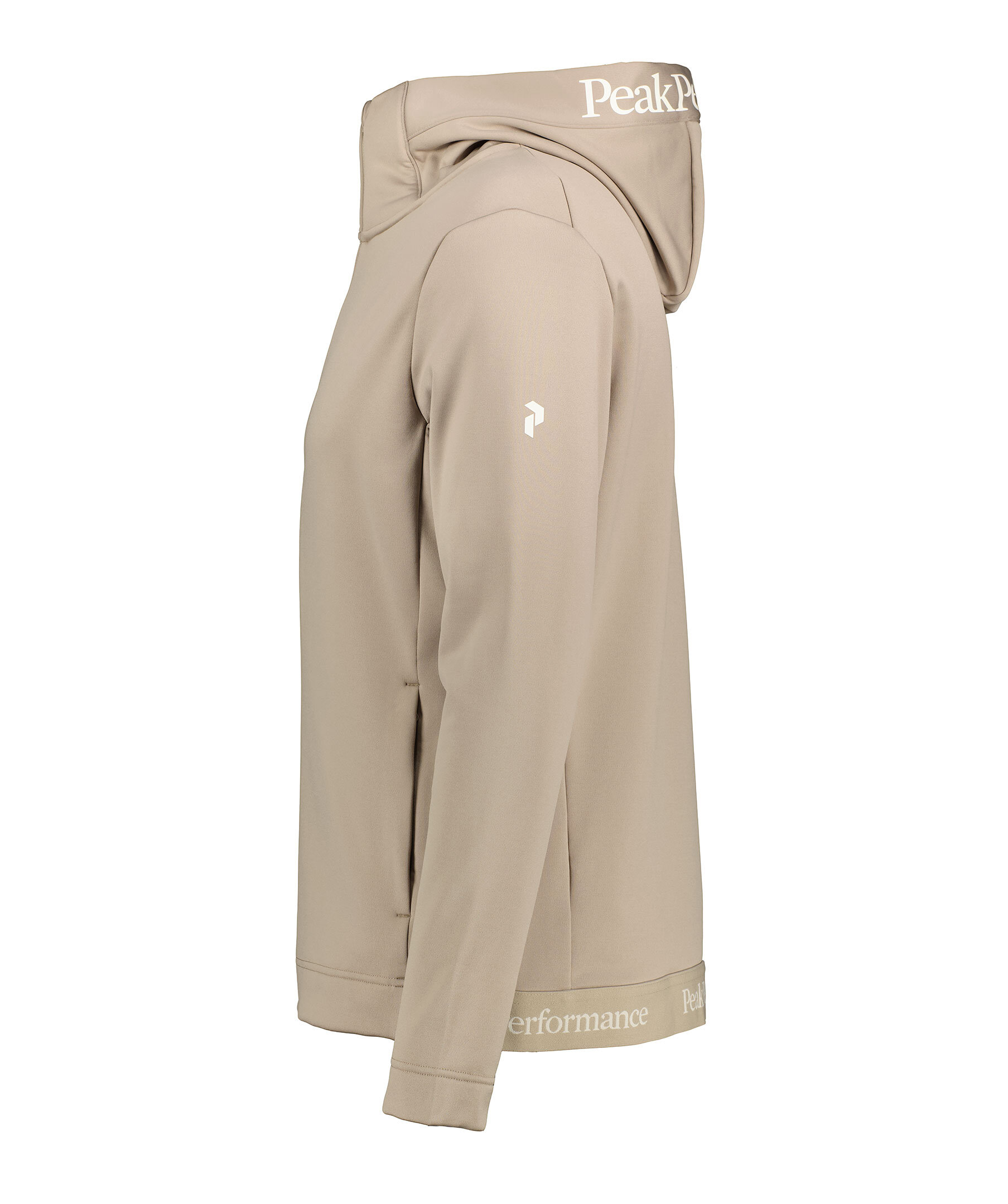 Beige zip-up hoodie från Peak Performance. Hoodien funkar som en mellanlagersjacka och har hög krage, två sidfickor med dragkedja logotyp på huvan, vänster ärm samt vid plaggslut. Tillverkad i en polyesterblandning.