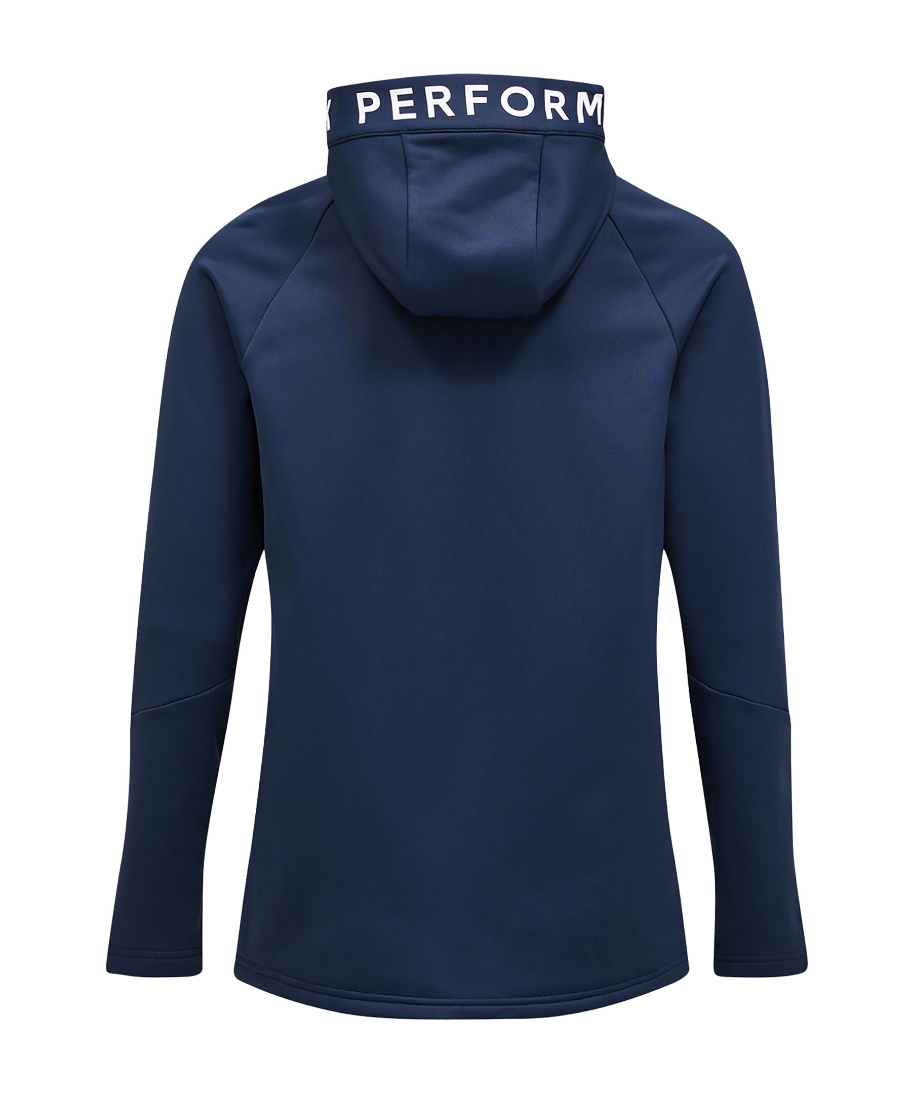 Mörkblå zip-up hoodie med luva från Peak Performance. Tillverkad i en polyesterblandning. Liten logotyp på bröstet samt logotyp runt luvan. Två sidfickor med dragkedja. Normal passform.