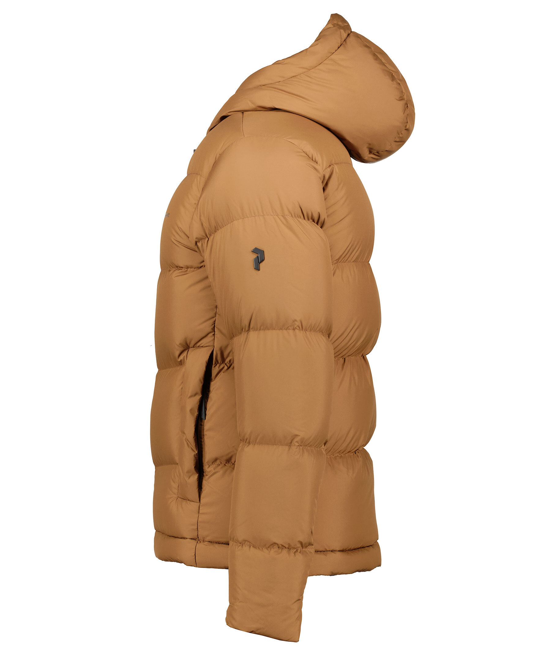Ljusbrun pufferjacka med dunfyllning från Peak Performance. Jackan är tillverkad av återvunnen polyester, Flourocarbon-fri DWR impregnering och vaddering av ansvarsfullt producerat dun. Två framfickor som stängs med dragkedja, logotyp i metall på ena ärmen och en tryck logotyp på bröstet. En innerficka med dragkedja, dragsko i luva och vid plaggslut. Ribbade muddar inuti ärmslut.