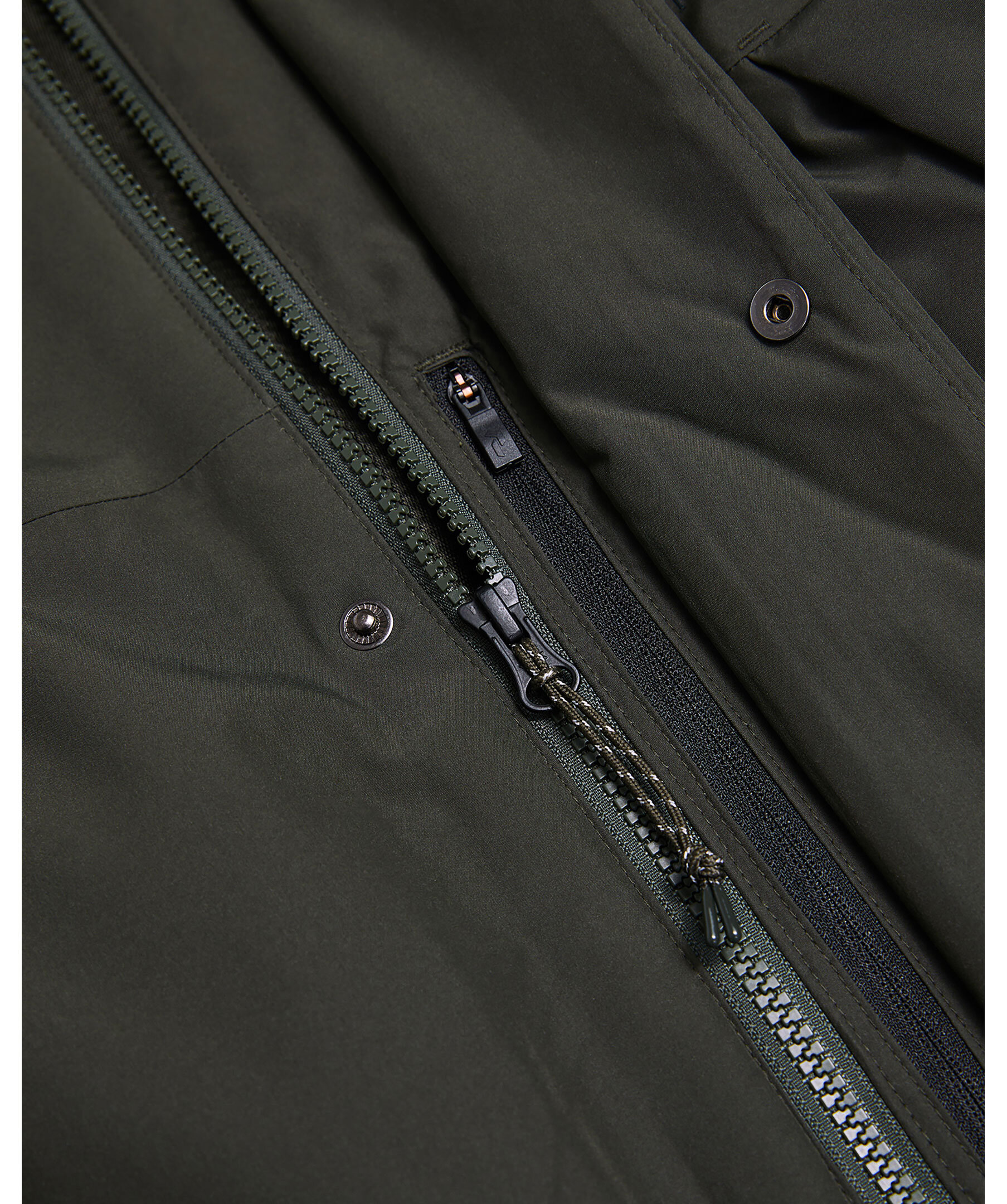 Mörkgrön lätt och varm fodrad skalparka från Peak Performance. Jackan stängs med dold tvåvägsdragkedja och tryckknappar och har två sidfickor med lock och dragkedja, dold bröstficka med dragkedja samt inre förvaringsfickor i mesh och huva med dragsko. Det tekniska 2-lagers tyget ger vind- och vattentätt skydd samtidigt som det andas även i de tuffaste förhållandena. Tillverkad i polyester med dunfyllning.
